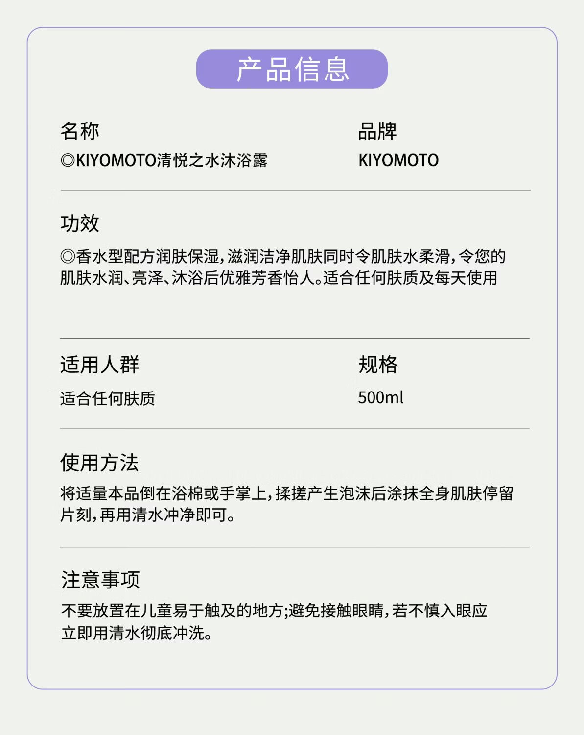 KIYOMOTO日本进口清悦之水沐浴露深层滋润美肤沐浴乳白茶茉莉正品持久留香 茉莉香500ml