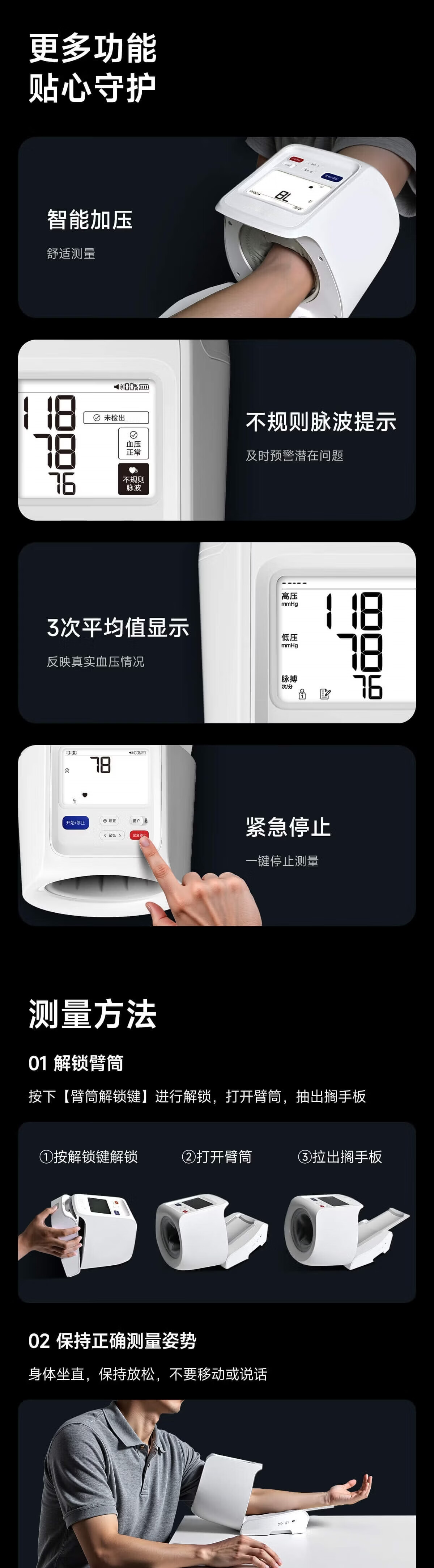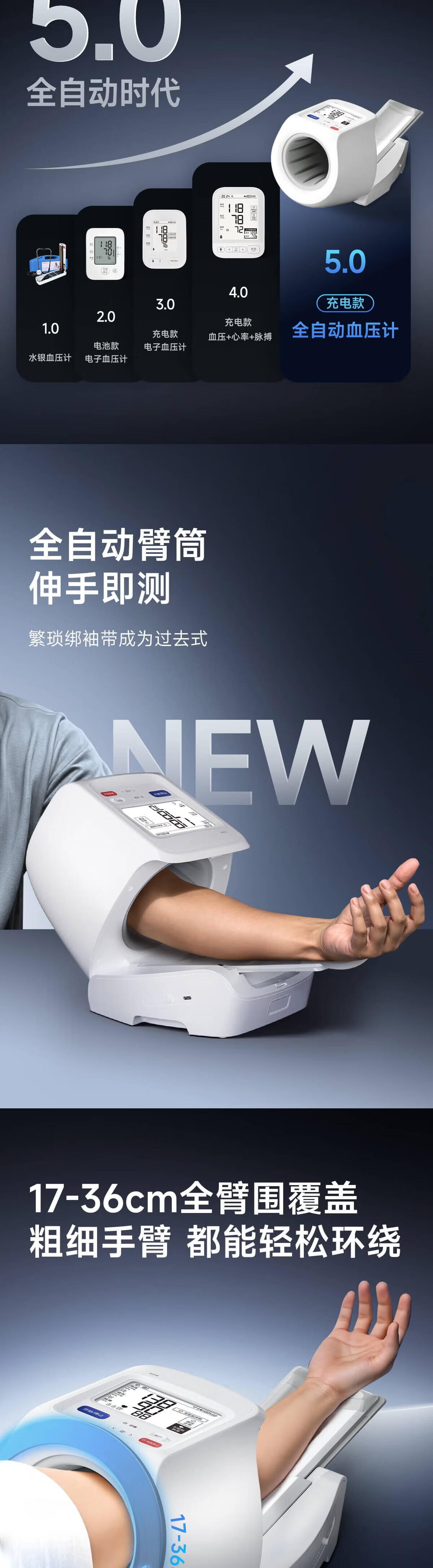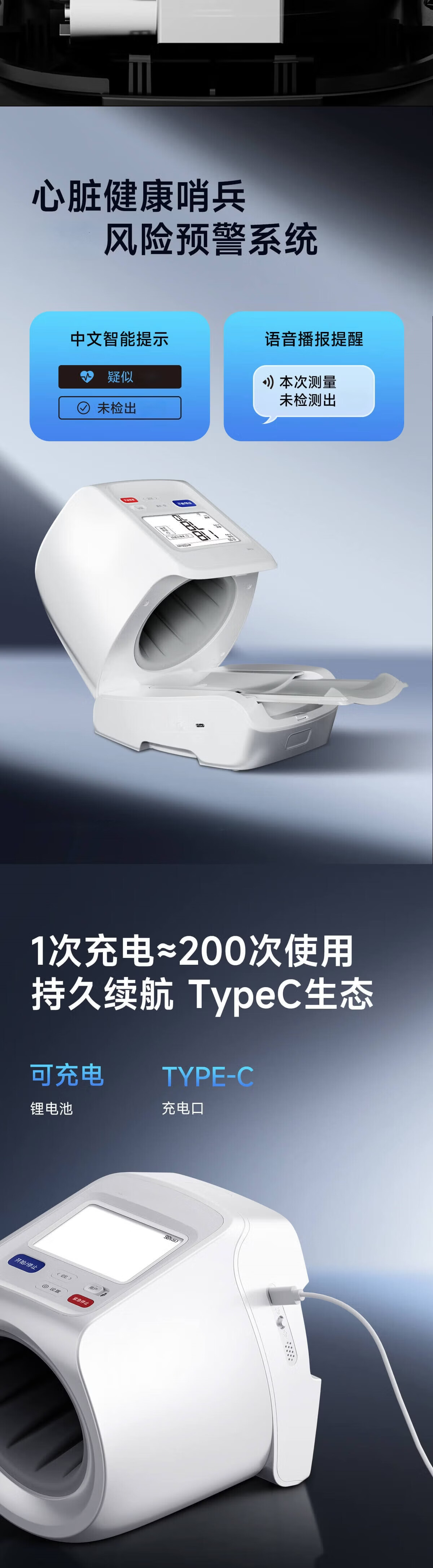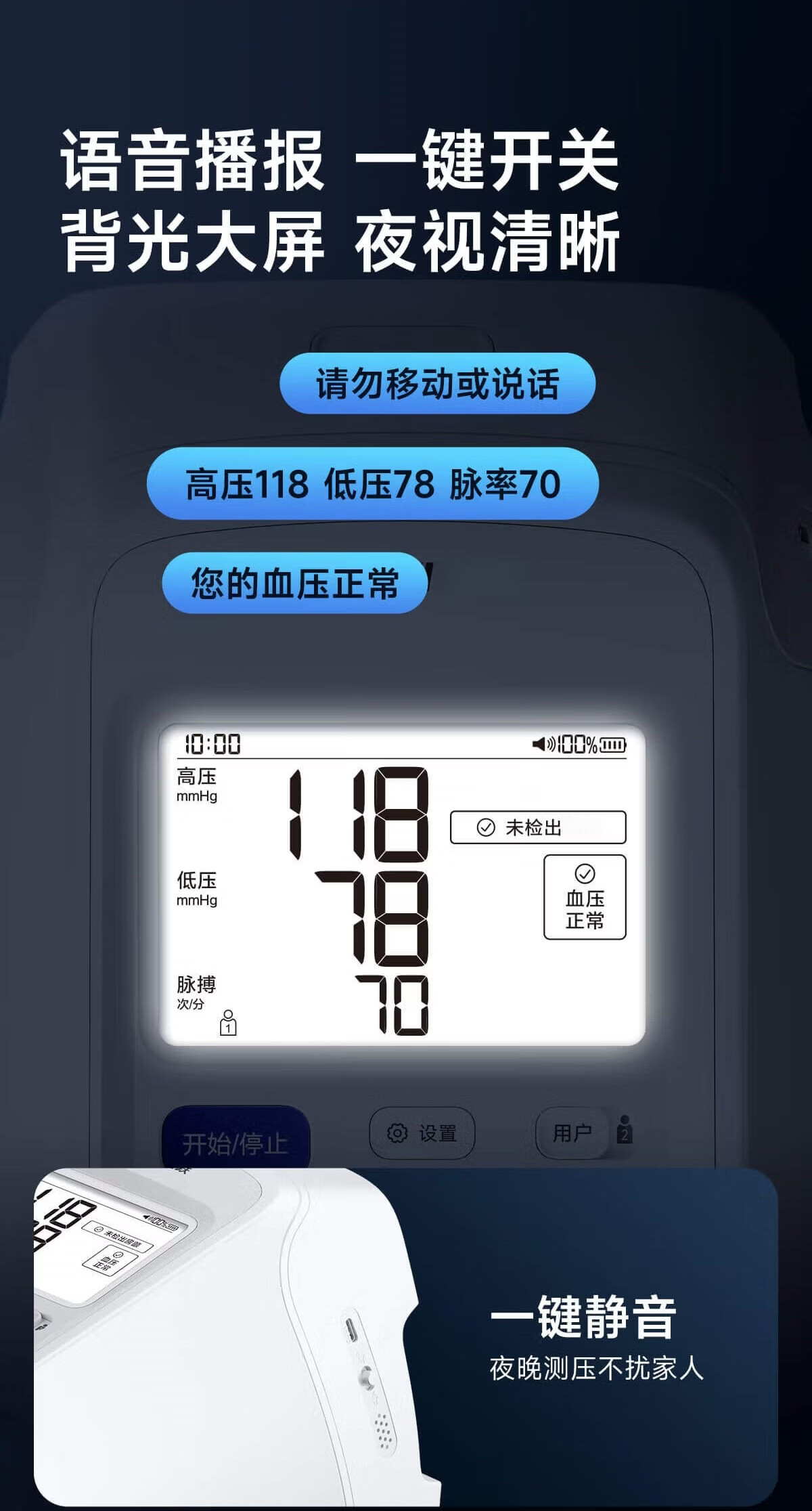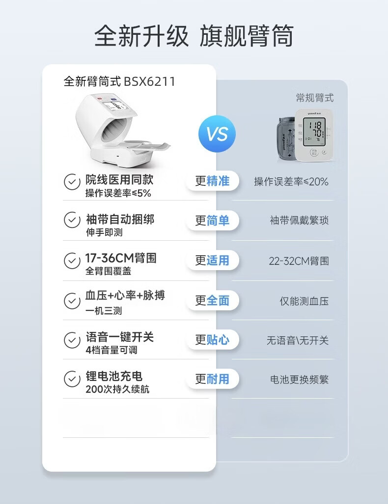 鱼跃臂筒式血压计同款 医用级高精准进口原装电子医用血压计家用老人 臂筒式院线级+500次测量续航+双泵加压+语音播报