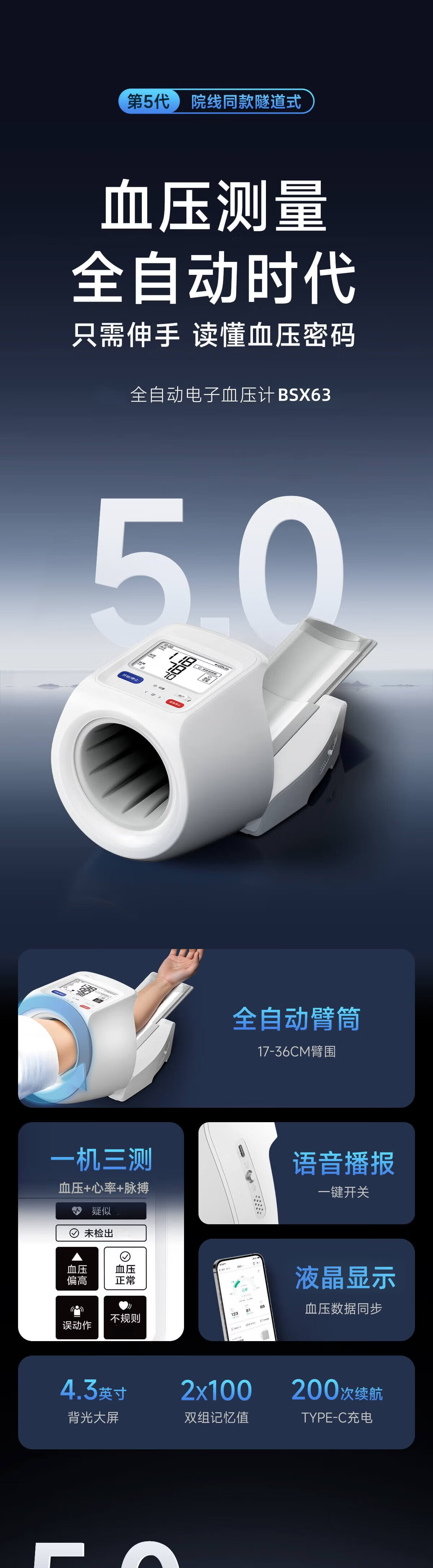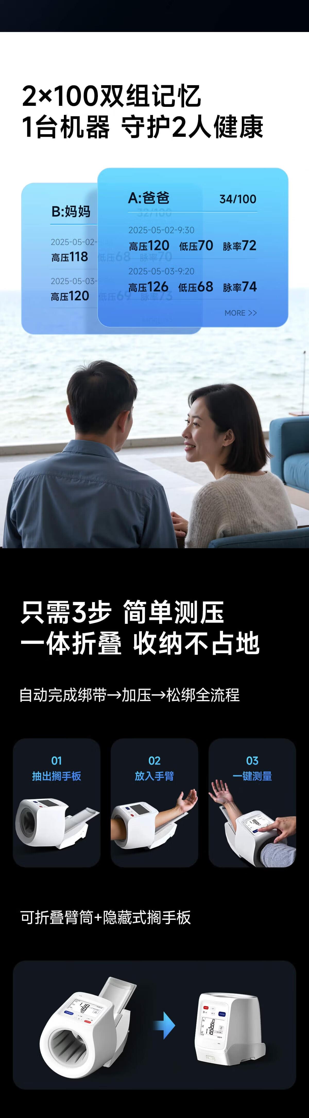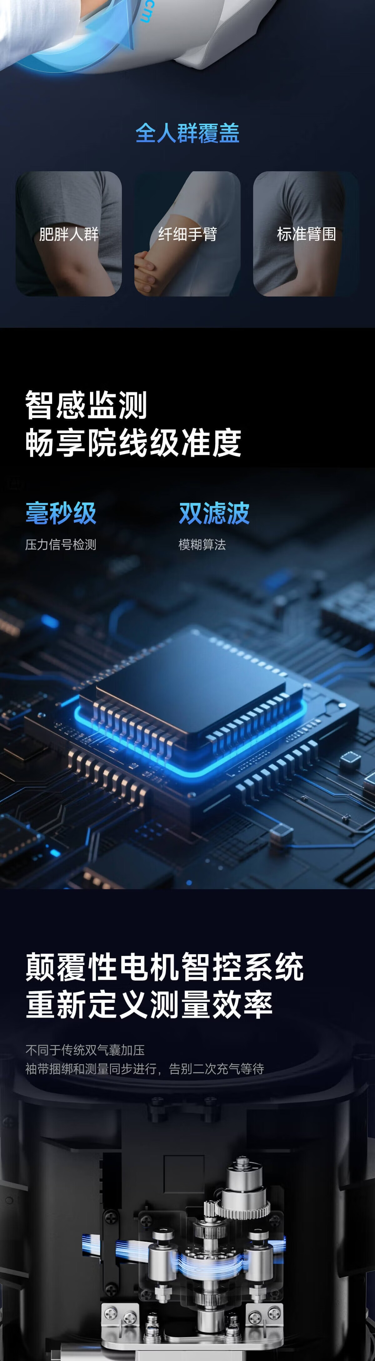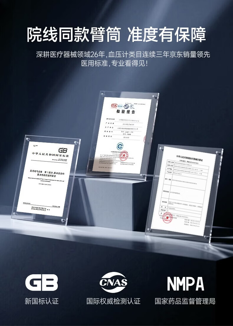 鱼跃臂筒式血压计同款 医用级高精准进口原装电子医用血压计家用老人 臂筒式院线级+500次测量续航+双泵加压+语音播报
