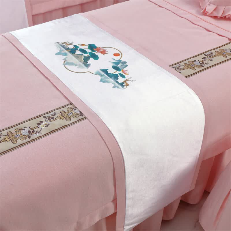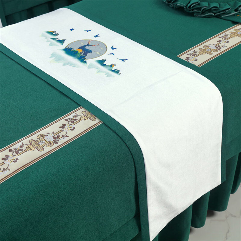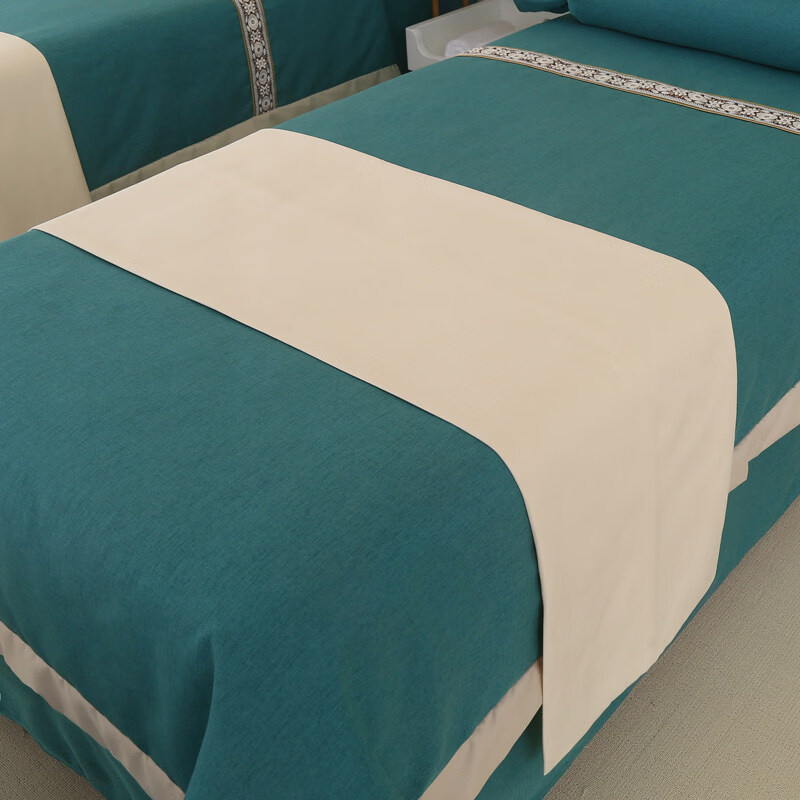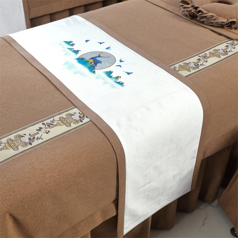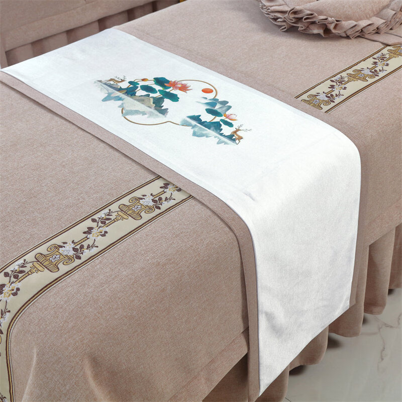 诸匠仕美容床旗四季通用按摩床旗美容院专用床旗配件艾灸按摩单人床床品 棉麻纯色40x150-米白色