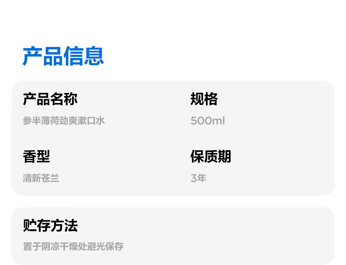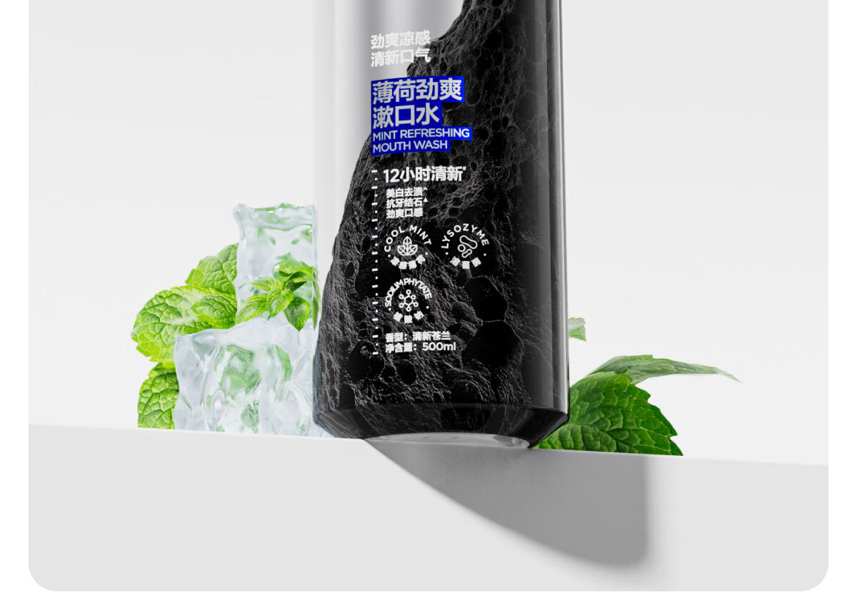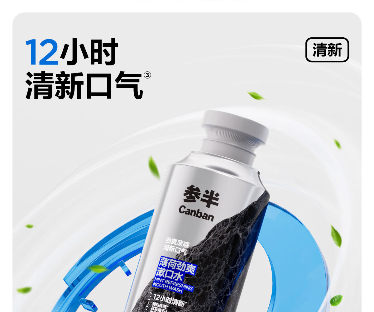 参半薄荷劲爽漱口水12h清新美白抗牙结石双重薄荷500ml1瓶