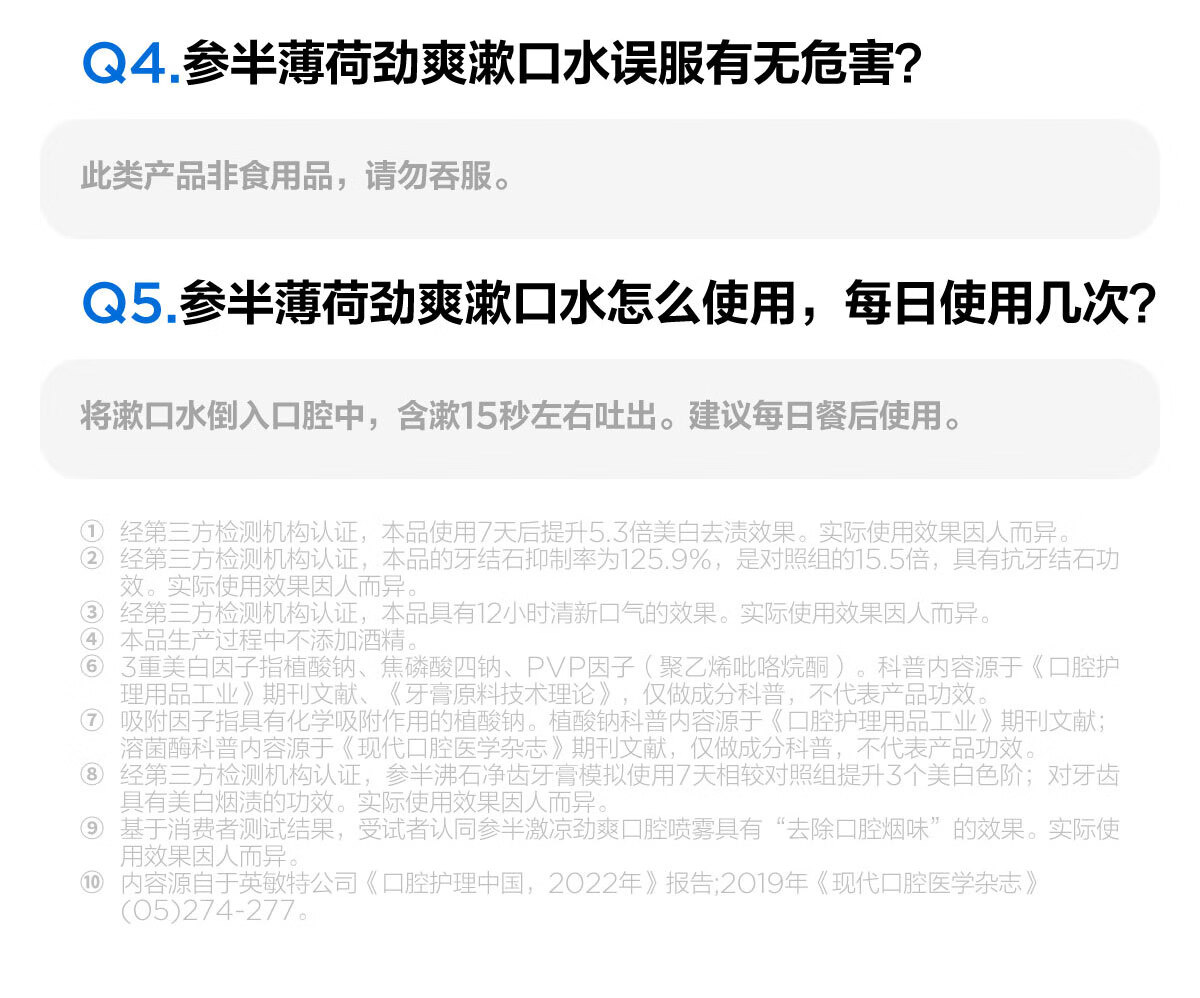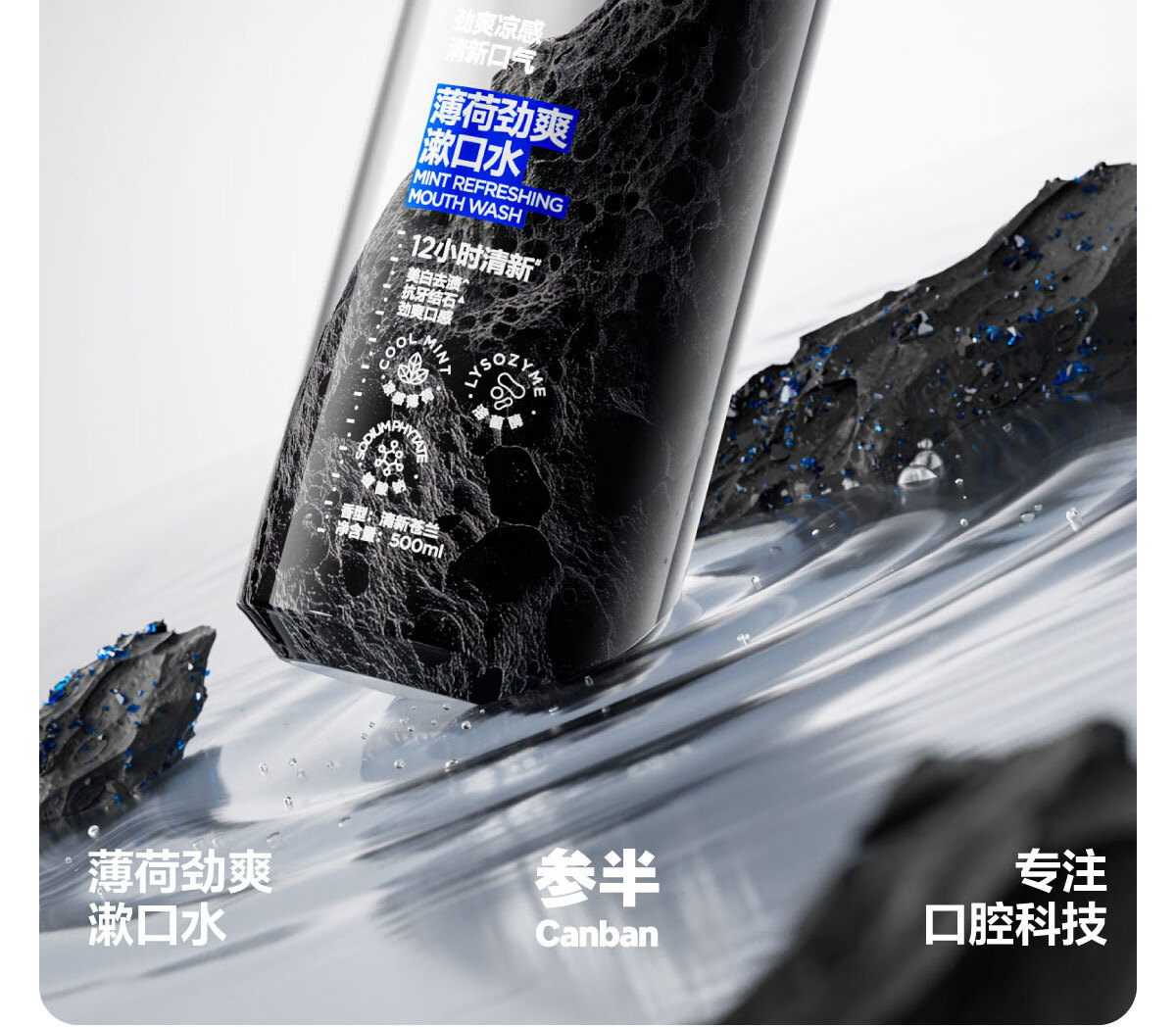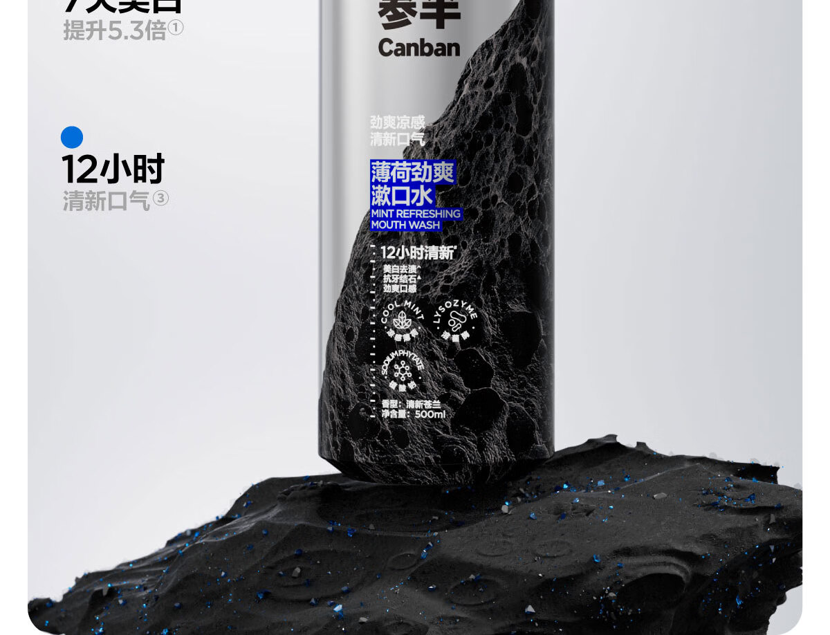 参半薄荷劲爽漱口水12h清新美白抗牙结石双重薄荷500ml1瓶