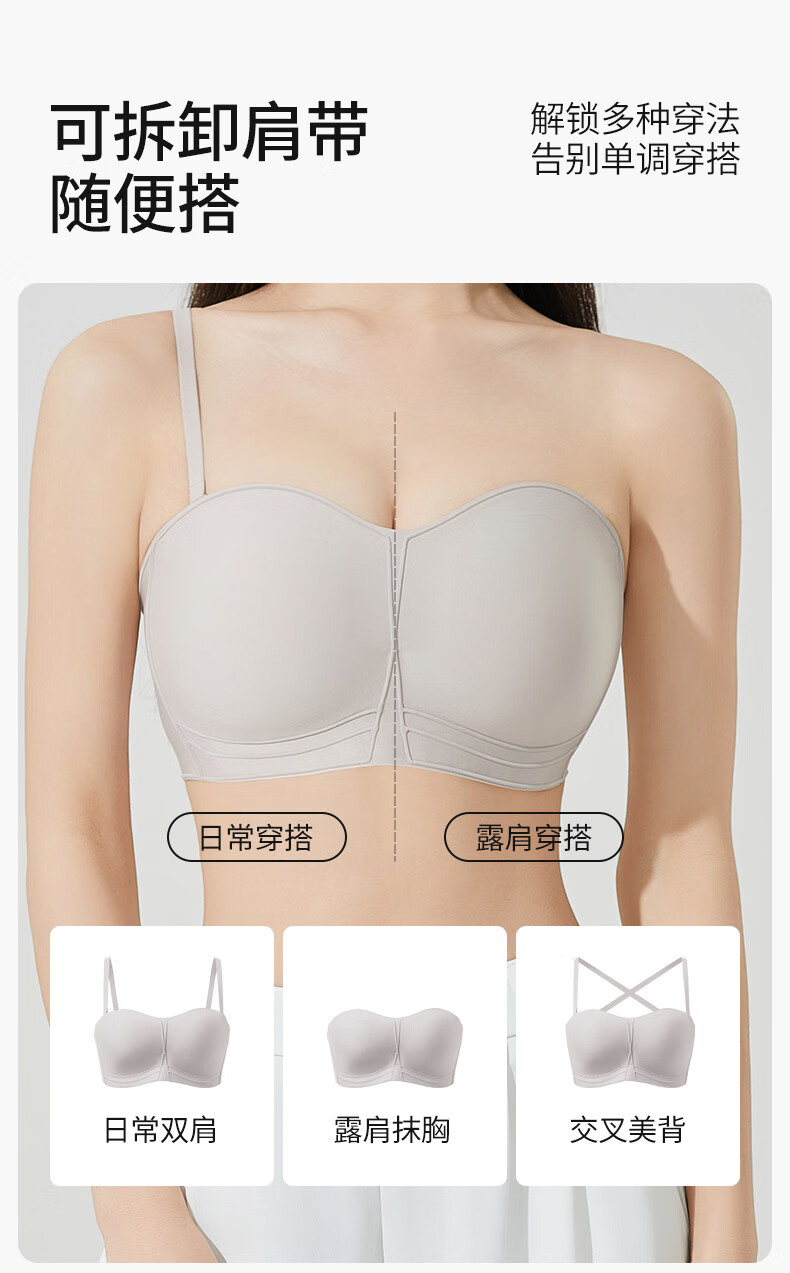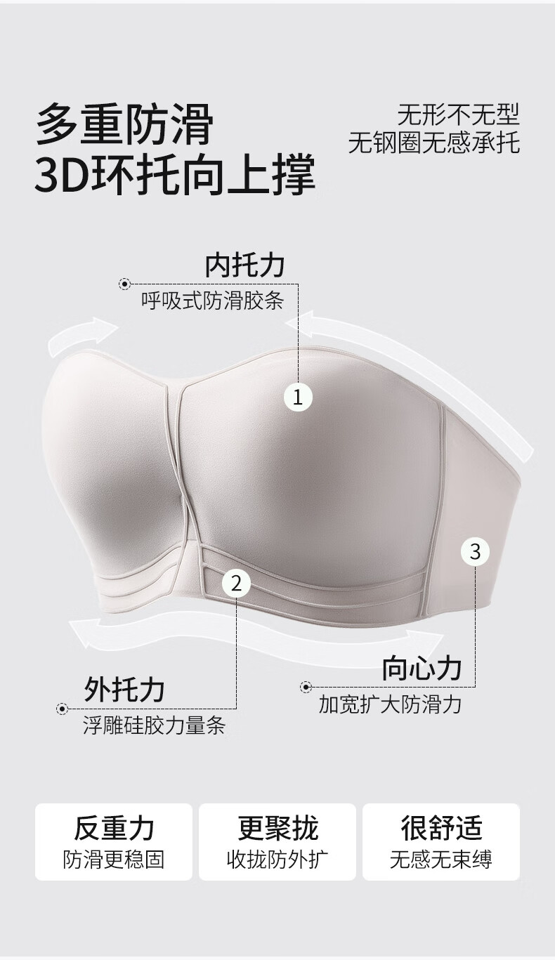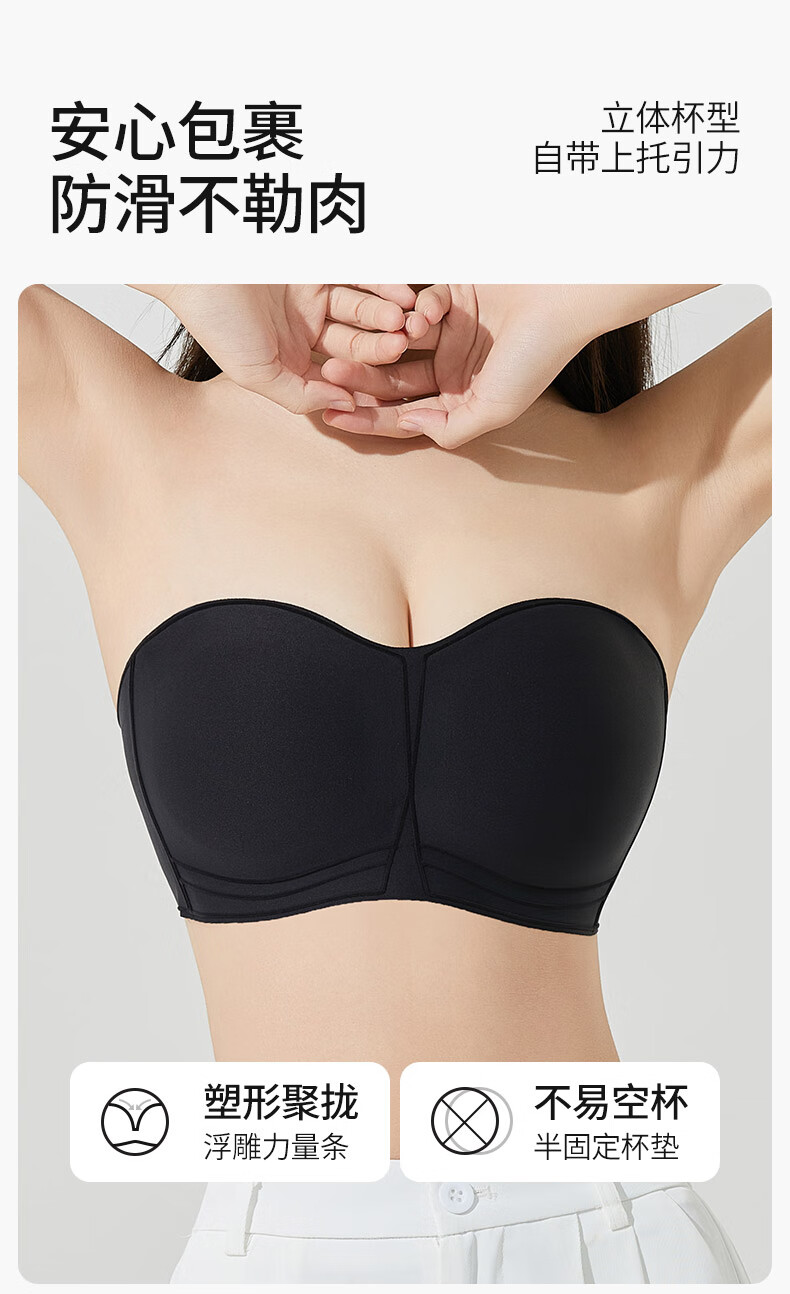 古今无痕无钢圈隐形防滑抹胸礼服结婚文胸小胸聚拢可拆卸肩带内衣 经典黑【单件装】 M (70A/70B/75A/75B)