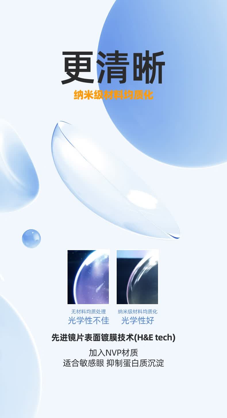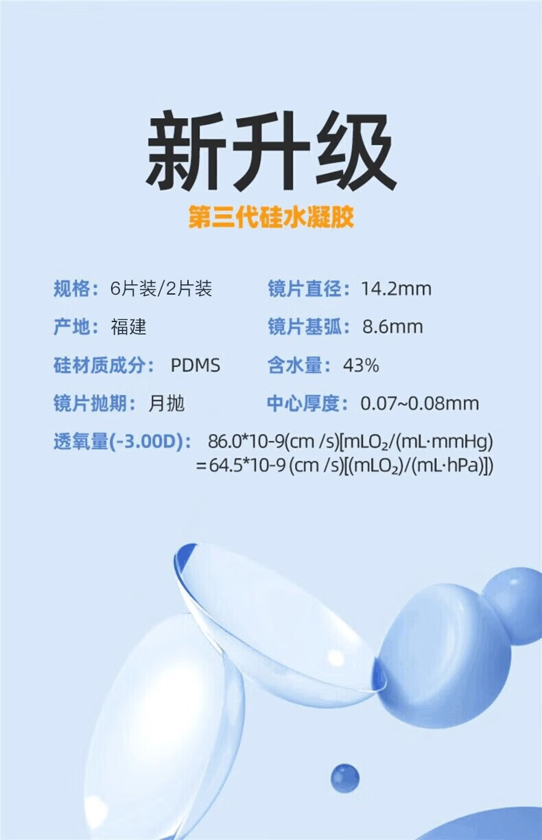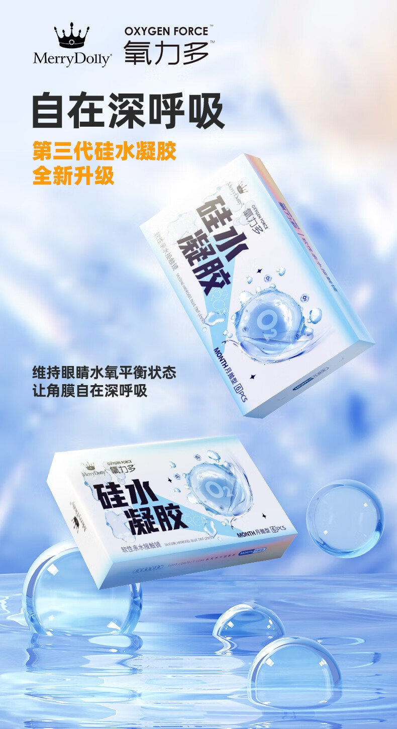 Merry dolly氧力多硅水凝胶近视隐形眼镜透明片2片6片适合干眼水润高透氧 硅水凝胶月抛(6片透氧量86DK/T) 650度