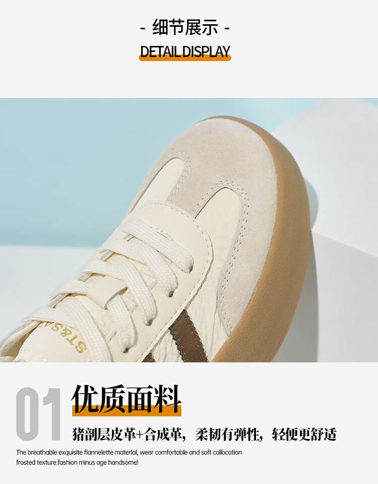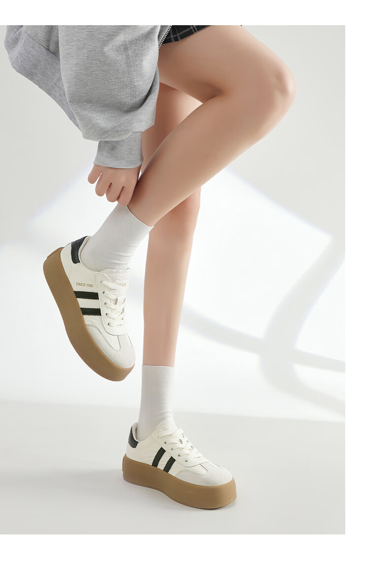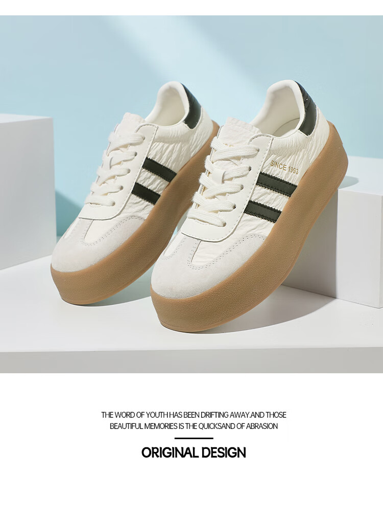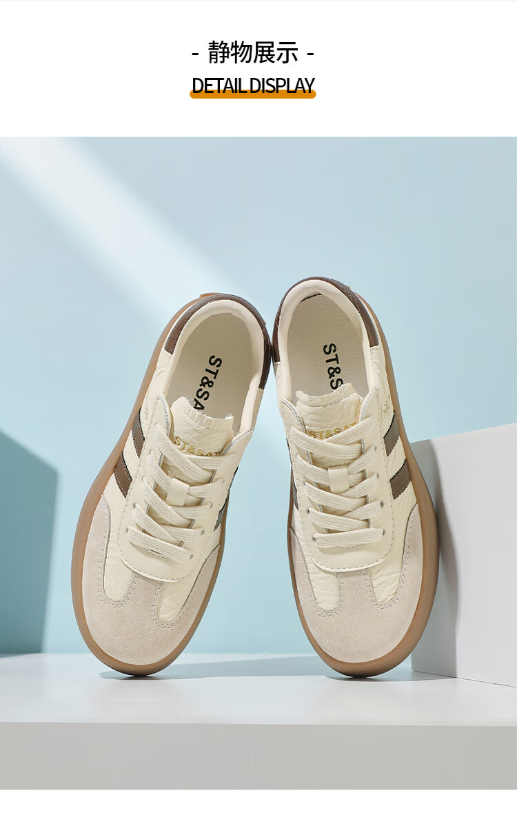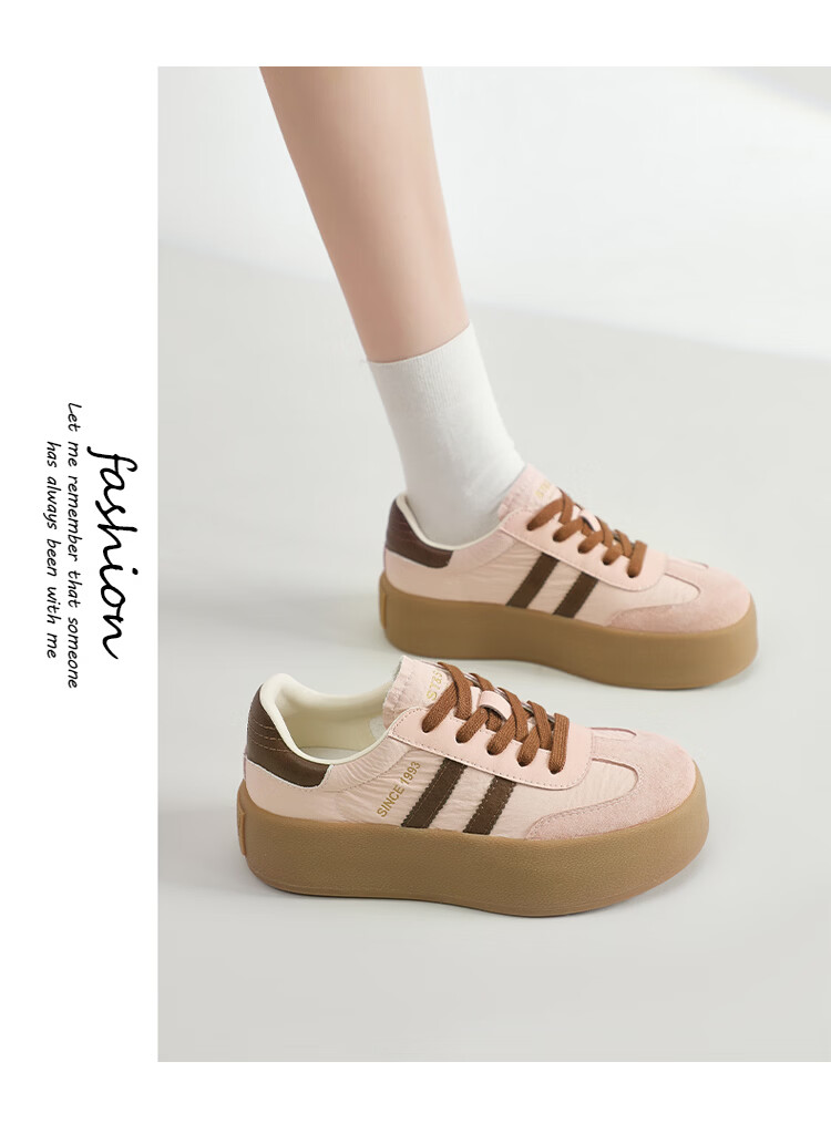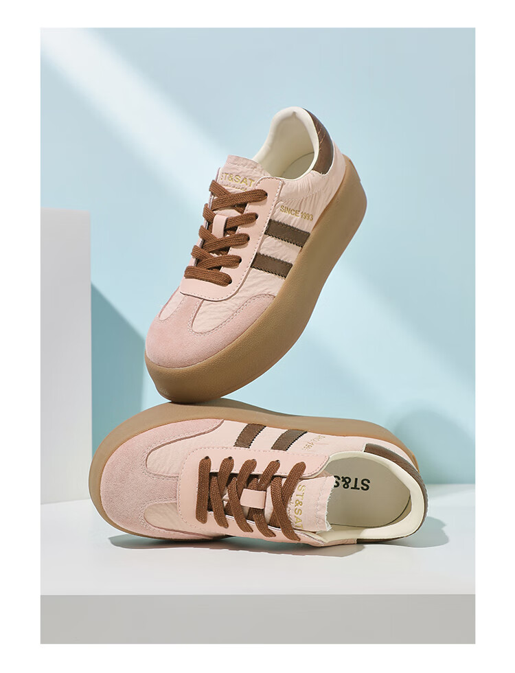 星期六(St&Sat)2026春季新款德训鞋拼色复古气质百搭舒适休闲鞋跑步鞋通勤女鞋子 粉色 37