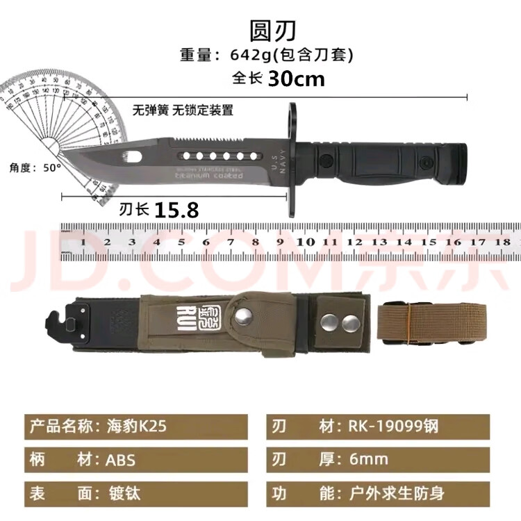 海豹突击队K25户外战术直刀高硬度钢刀野外生存便携刀具收藏 圆头