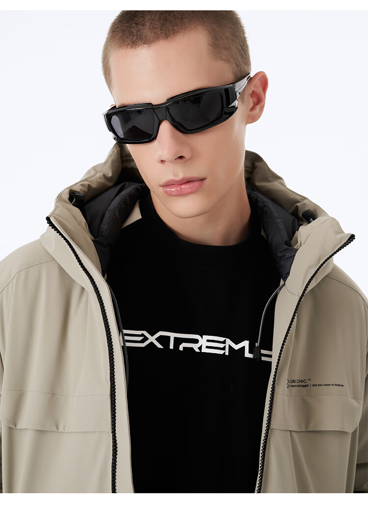 金羽杰冬季新款商务休闲羽绒服男短款反季连帽宽松轻暖冲锋衣N23801111 流沙色 S 适合120斤以下