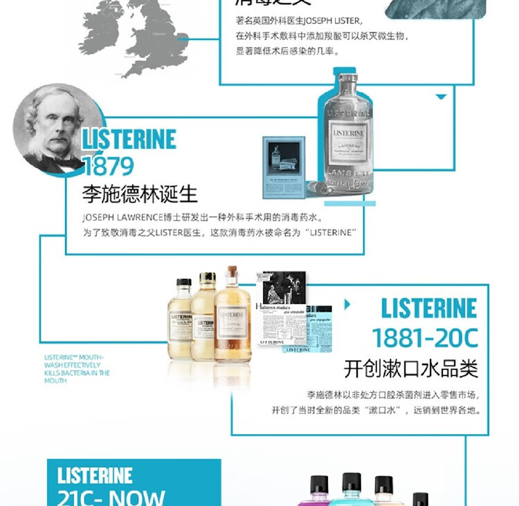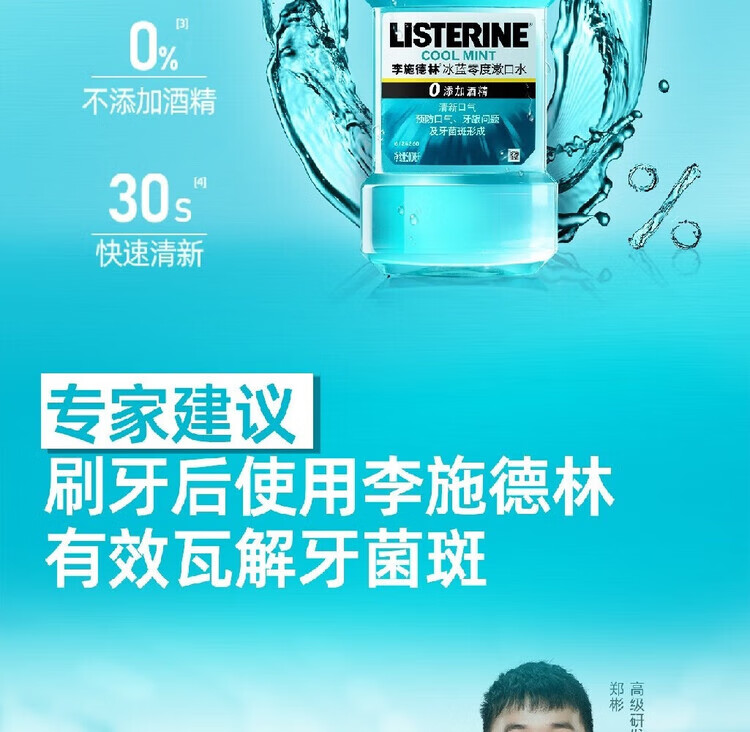 李施德林漱口水100ml/250ml多效冰蓝零度减少细菌口气清新护齿便携旅游装 冰蓝零度(100+250)ml*2瓶