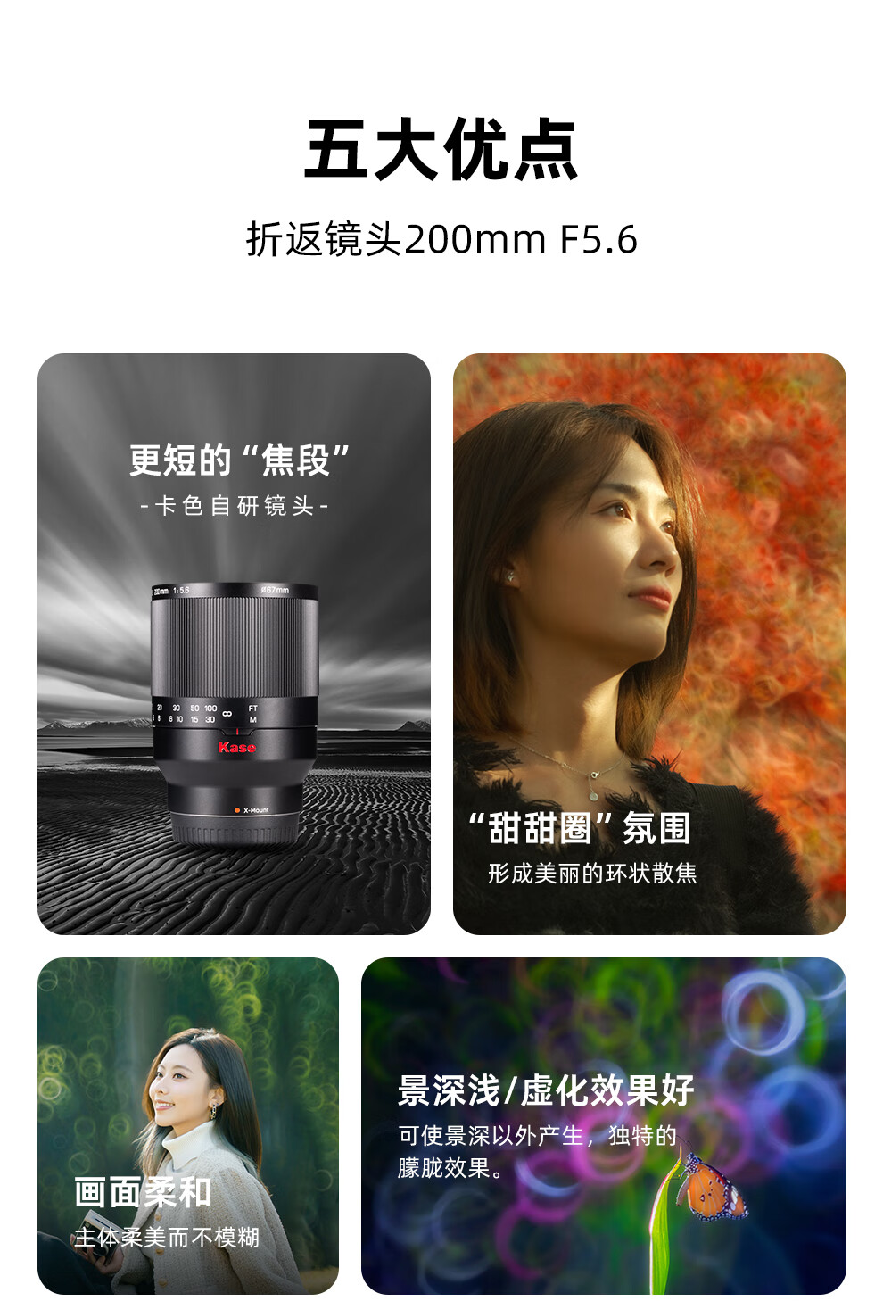 卡色相机折返镜头 200mm F5.6 全画幅微单反相机镜头 甜甜圈背景虚化梦幻特效摄影风光人像 【索尼E卡口】全画幅折返镜头