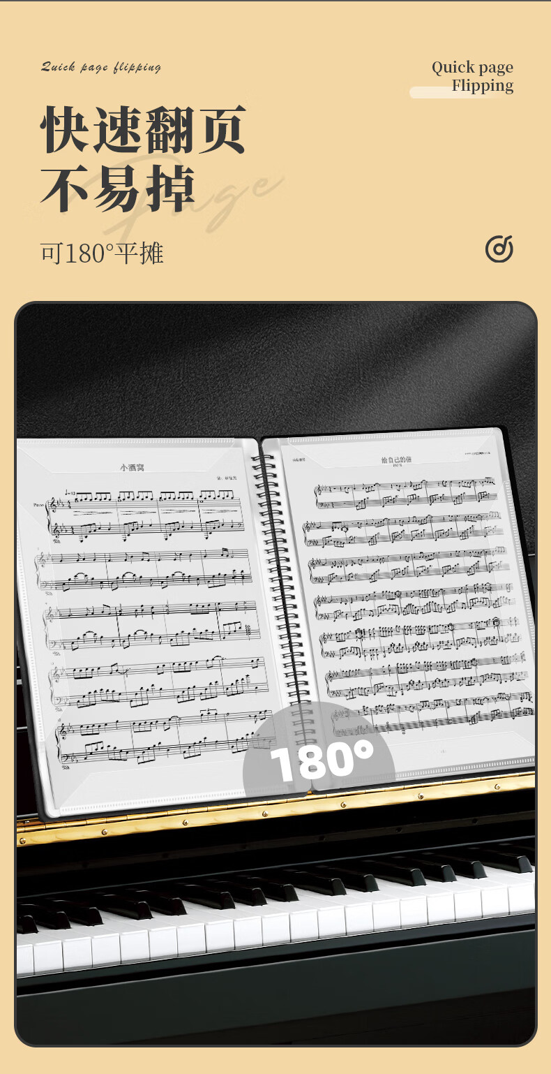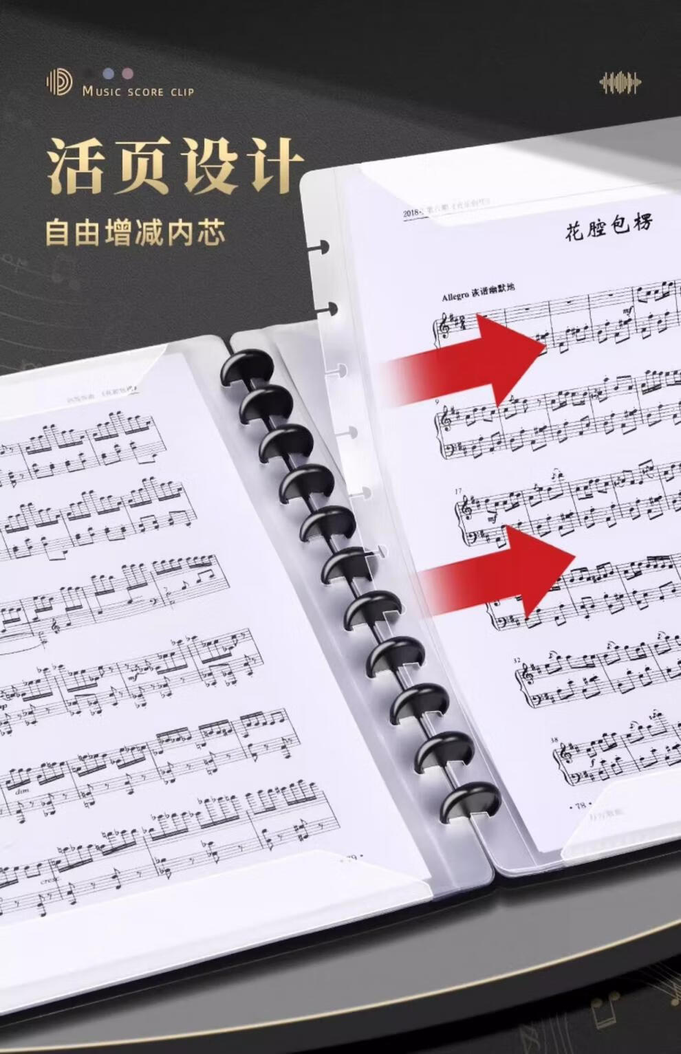 笔雾a4活页乐谱夹收纳册不反光可修改透明插页钢琴专用夹子大容量合唱歌谱曲资料册文件夹琴谱夹 【简约黑1本】20张/可装40页(送索引贴)
