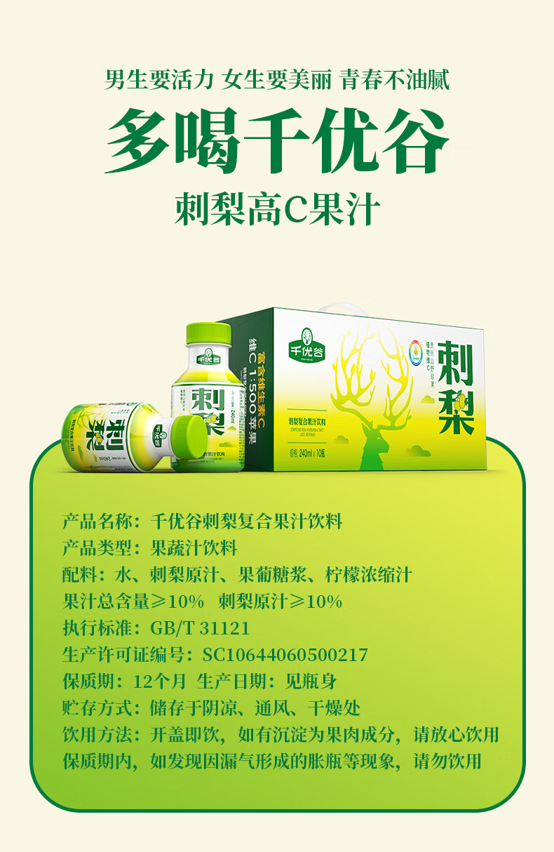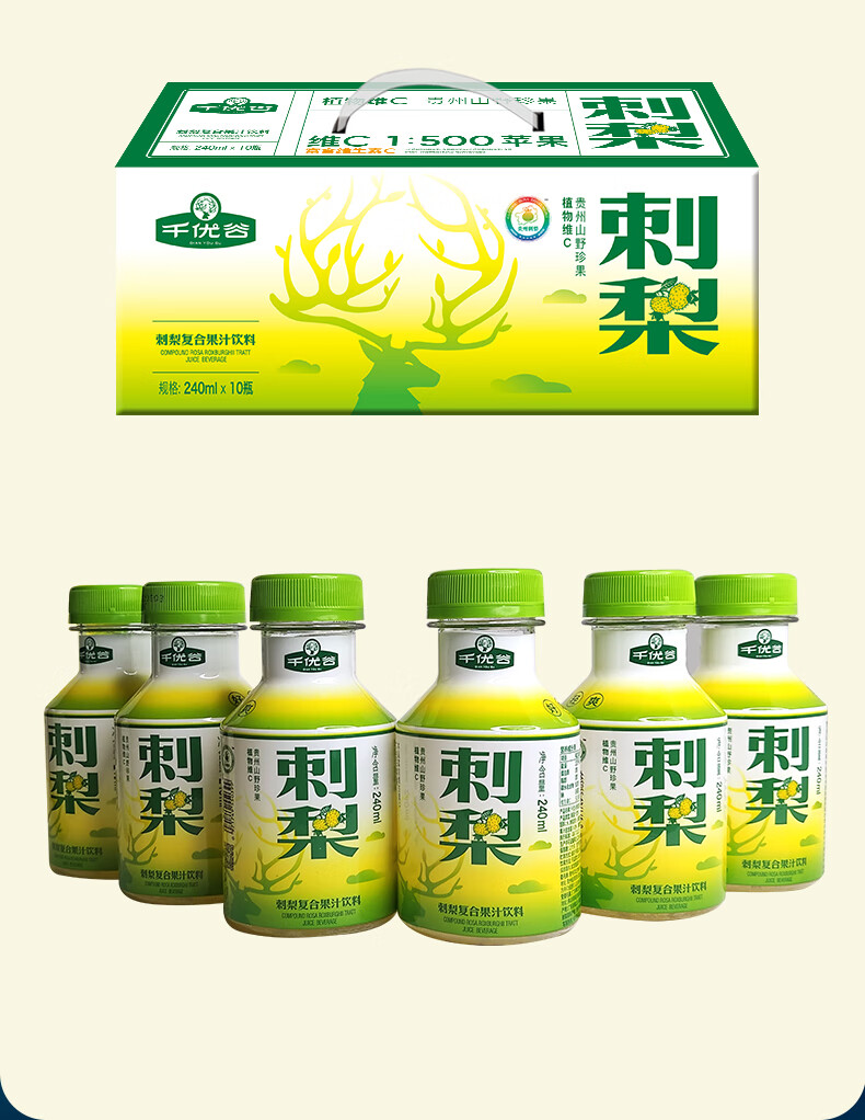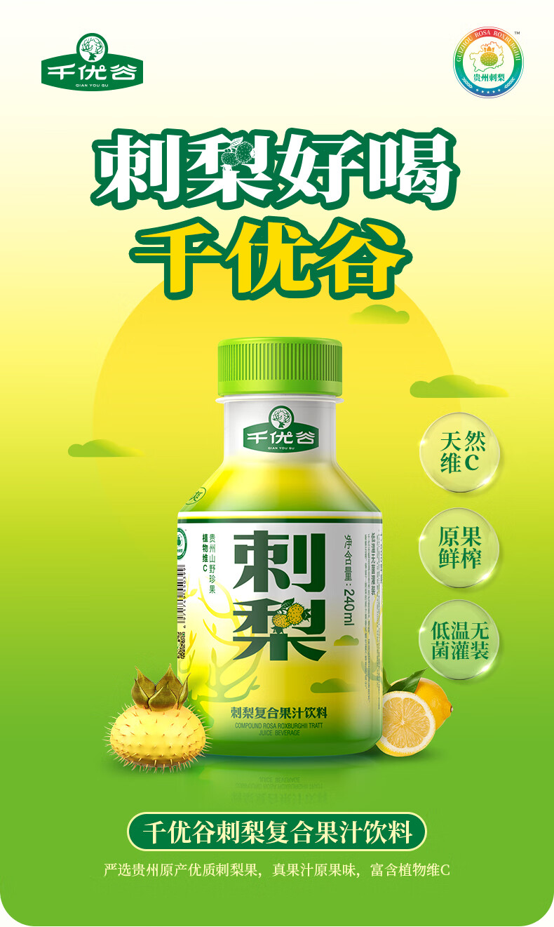 千优谷刺梨汁饮料天然植物维C无菌冷灌0色素0脂肪0香精刺梨果汁饮料 10瓶/箱