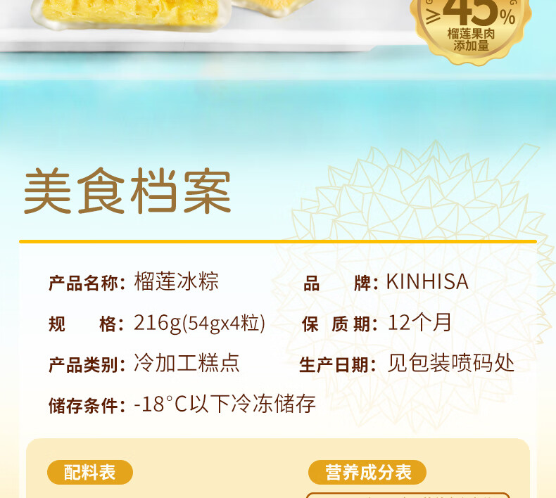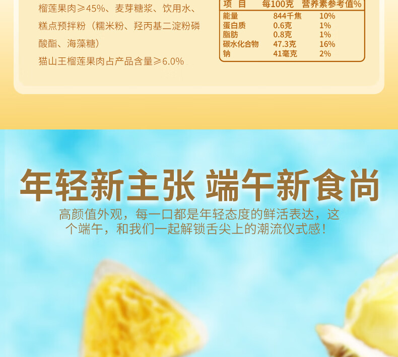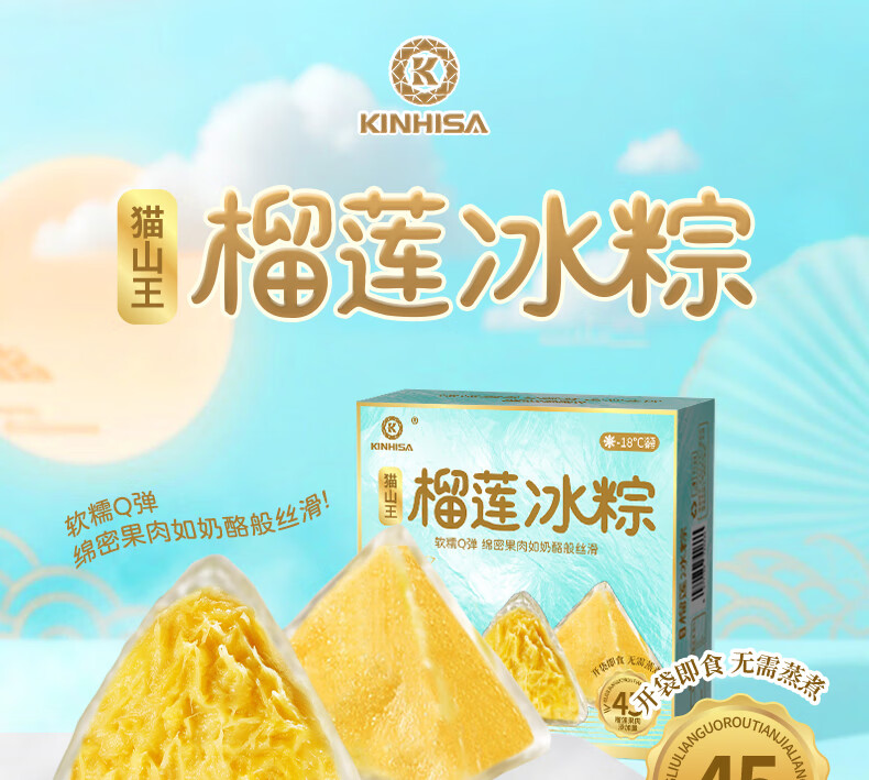 KINHISA猫山王榴莲冰粽中式榴莲点心早餐代餐零食下午茶蛋糕送礼开袋即食 榴莲冰粽4枚*2盒