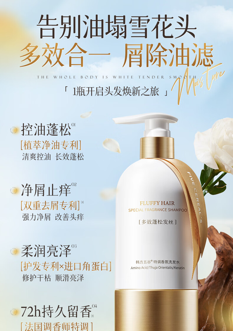 韩方五谷洗发水男女士控油蓬松去屑止痒修护氨基酸洗发露洗头膏持久留香