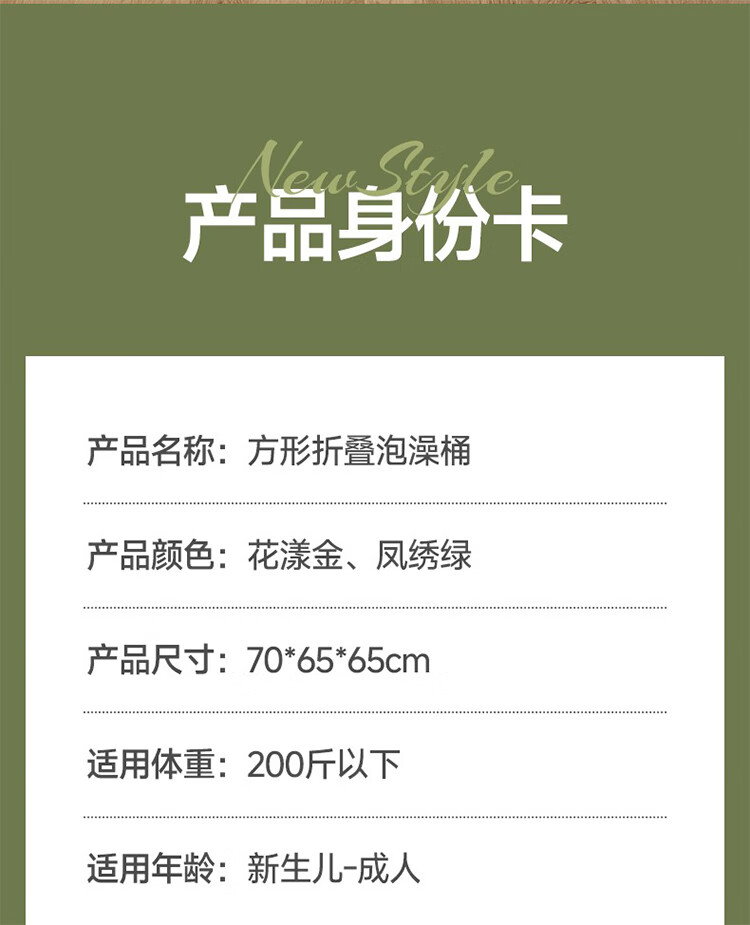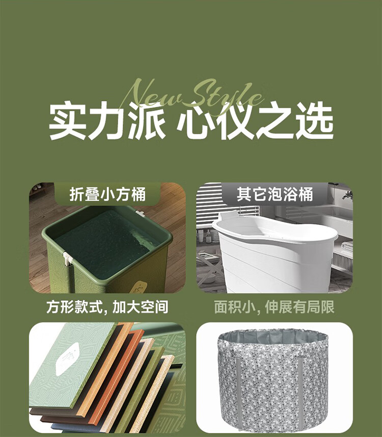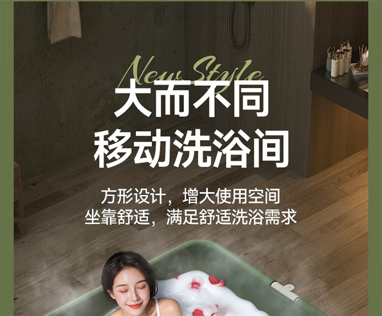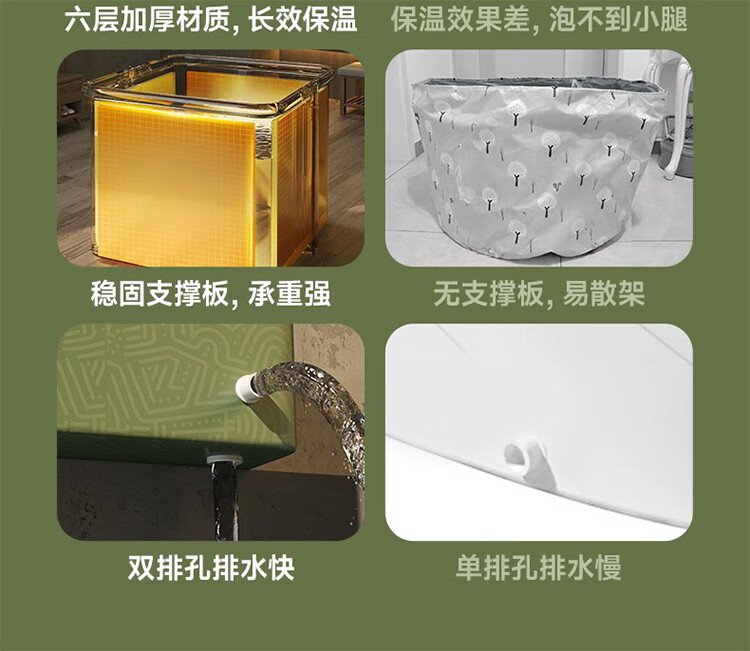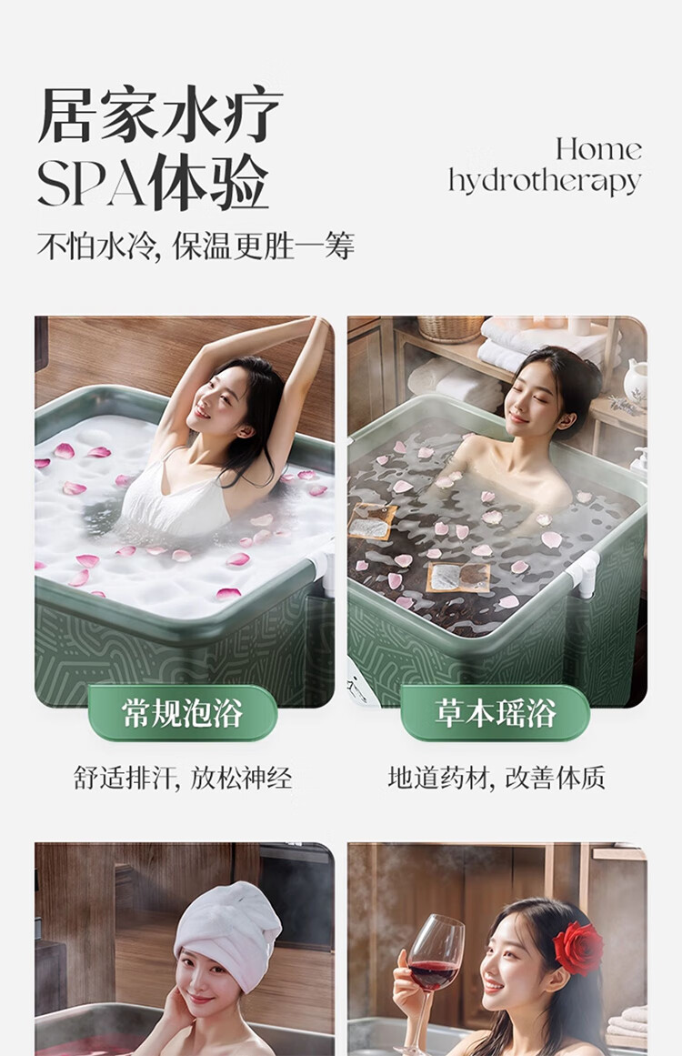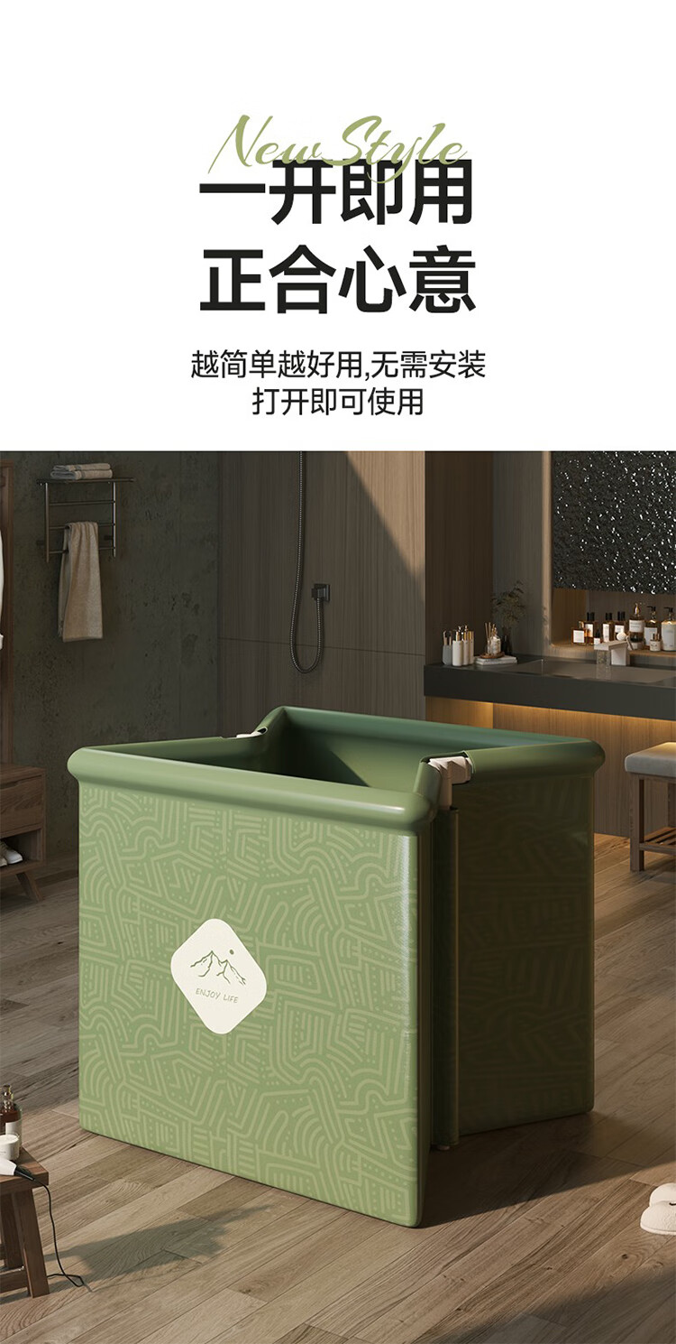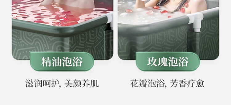 筏芯德国泡澡桶大人折叠家用儿童洗澡桶加厚成人全身浴缸女士沐浴桶 凤绣绿【复合板材+底部夹棉】入门礼