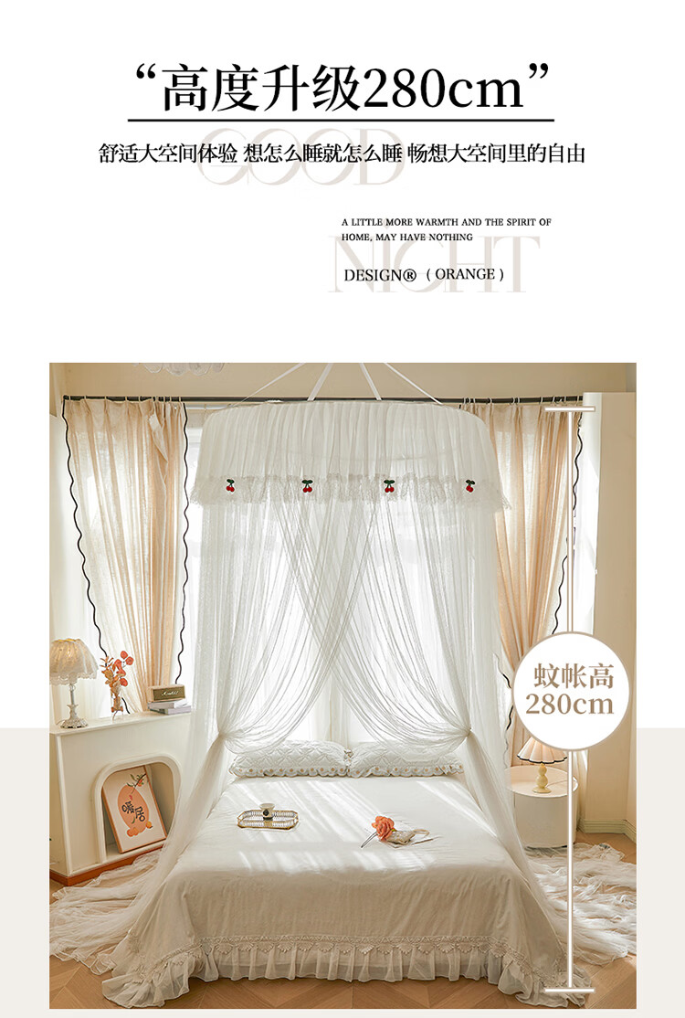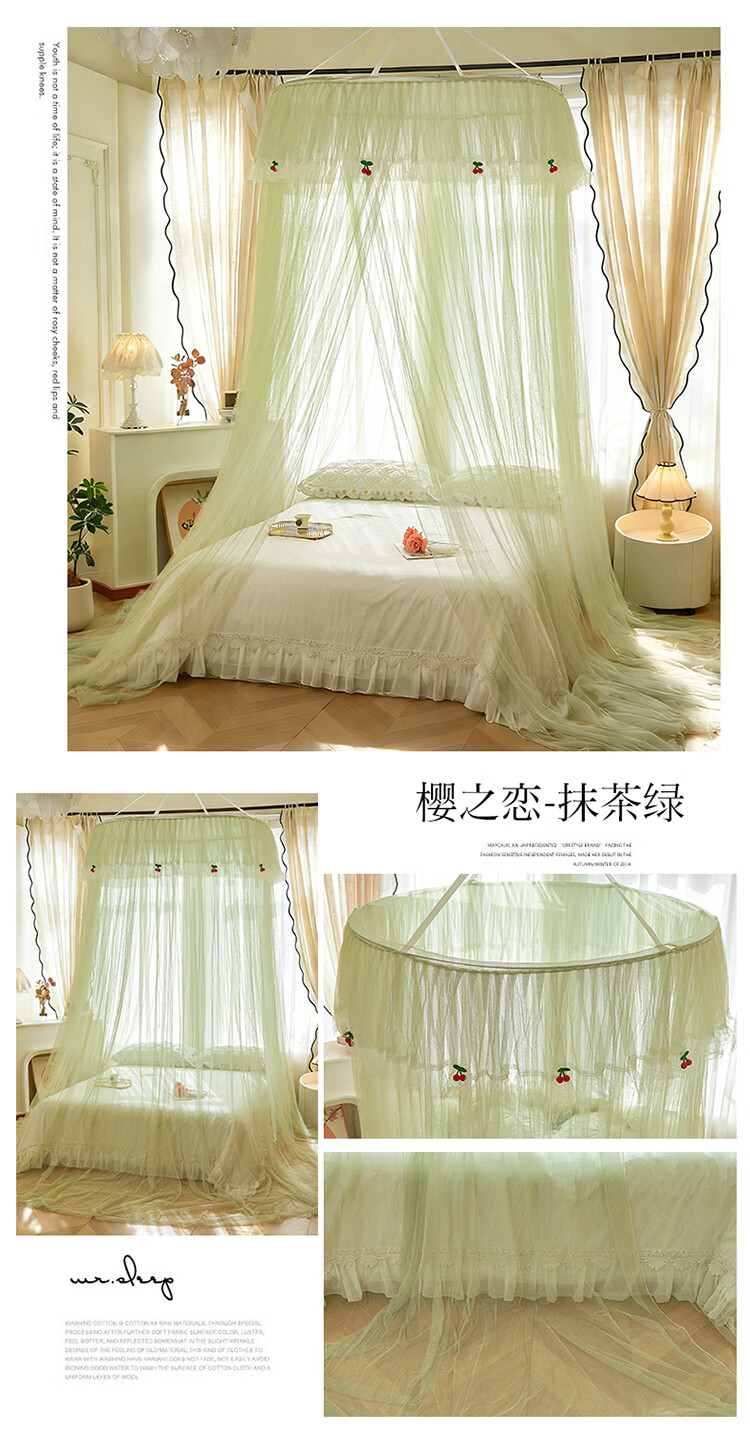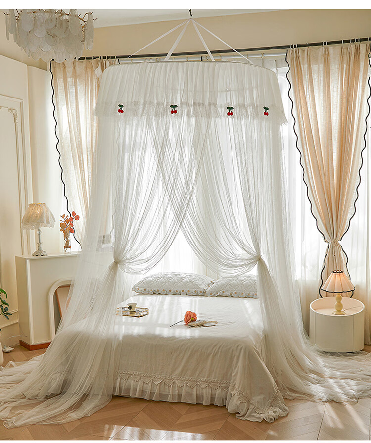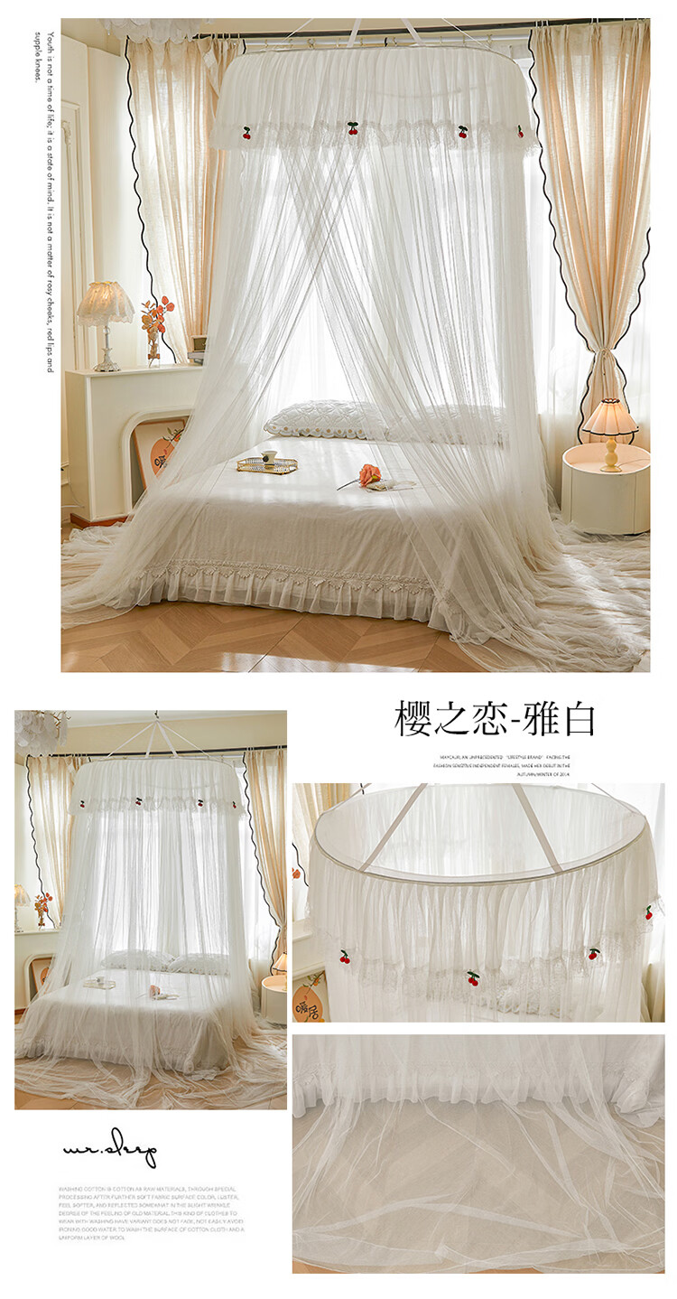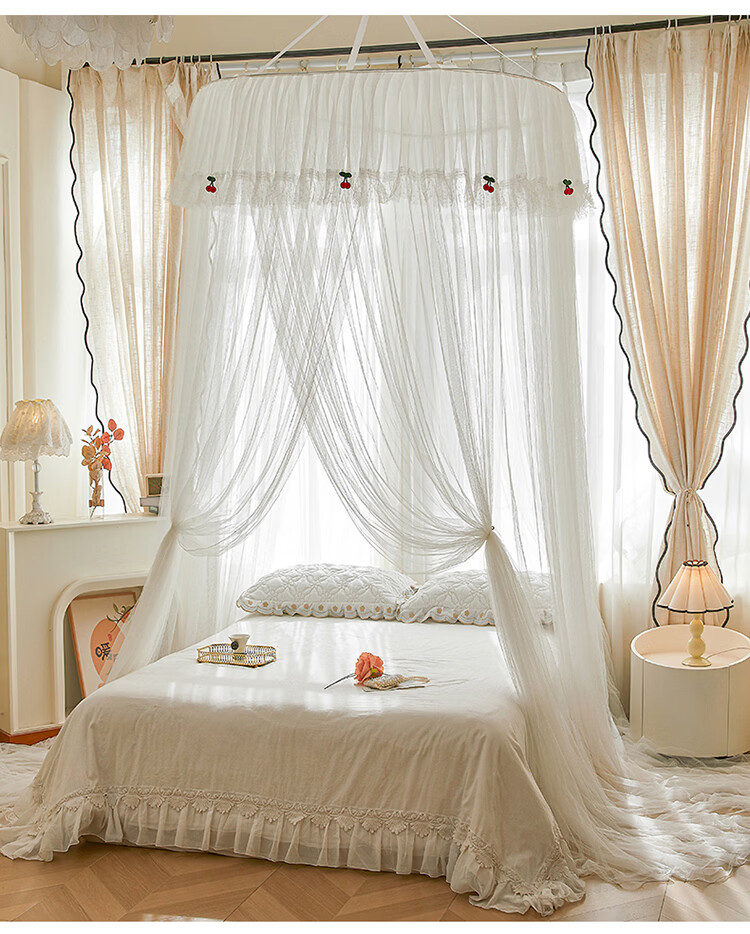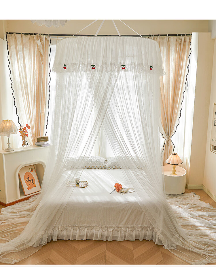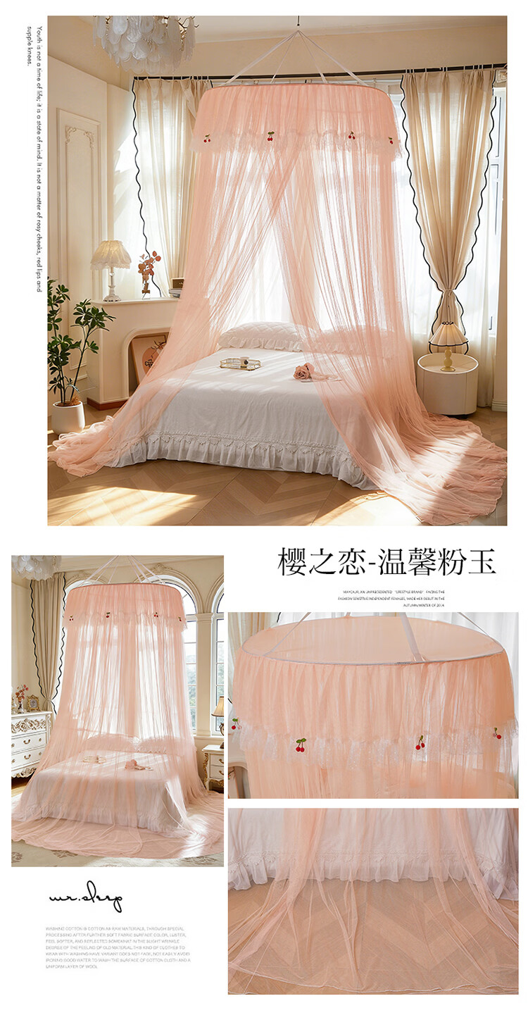 无印良品吊顶落地蚊帐免安装家用1.5米蚊帐一体式全包卧室圆顶公主床幔帐 樱之恋-粉玉【加密帐纱 高效防蚊】 120cm*120cm*180cm 【全尺寸床通用免安装】