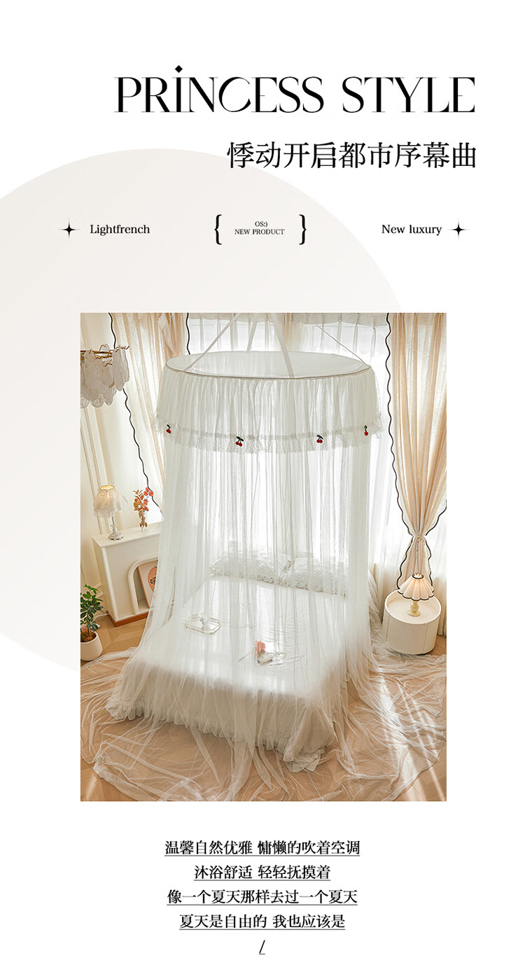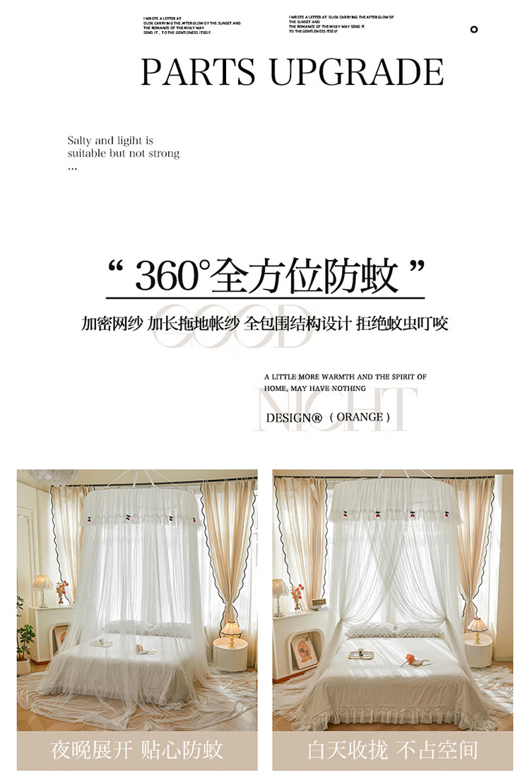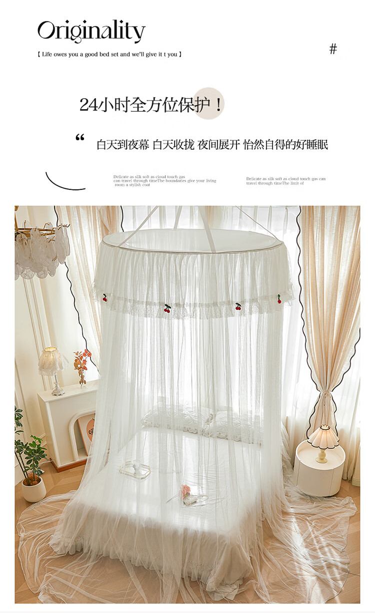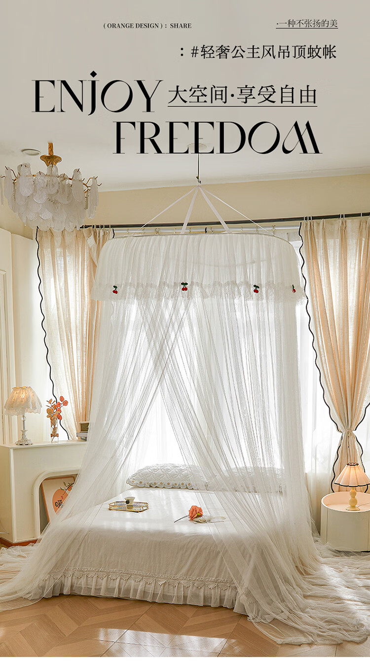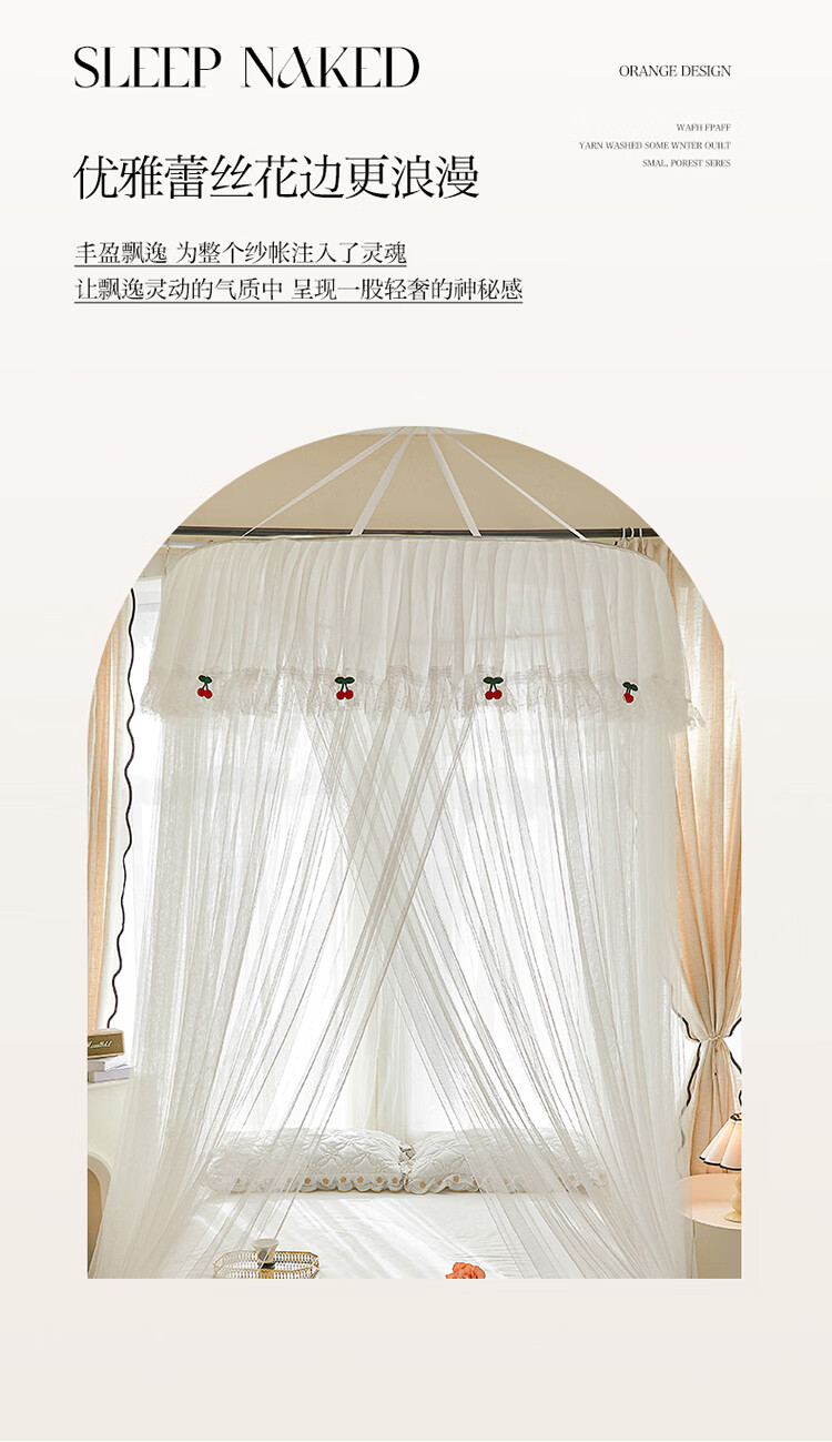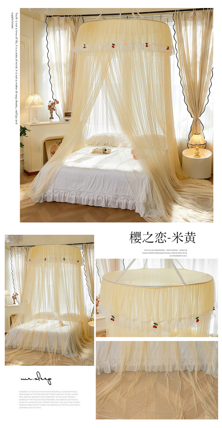 无印良品吊顶落地蚊帐免安装家用1.5米蚊帐一体式全包卧室圆顶公主床幔帐 樱之恋-粉玉【加密帐纱 高效防蚊】 120cm*120cm*180cm 【全尺寸床通用免安装】