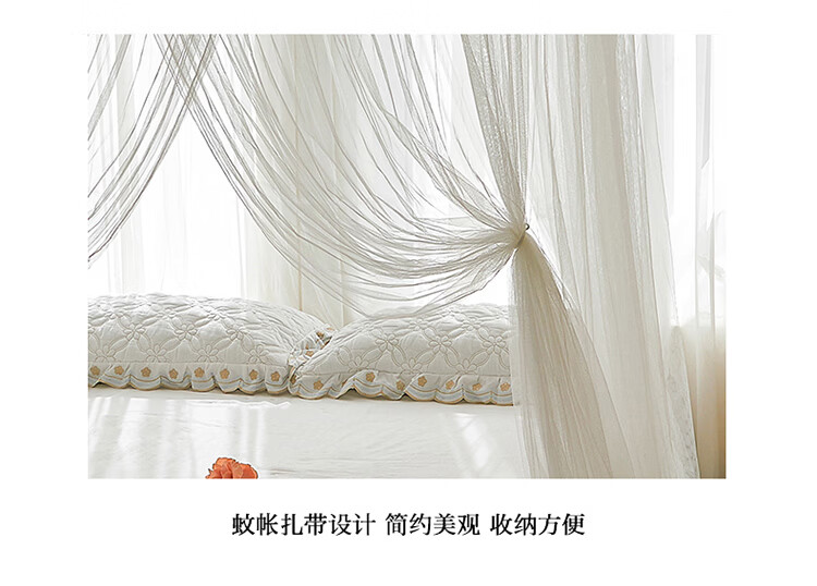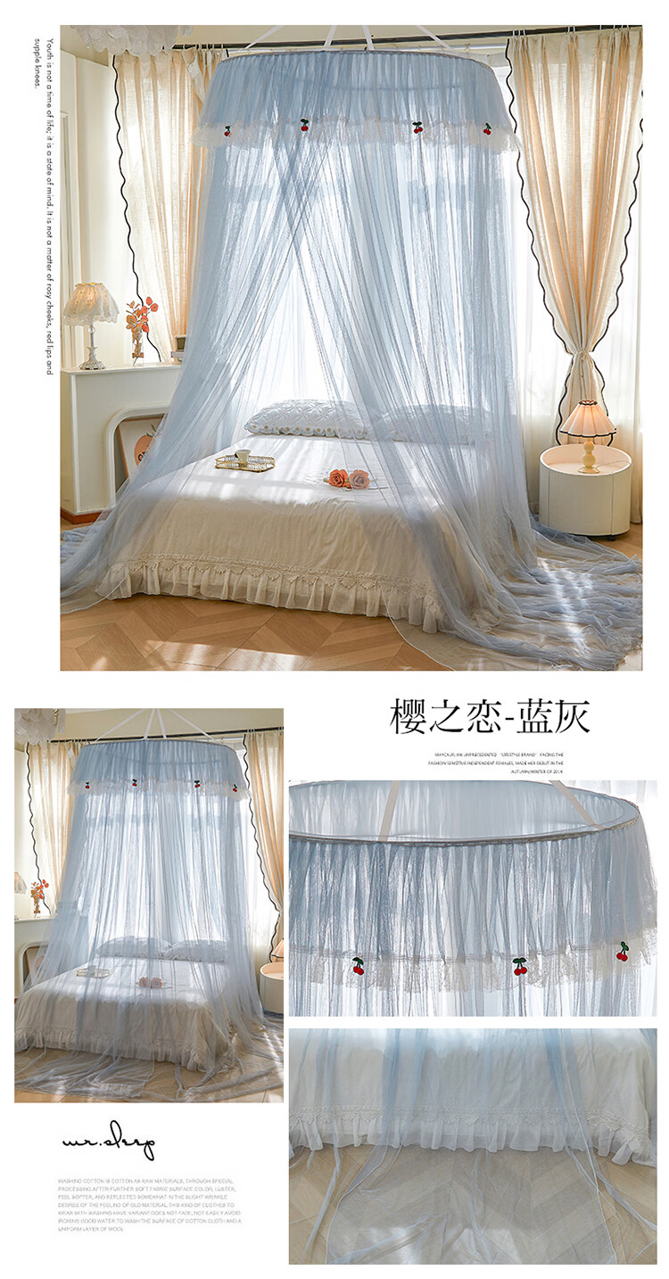 无印良品u型导轨蚊帐1.8x2米家用卧室高级感宫廷大床蚊帐免安装可升降支架 花香其乐-蓝灰【A类抗菌帐纱】 1.8m床-宽180x长200x高210cm
