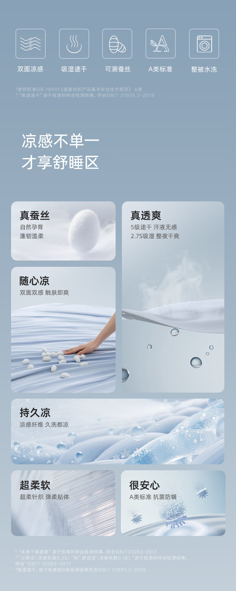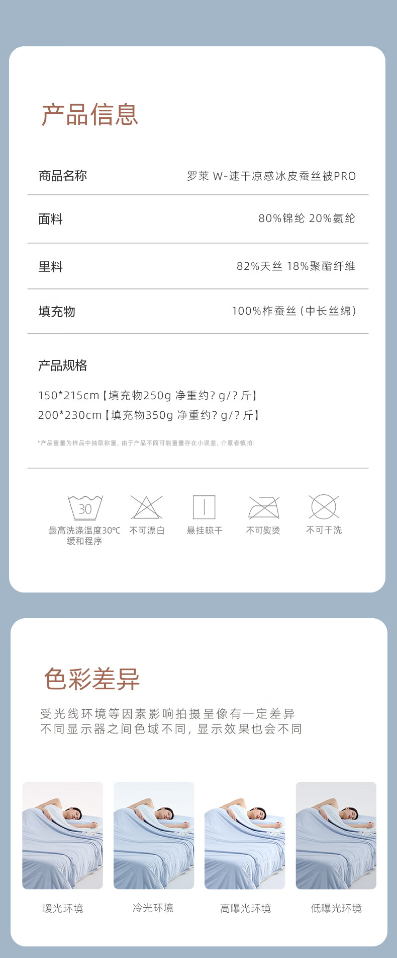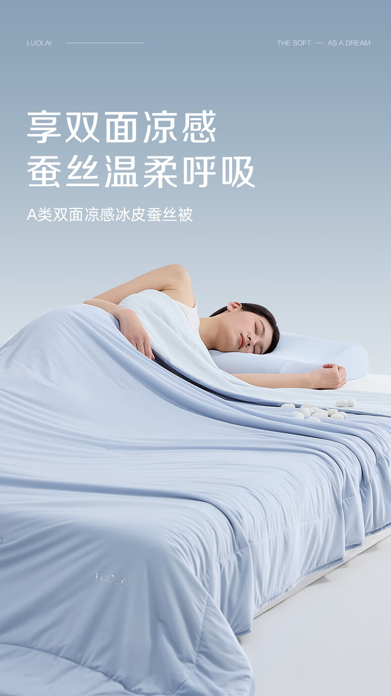 罗莱家纺婴幼儿A类吸湿速干凉感冰皮蚕丝夏被空调被 蓝色 150cm*200cm