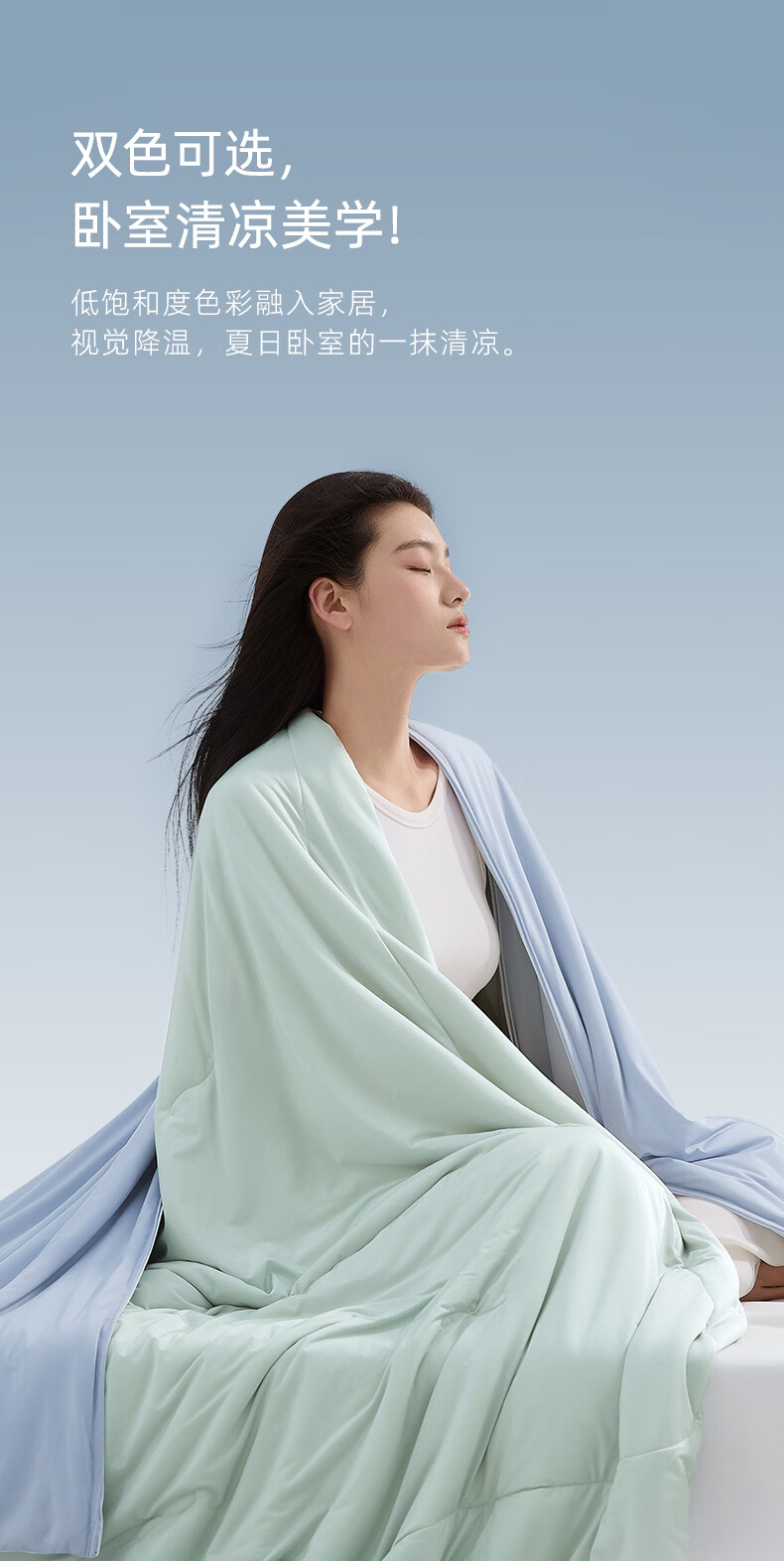 苏萱2026新款热卖水洗冰丝夏被四件套夏季夏凉被空调被可机水洗单双人 亚丁绿+冰川灰 单人夏被-150*200cm