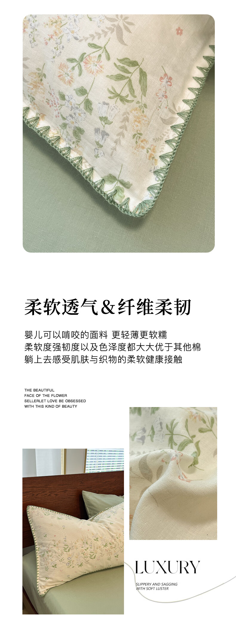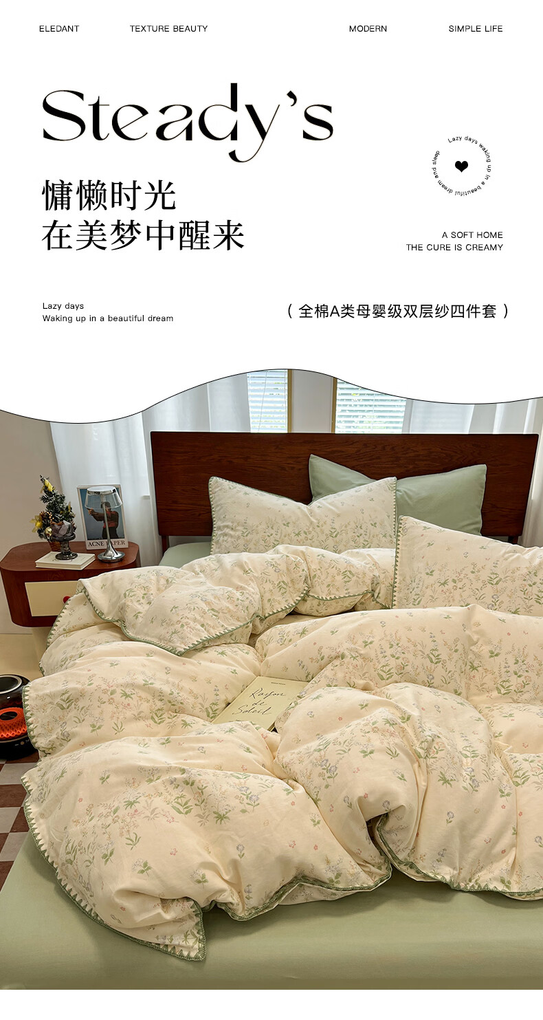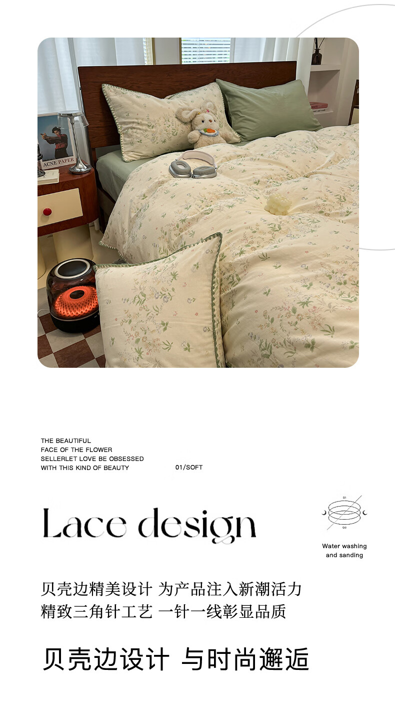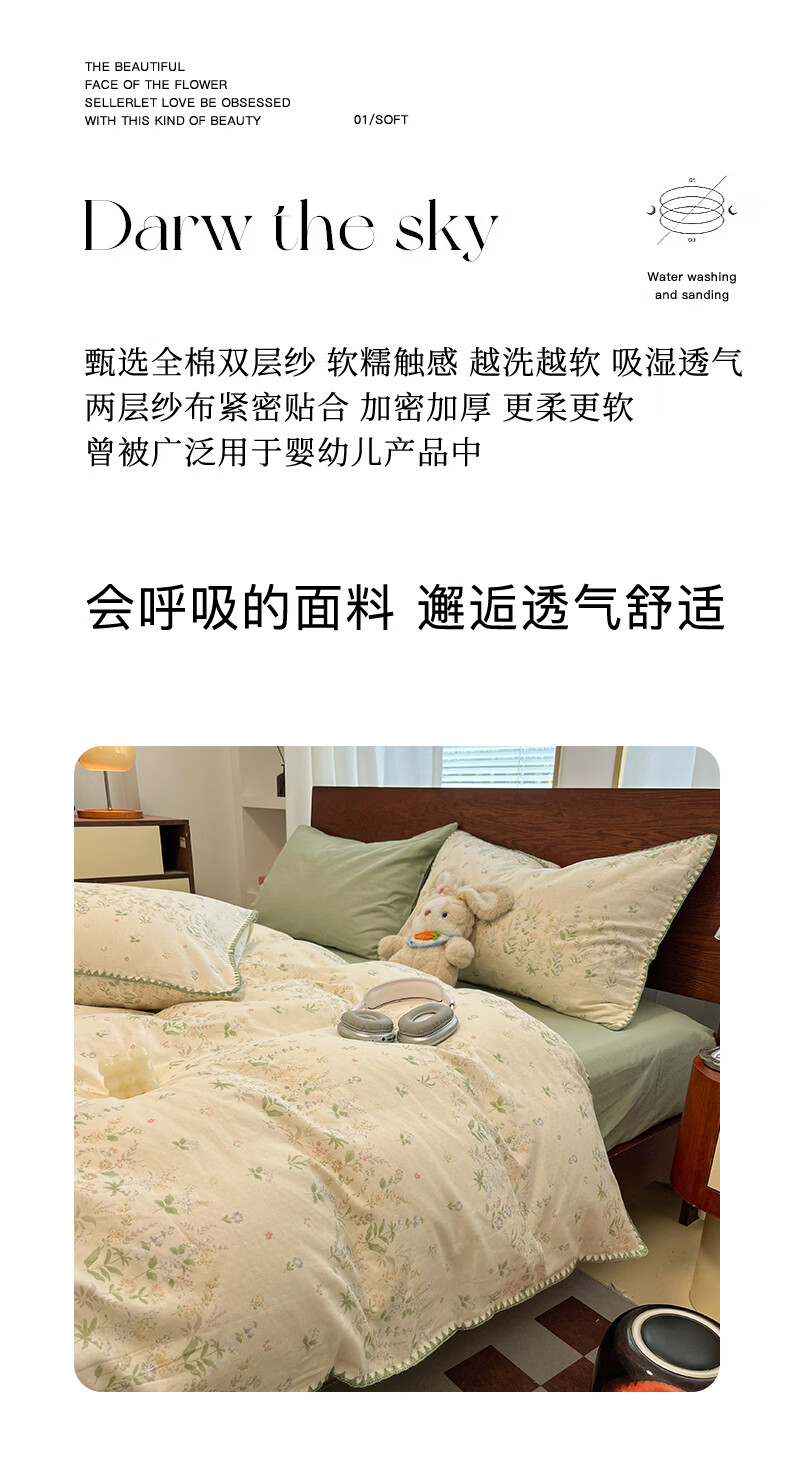 无印良品全棉床品四件套纯棉100%小清新花卉风单双人四季通用可裸睡三件套 苏屿【全棉面料 清新印花】 1.8m 床单款 被套200*230cm