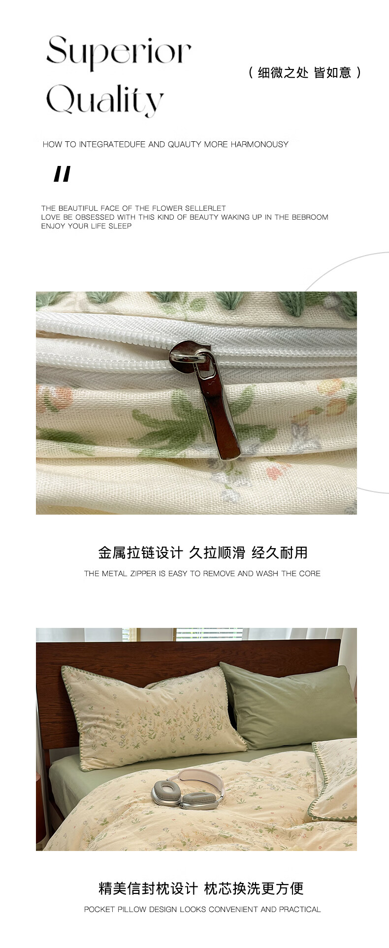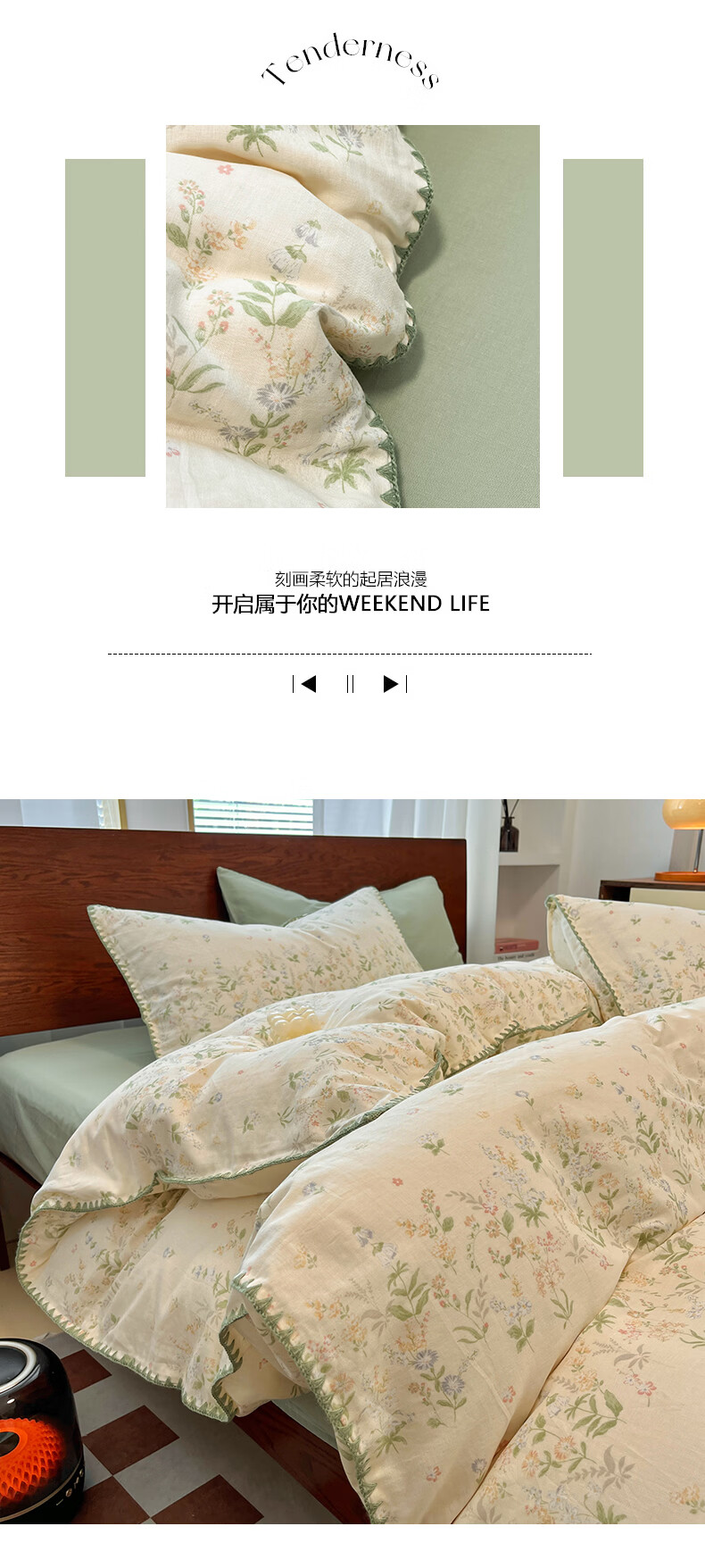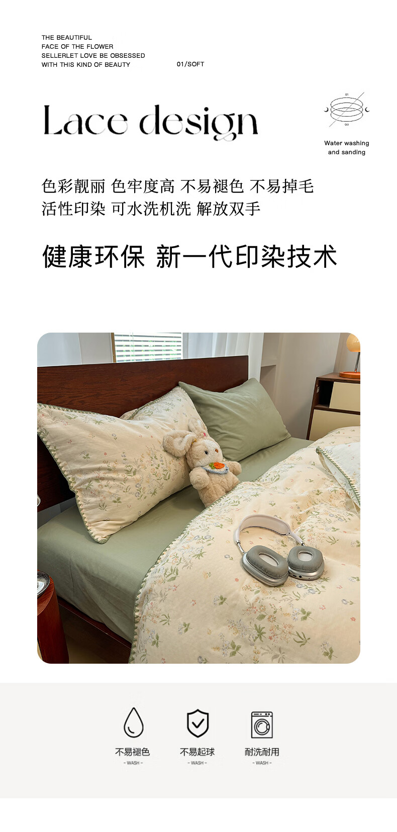无印良品全棉床品四件套纯棉100%小清新花卉风单双人四季通用可裸睡三件套 苏屿【全棉面料 清新印花】 1.8m 床单款 被套200*230cm