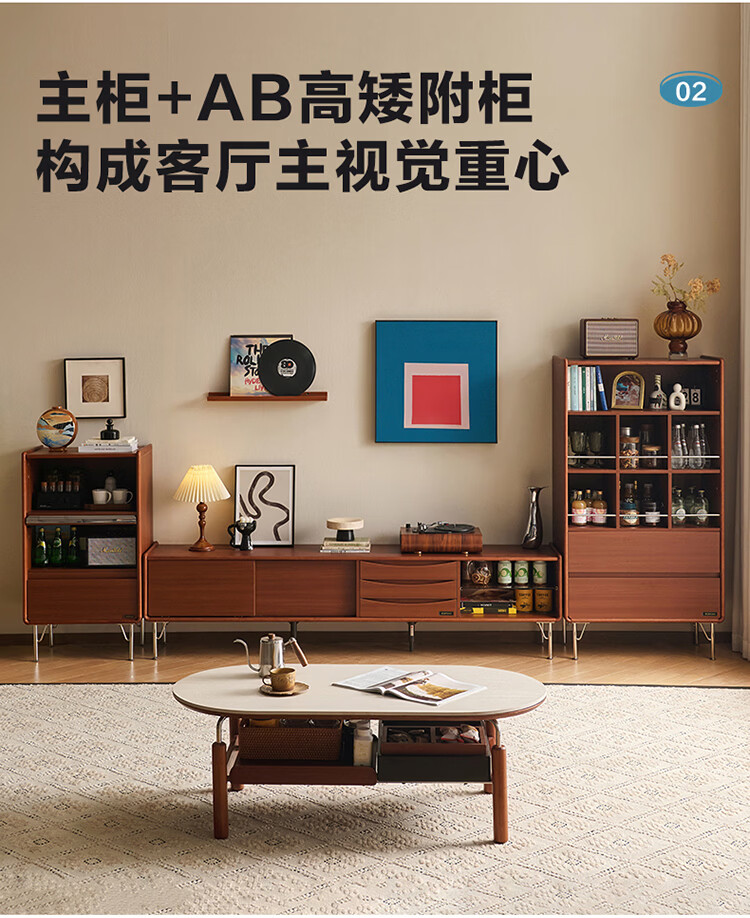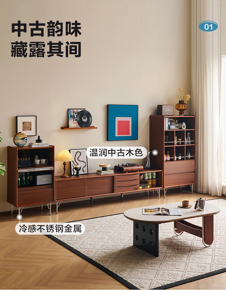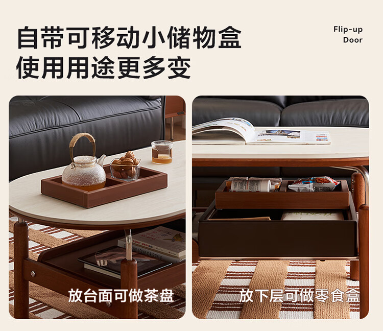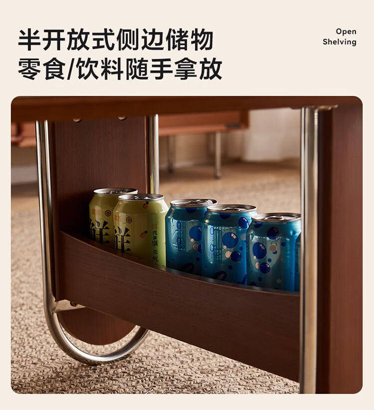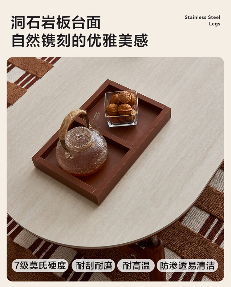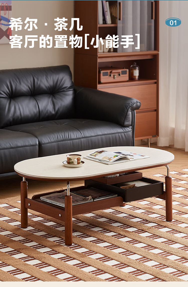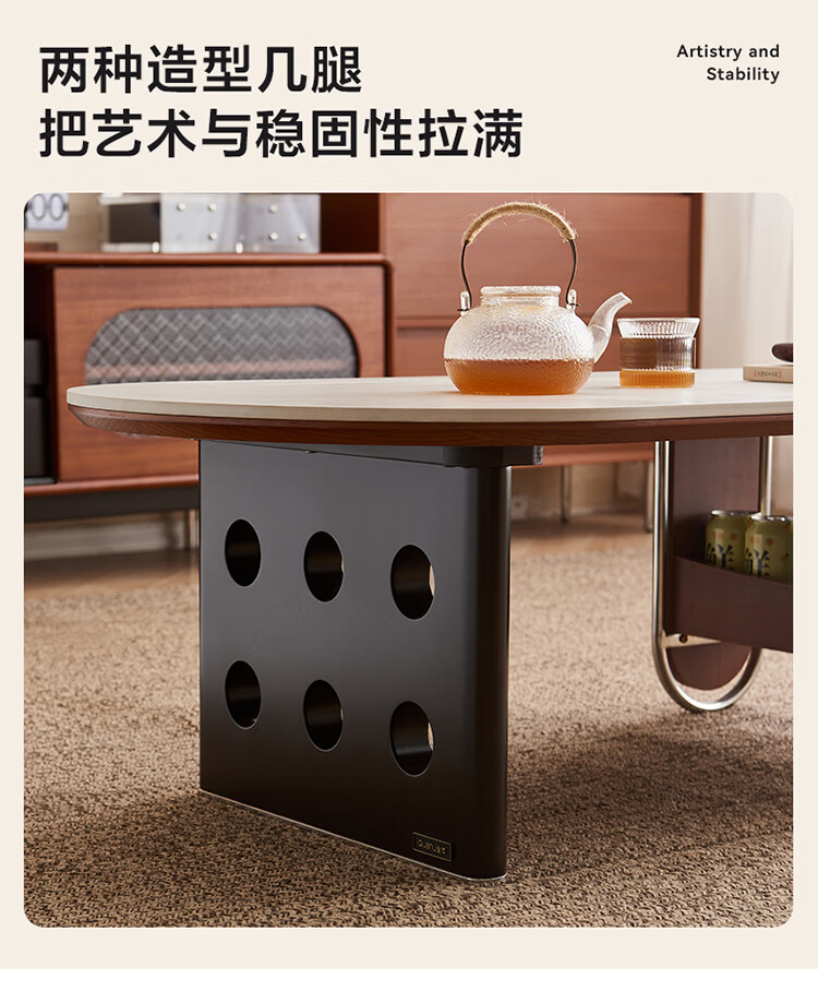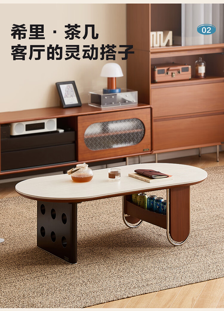 全友家居中古风电视机柜客厅轻奢高级感2026新款家用收纳储物柜子家具 【洞石岩板 | 双层储物款】希尔茶几