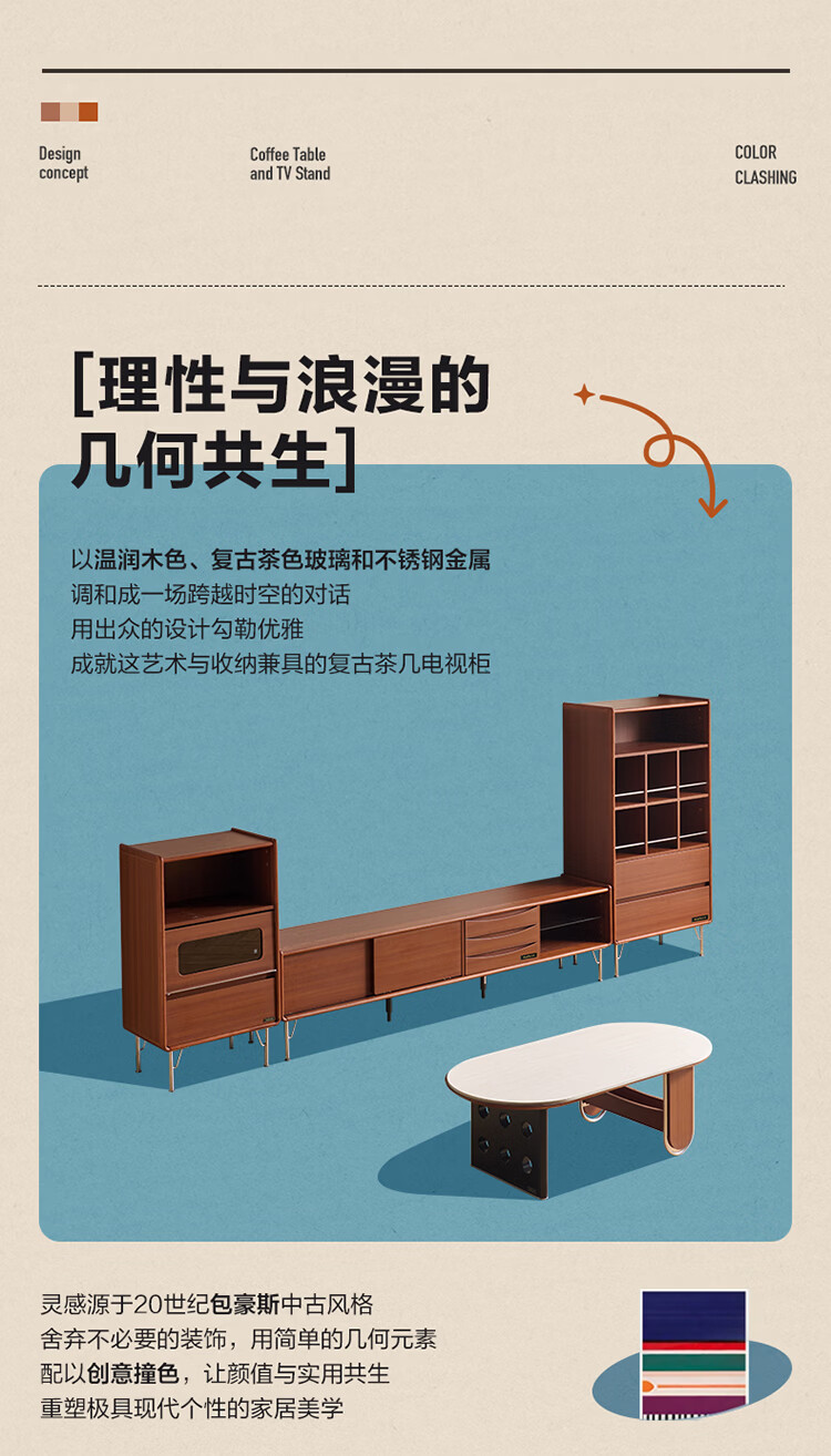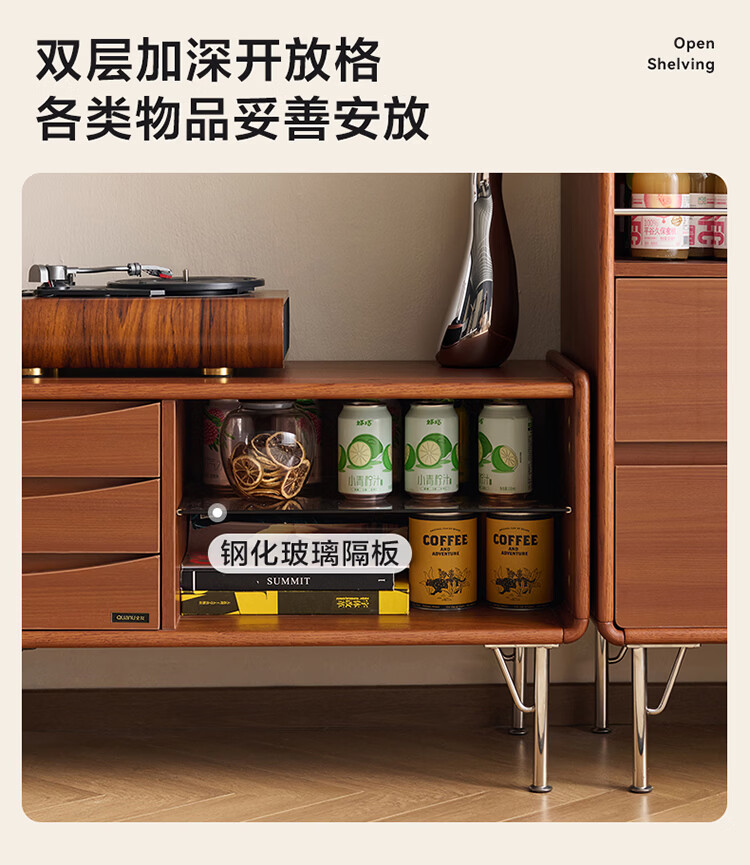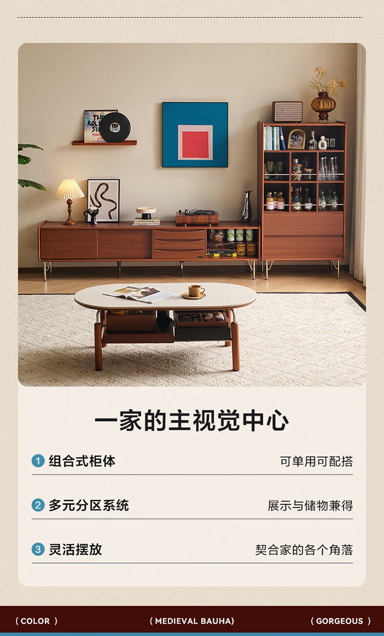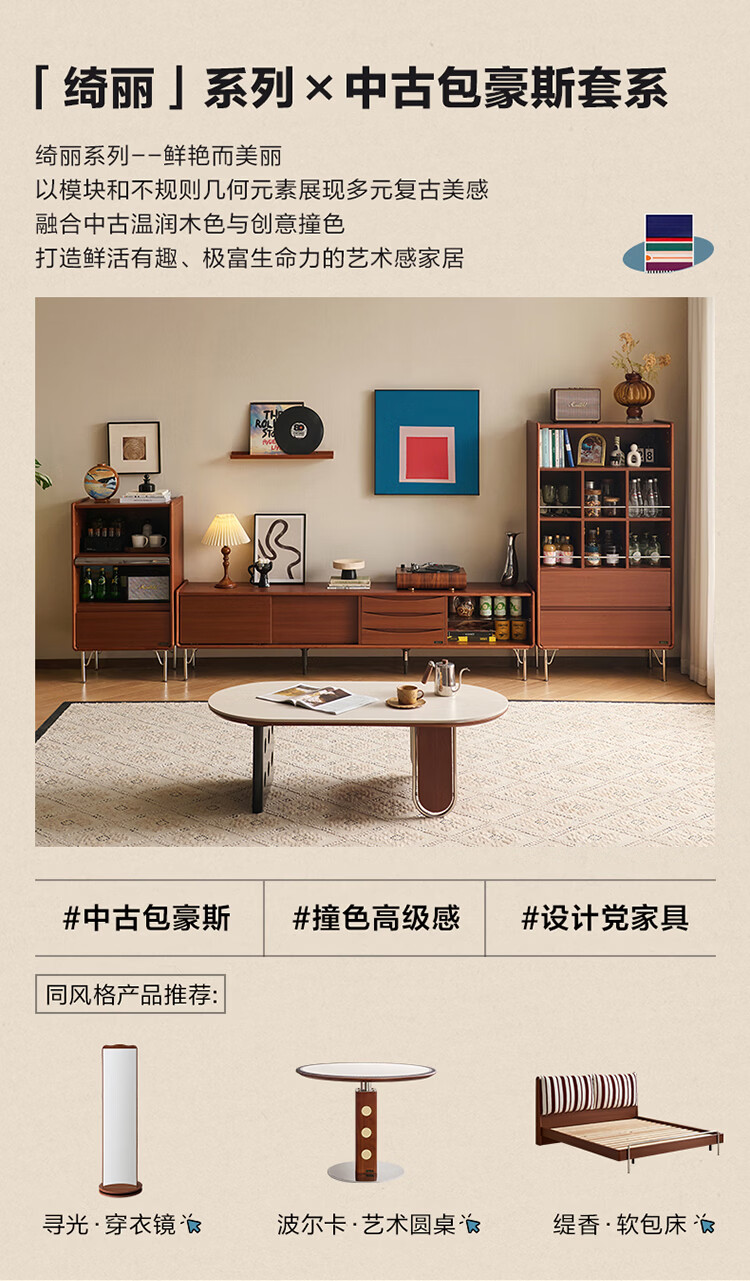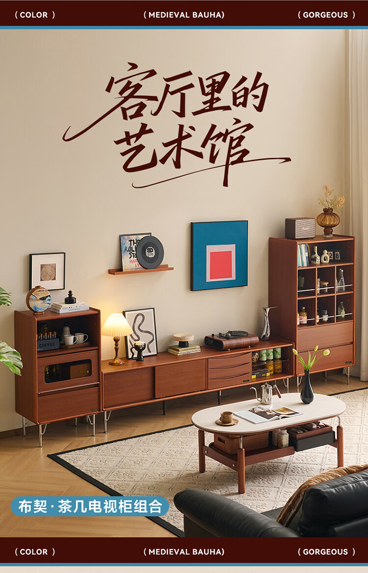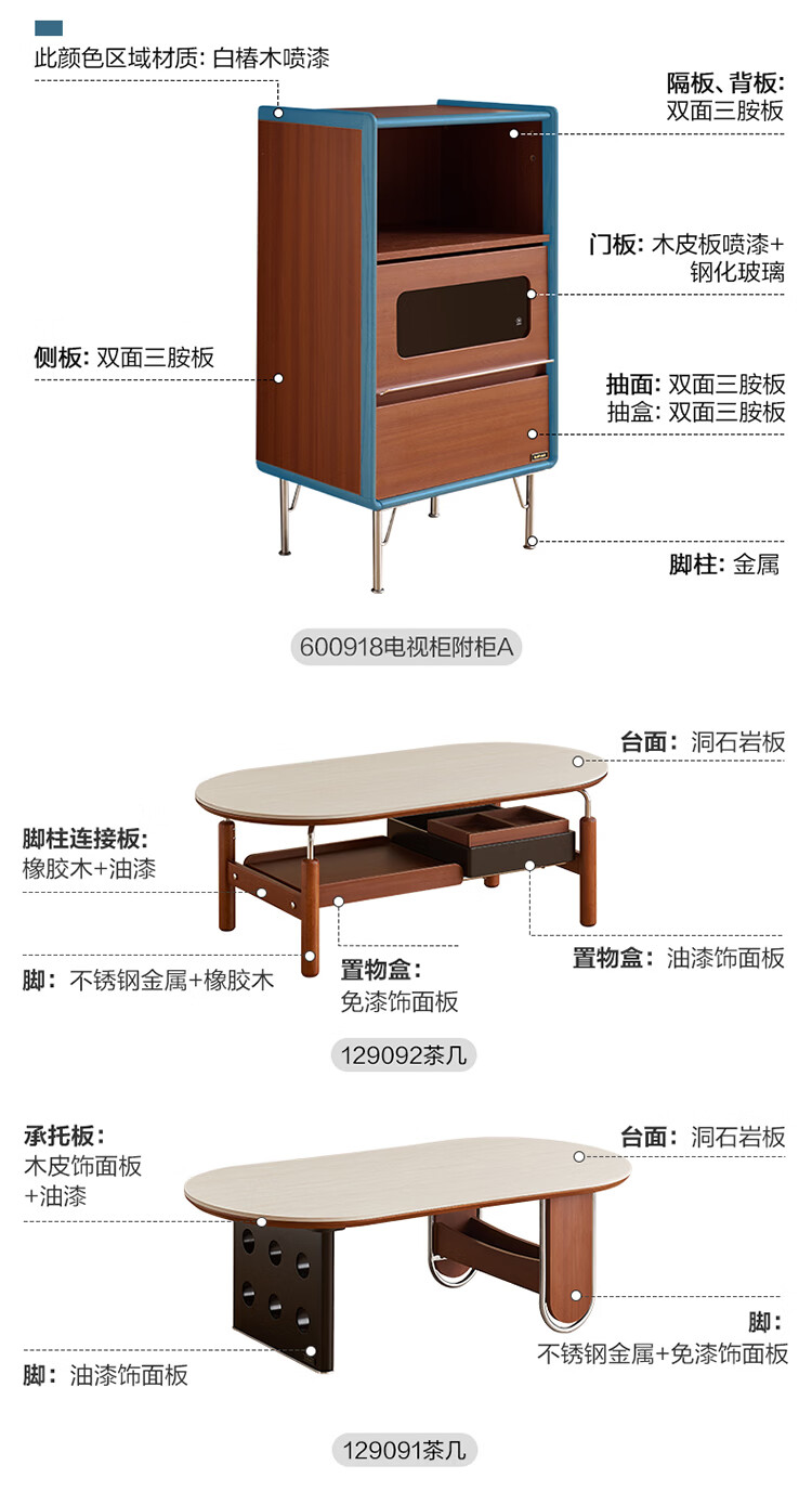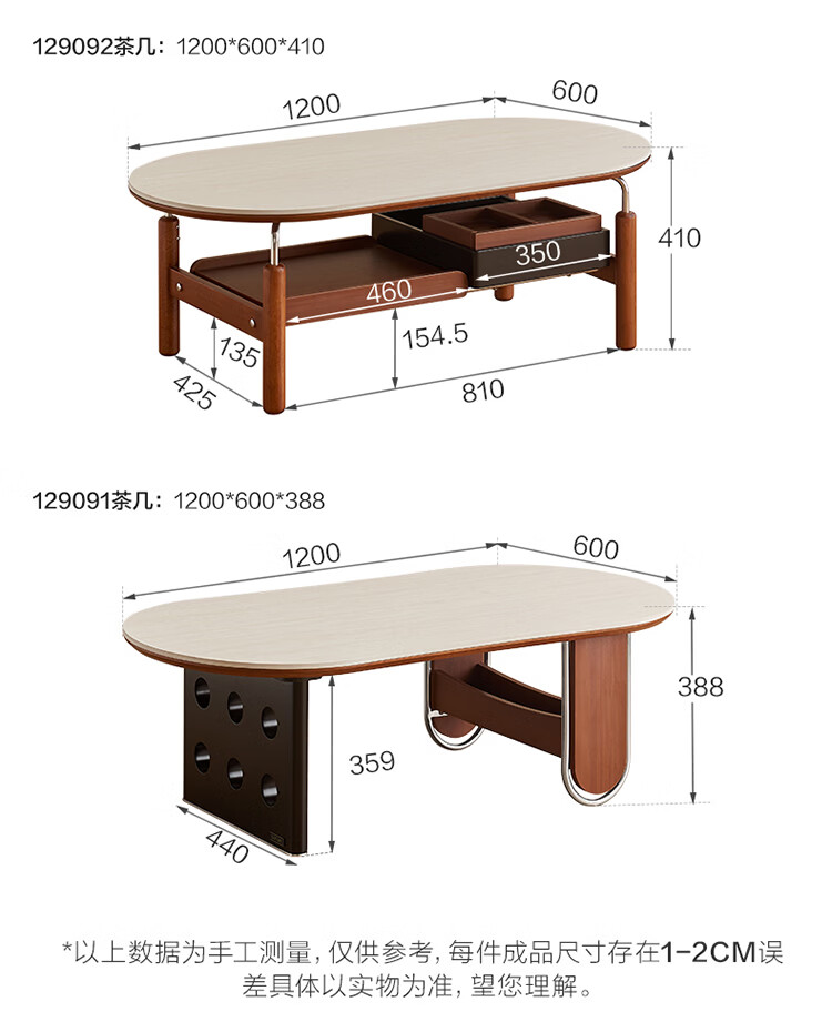 全友家居中古风电视机柜客厅轻奢高级感2026新款家用收纳储物柜子家具 【洞石岩板 | 双层储物款】希尔茶几