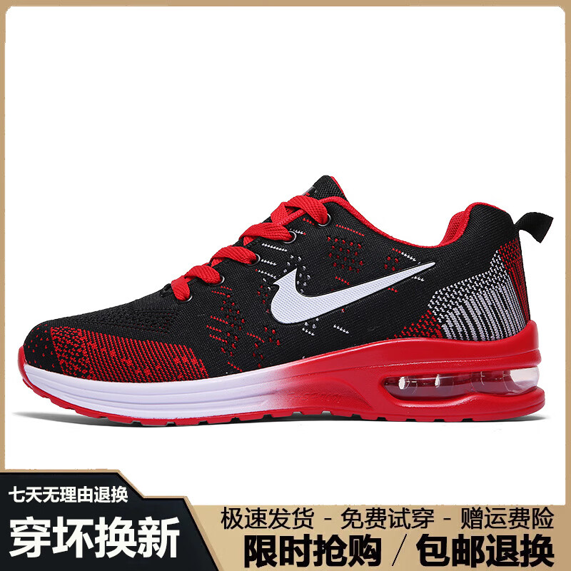 潮流轻奢男鞋春夏季新款运动鞋男软底休闲跑步鞋男网面透气鞋子男 NK666黑白【皮面】 41