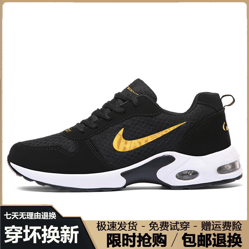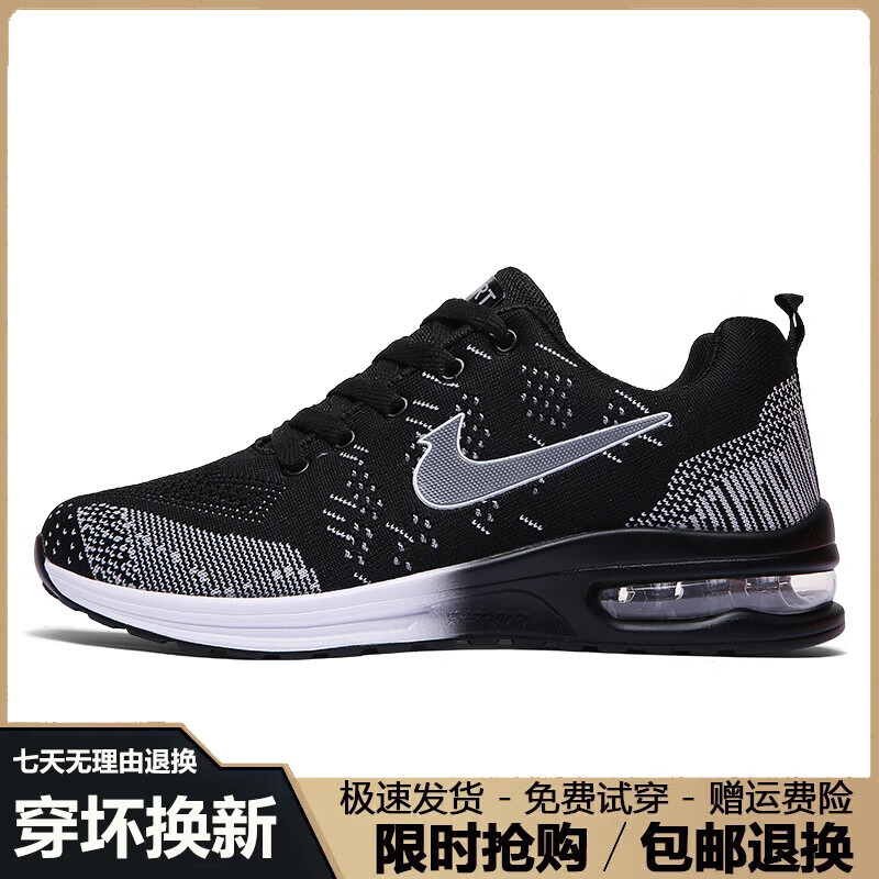 轻奢男鞋2026春季新款透气软底户外运动鞋男士休闲百搭跑步鞋子男 NK8866黑白【网面款】 42