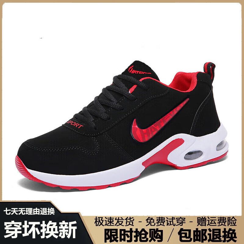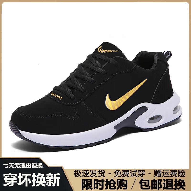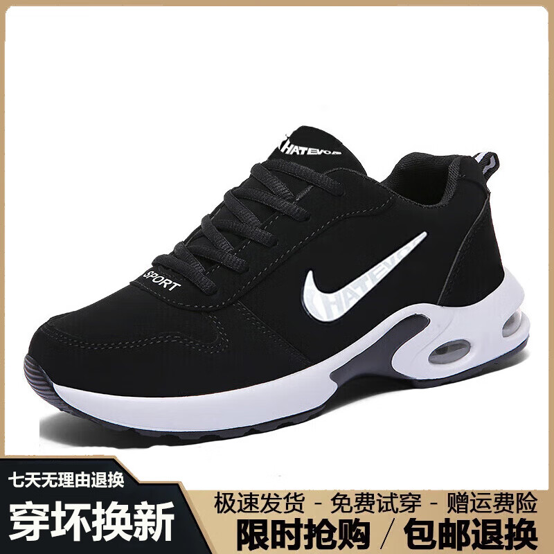 轻奢男鞋2026春季新款户外运动鞋男网面跑步鞋男士休闲百搭鞋子男 NK666黑白【皮面款】 41
