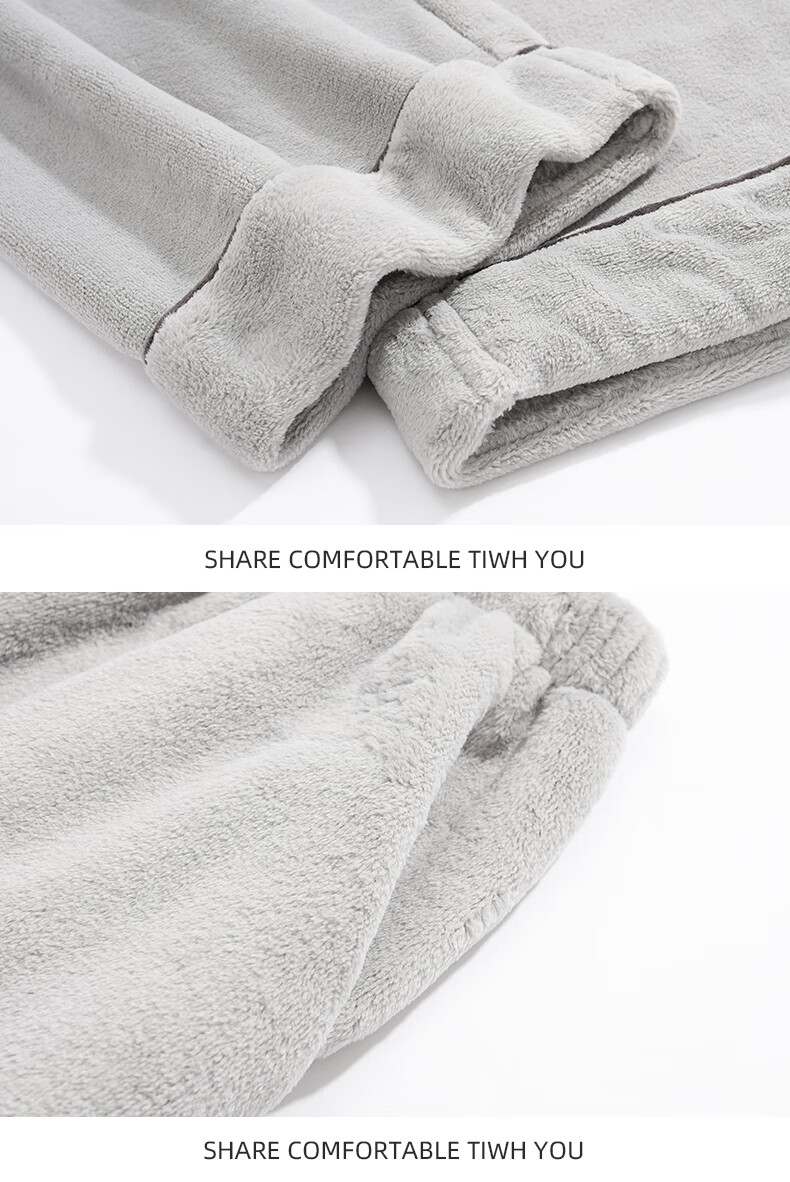 允织法兰绒睡裤男冬季加厚加绒宽松大码冬天家居珊瑚绒裤子单件可外穿 3902-星霜灰 L (165) :建议110-140斤穿着