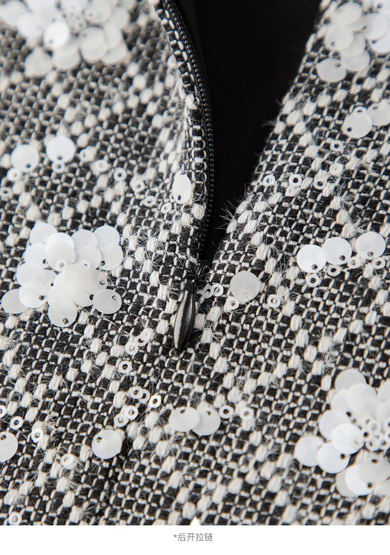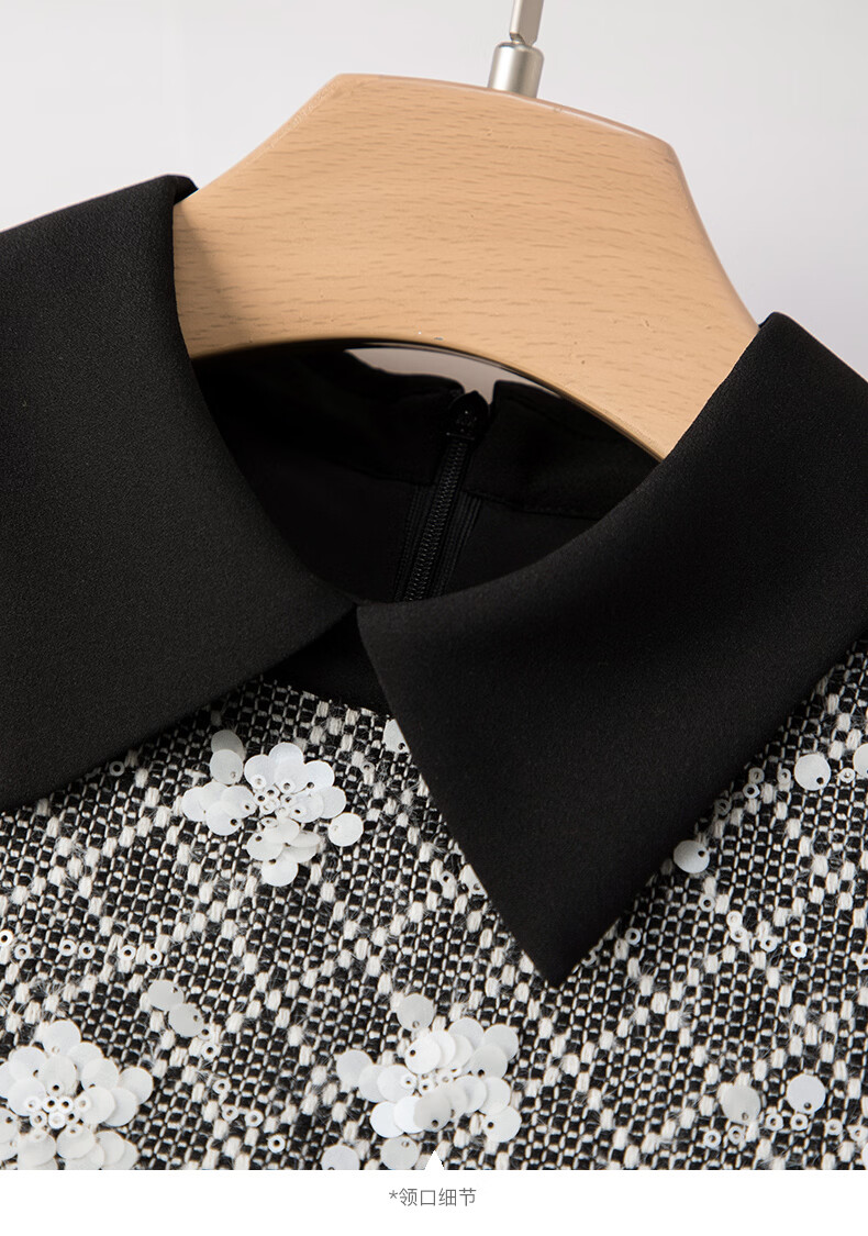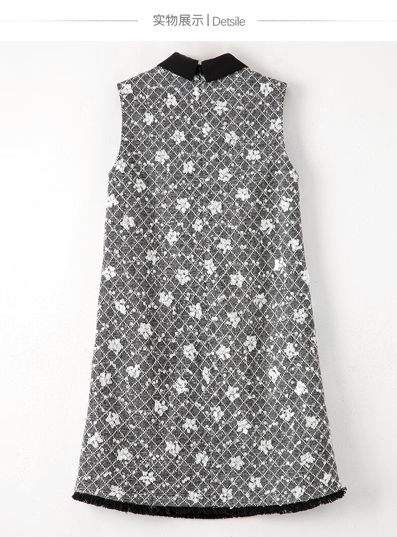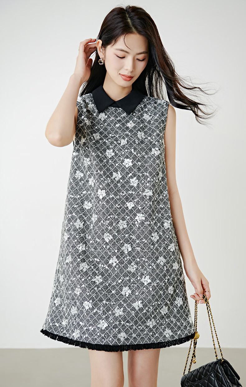 晚白【新品】2026年春款时尚格纹亮片翻领裙子挺括显瘦优雅无袖连衣裙 花色 S