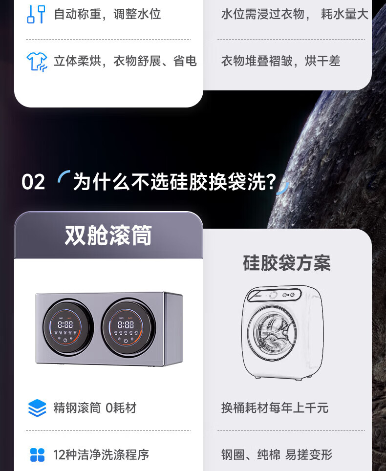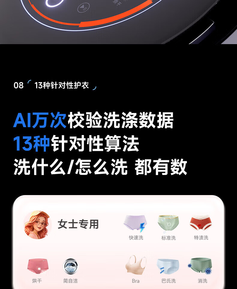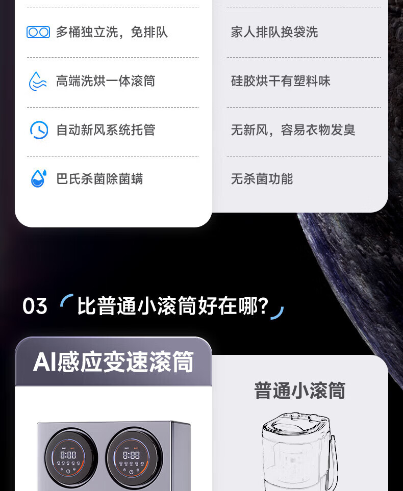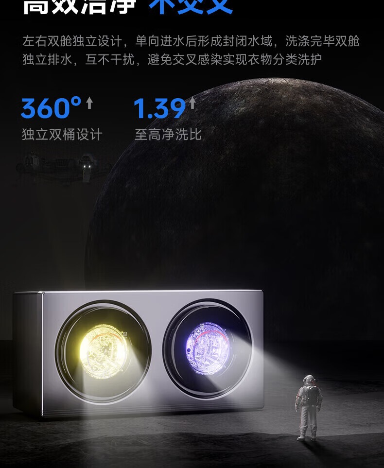 KANGYAN内衣洗衣机 壁挂双舱 洗烘一体 巴氏除菌 洗袜子专用迷你款小型洗衣机 【星空灰·家庭装】4舱分区净洗·巴氏除菌 壁挂悬空【免费上门安装】