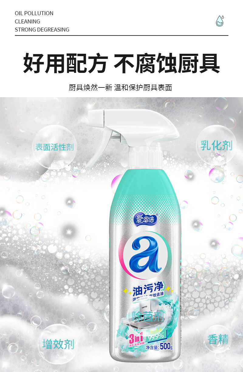 爱恩倍油污净500g*2瓶厨房油烟机油污清洁剂去污垢除重油污泡沫型家用