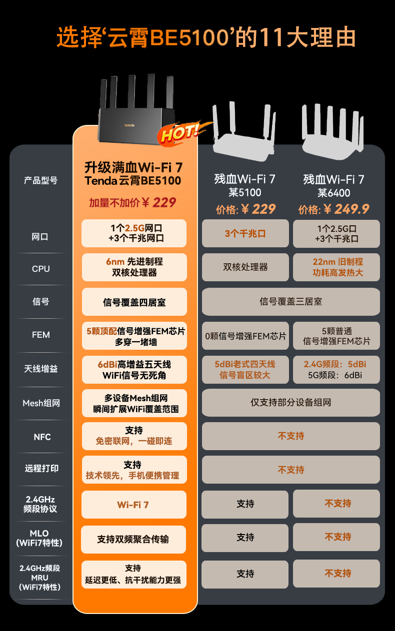 Tenda腾达路由器WiFi7【云霄BE5100】千兆穿墙王信号放大器增强无线超强2.5g网口家用电竞立式BE6L Pro