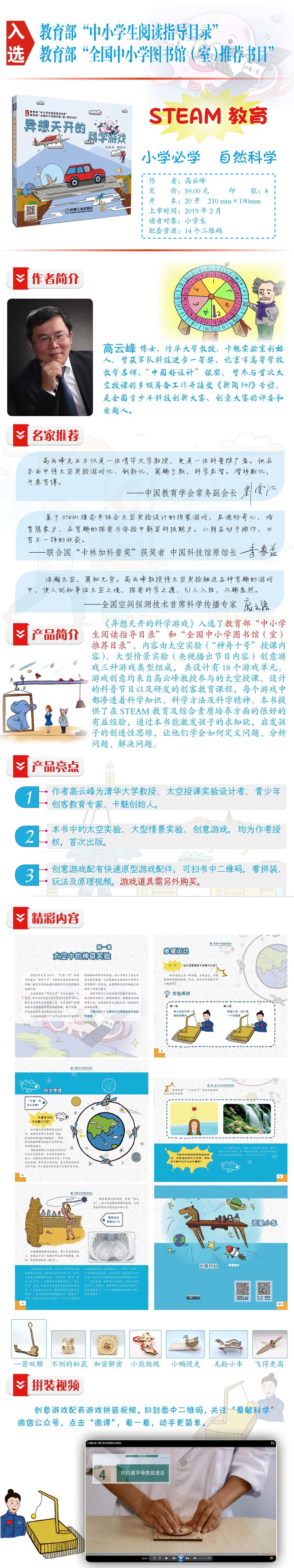 【升级版拼装游戏+视频】异想天开的科学游戏 小学生三四年级课外阅读书目 少儿科普童书STEAM教育小学必学自然科学高云峰 机械工业出版社 互动拼装游戏实验科学启蒙科技创新