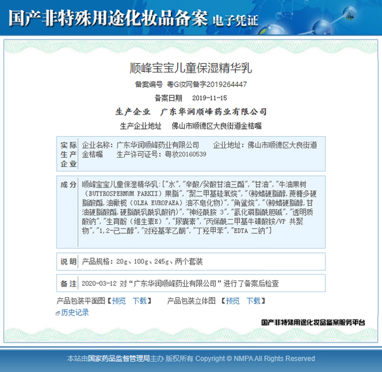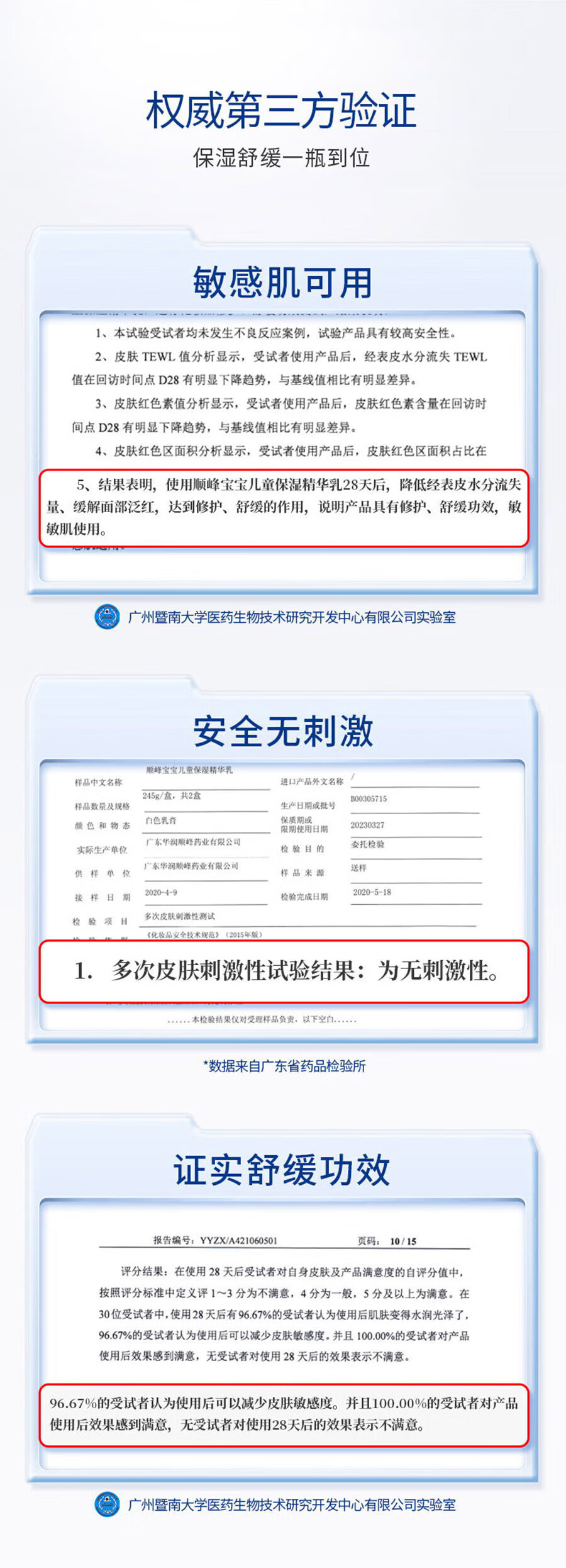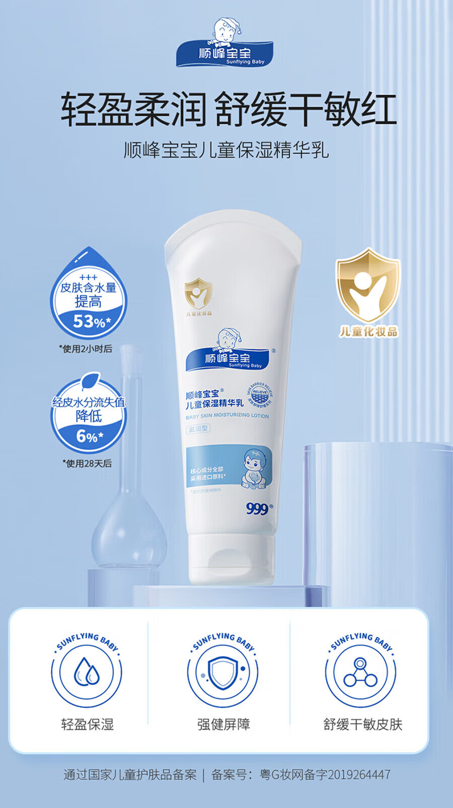 顺峰宝宝精华乳100g保湿精华乳婴幼儿童滋润温和敏感肌宝宝青少年护肤乳
