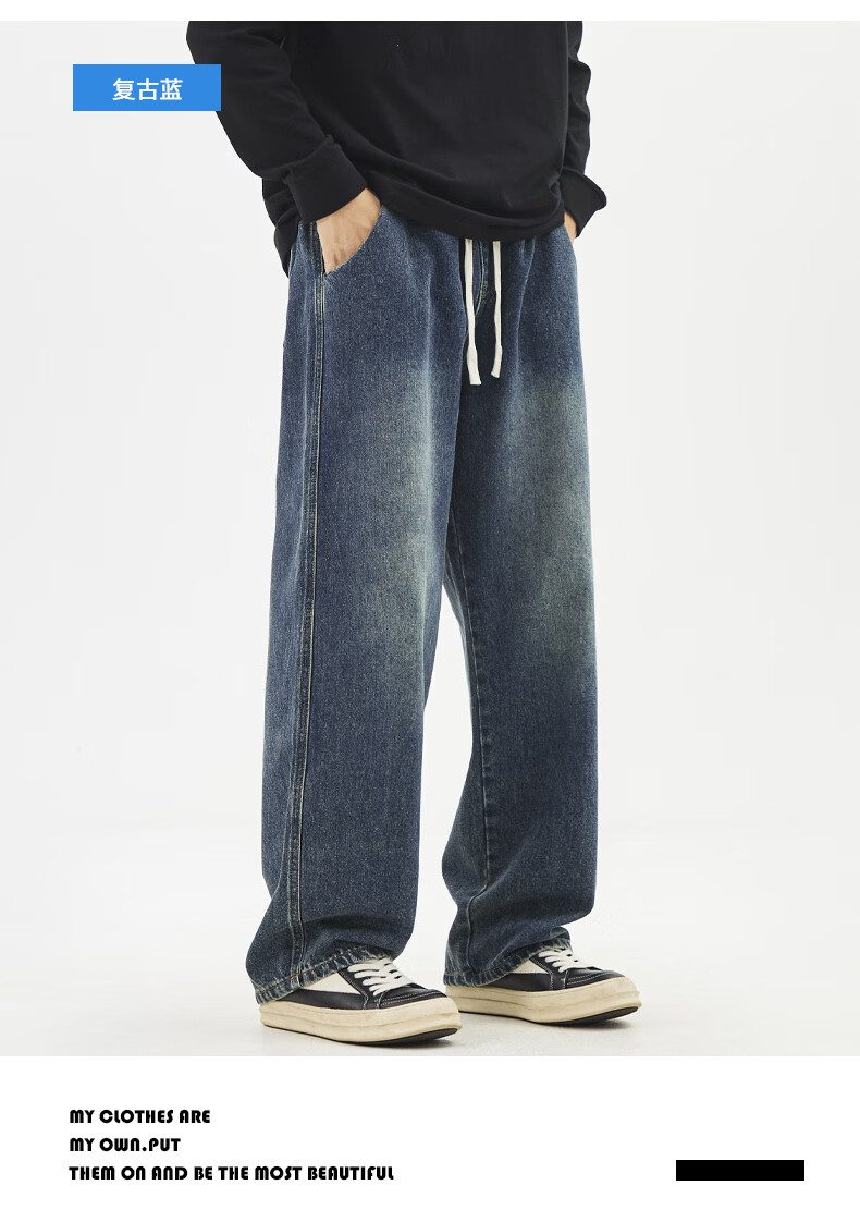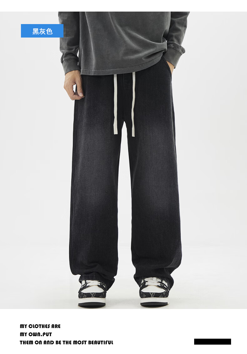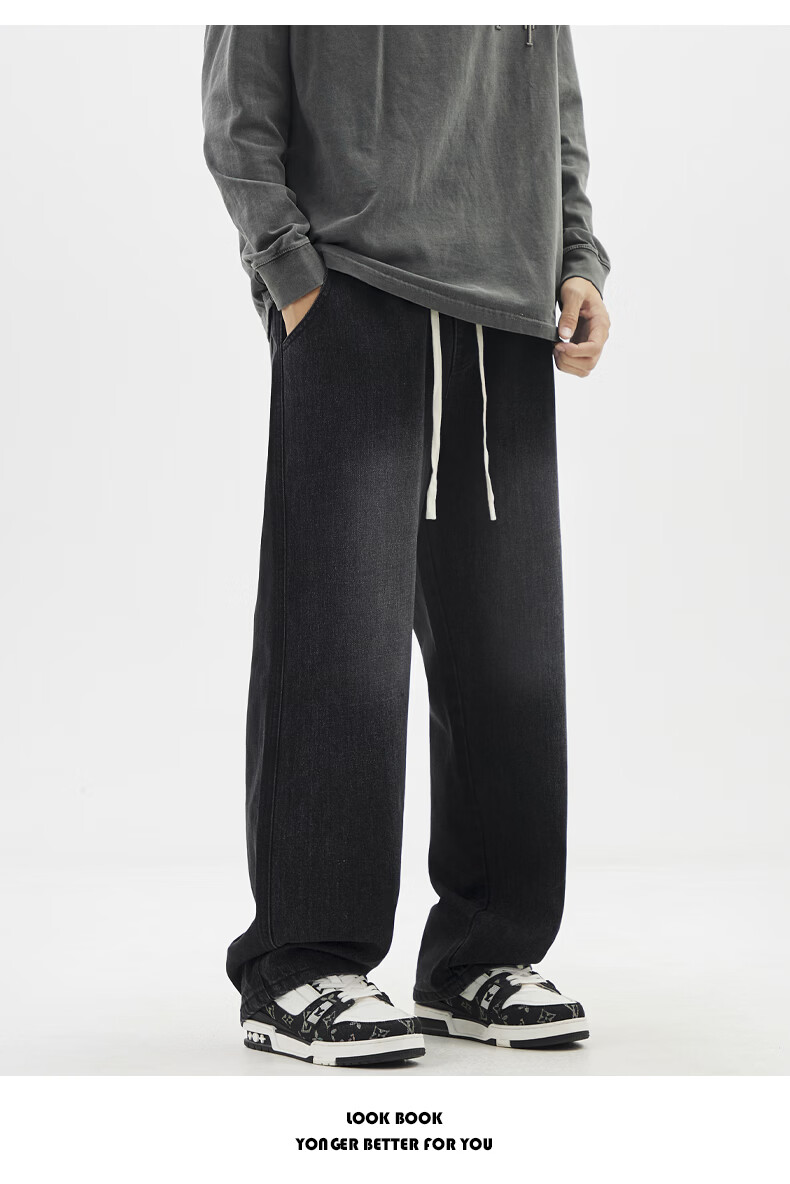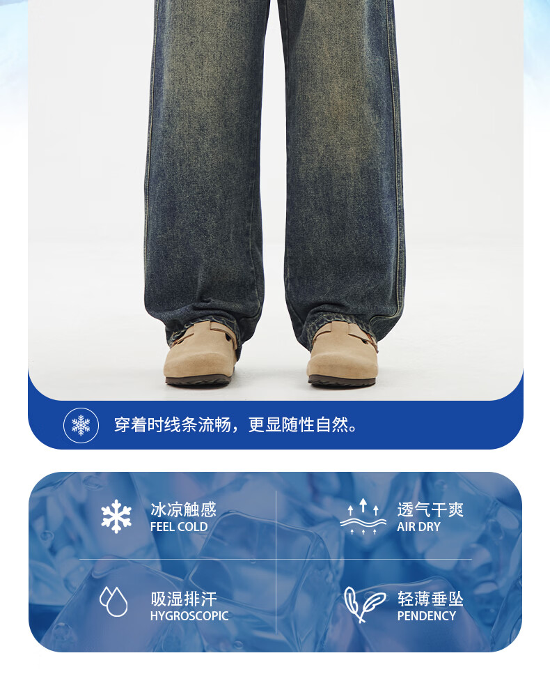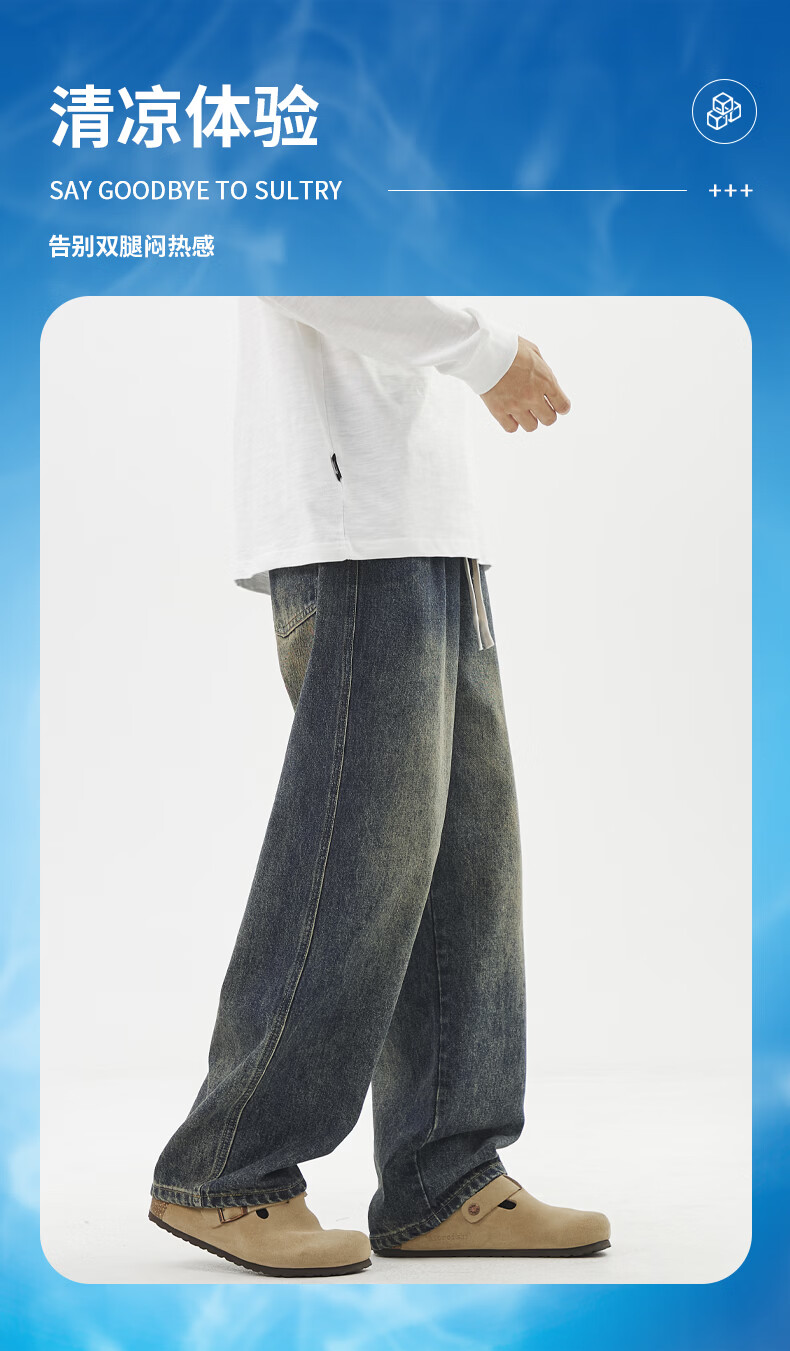 真维斯夏季薄款牛仔裤男生直筒2026新款青少年休闲冰丝长裤子男士 浅蓝色 S