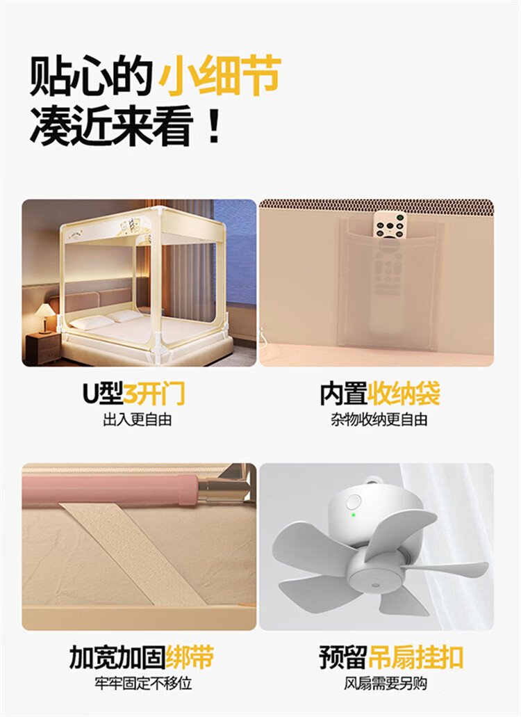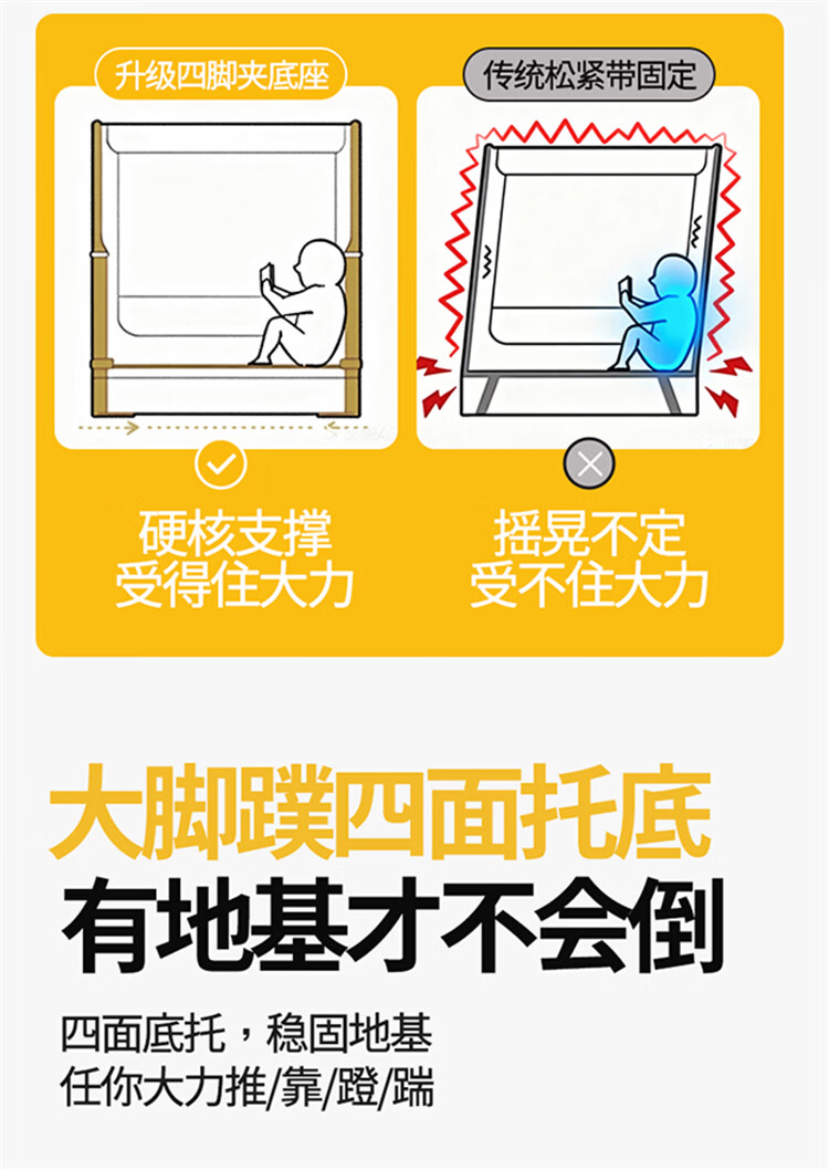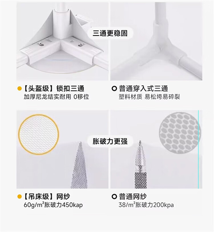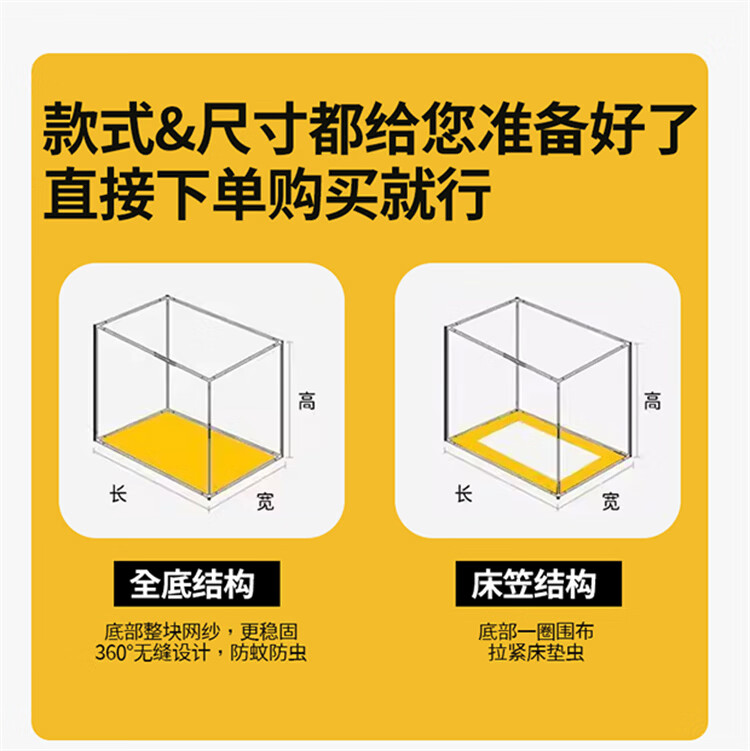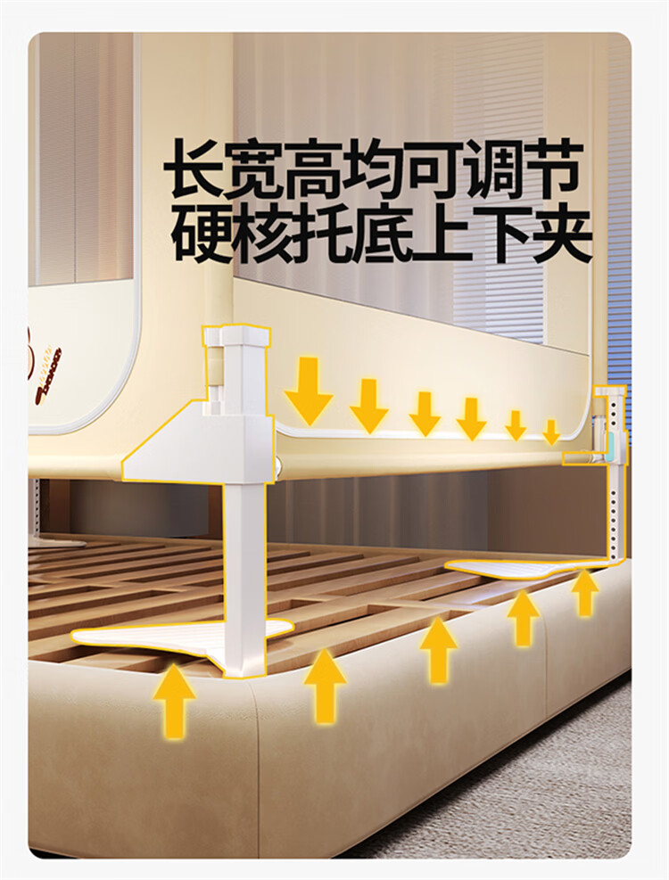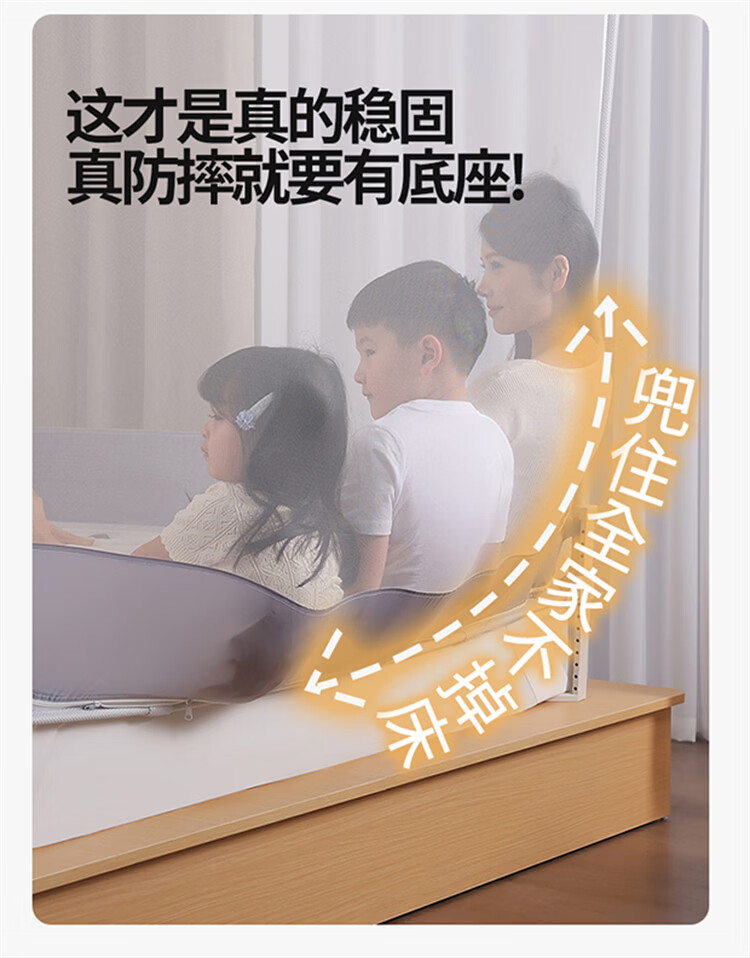 无印良品A类婴儿防摔蚊帐1.5米x2米家用一体式免安装升降蚊帐架卧室床围栏 【含遮光顶】趴趴熊-围栏级防摔 150cm*200cm*170cm -大力士压脚支架