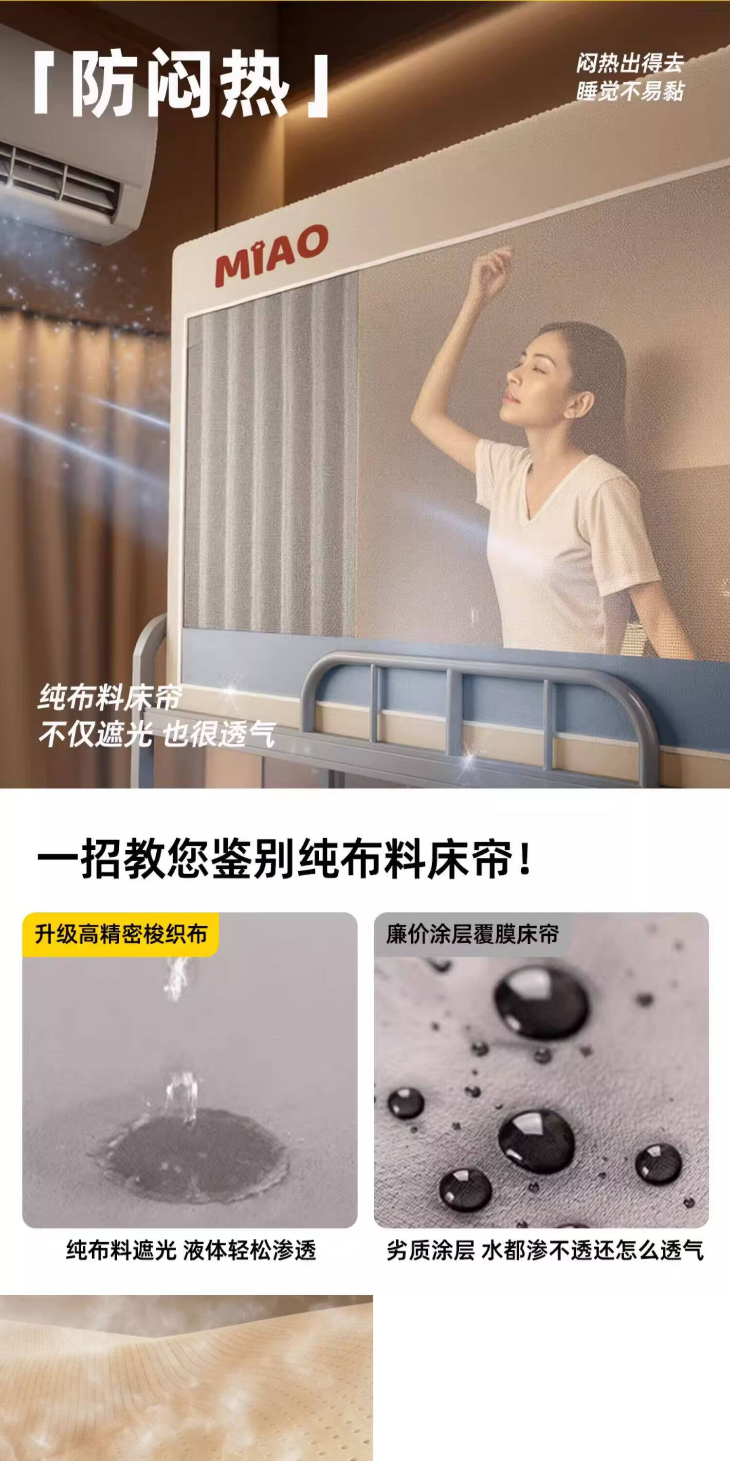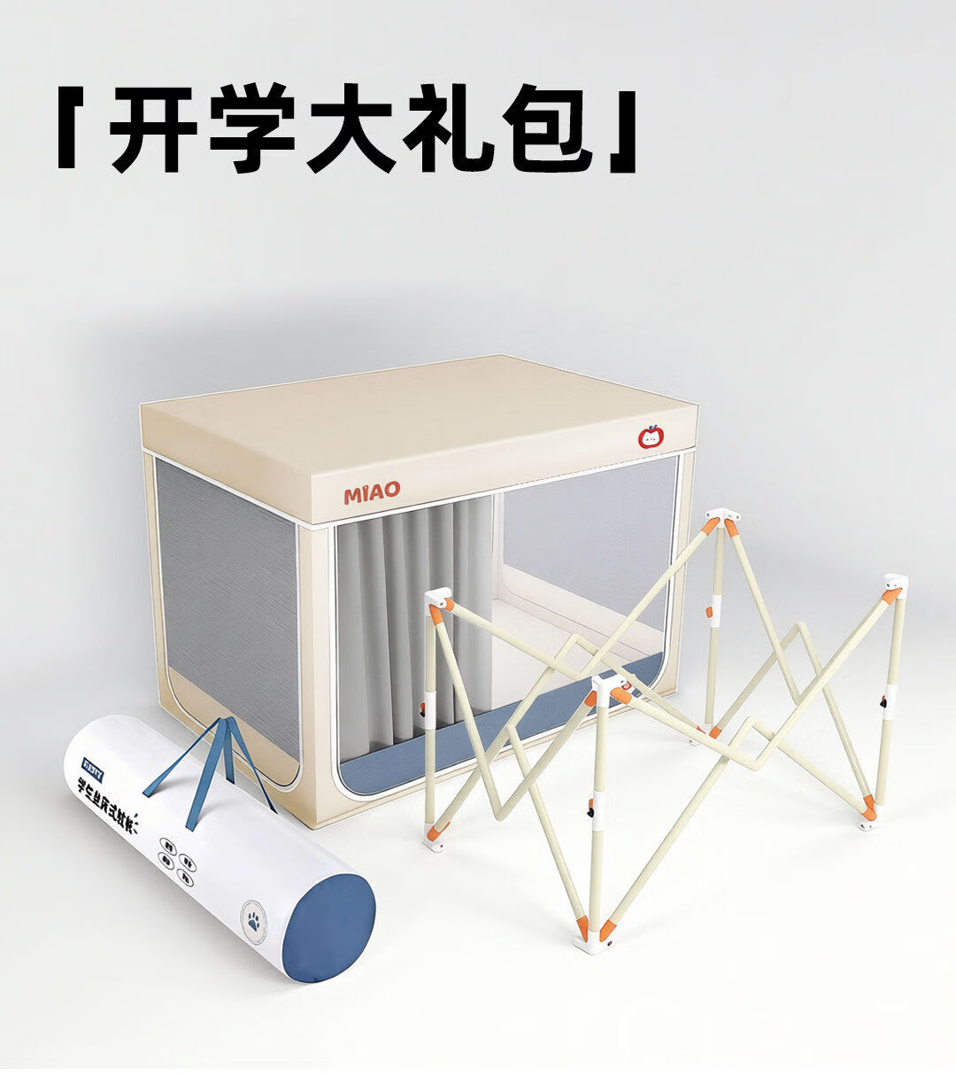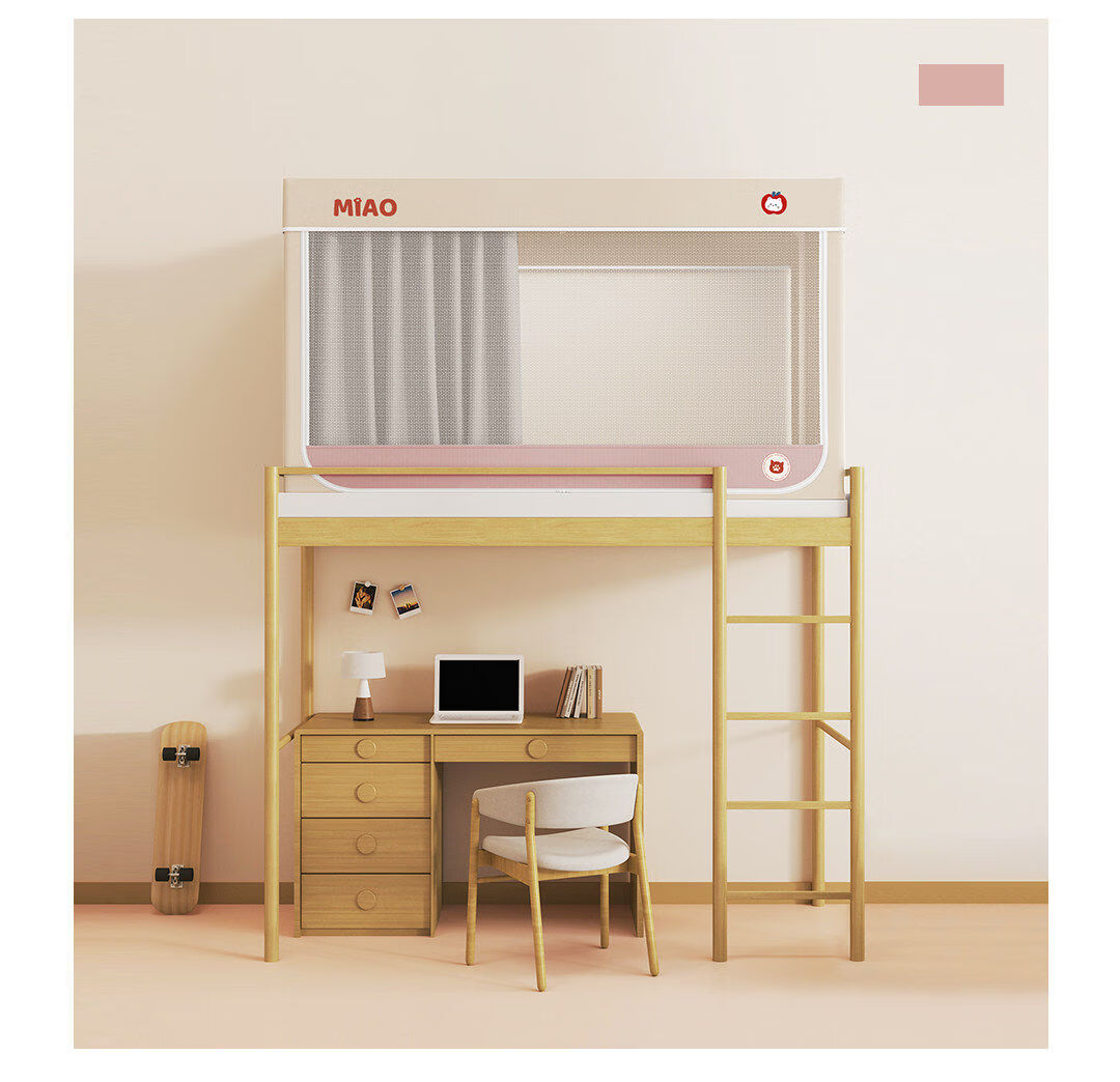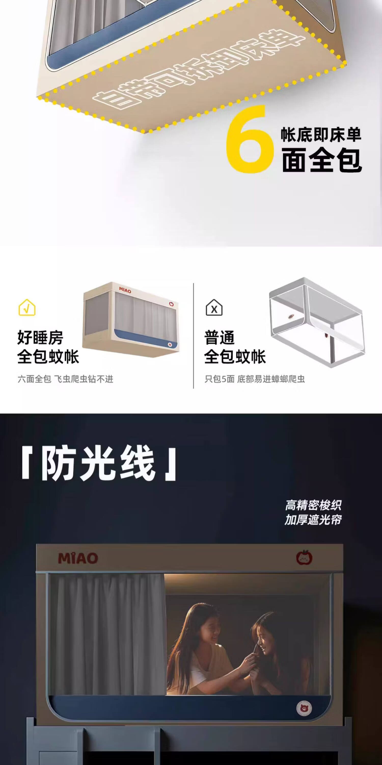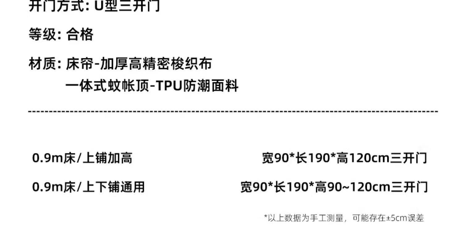 高睿学生床帘蚊帐一体式强遮光宿舍上下铺专用床遮光布下桌遮挡帘梭织 四面遮光-猫爪灰-回底-Pro锁扣支架 【宽90*长190*高120】上铺专用/ 三开门