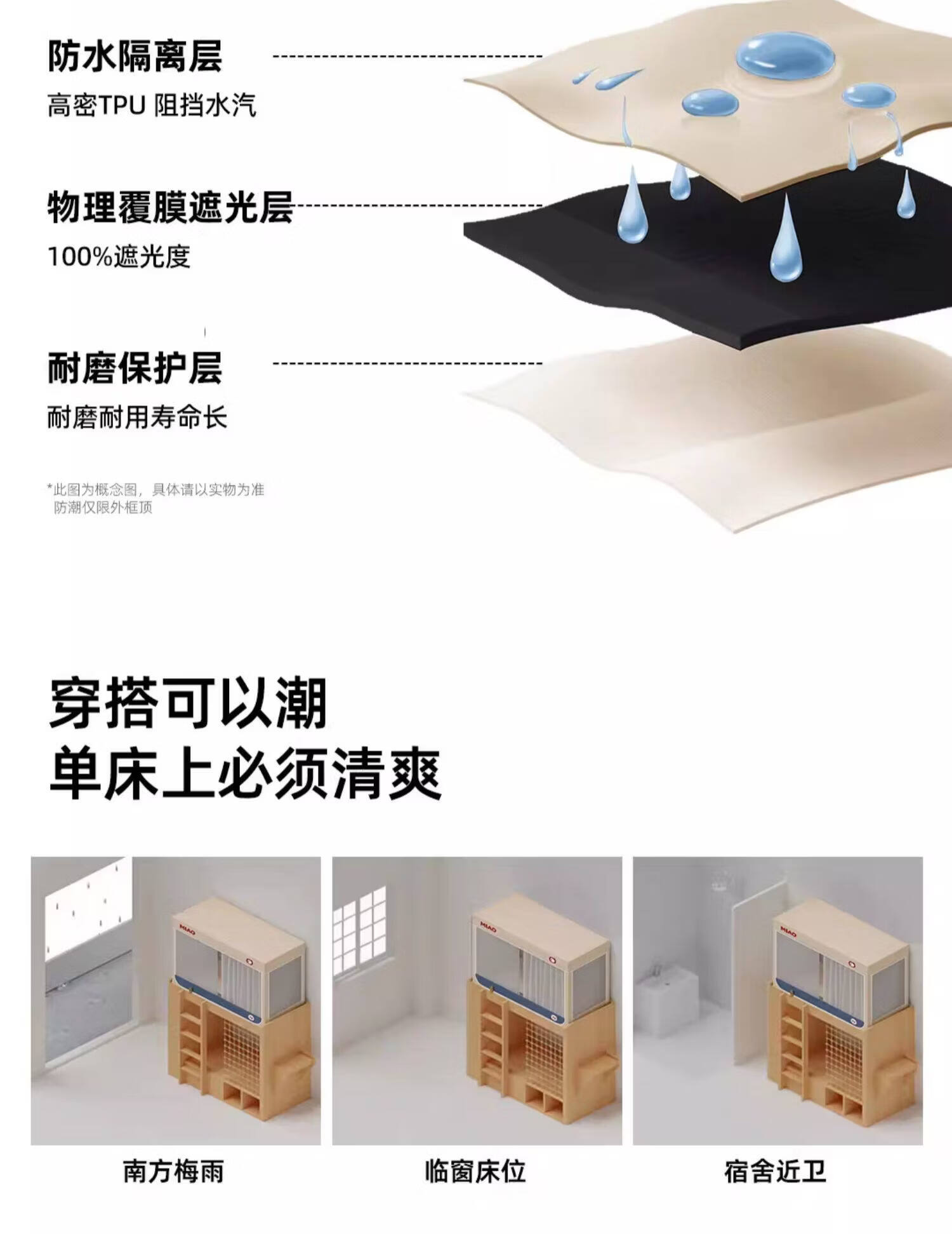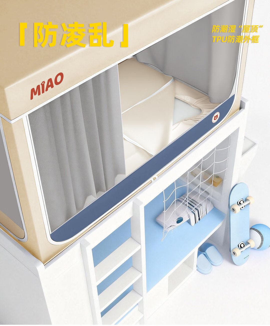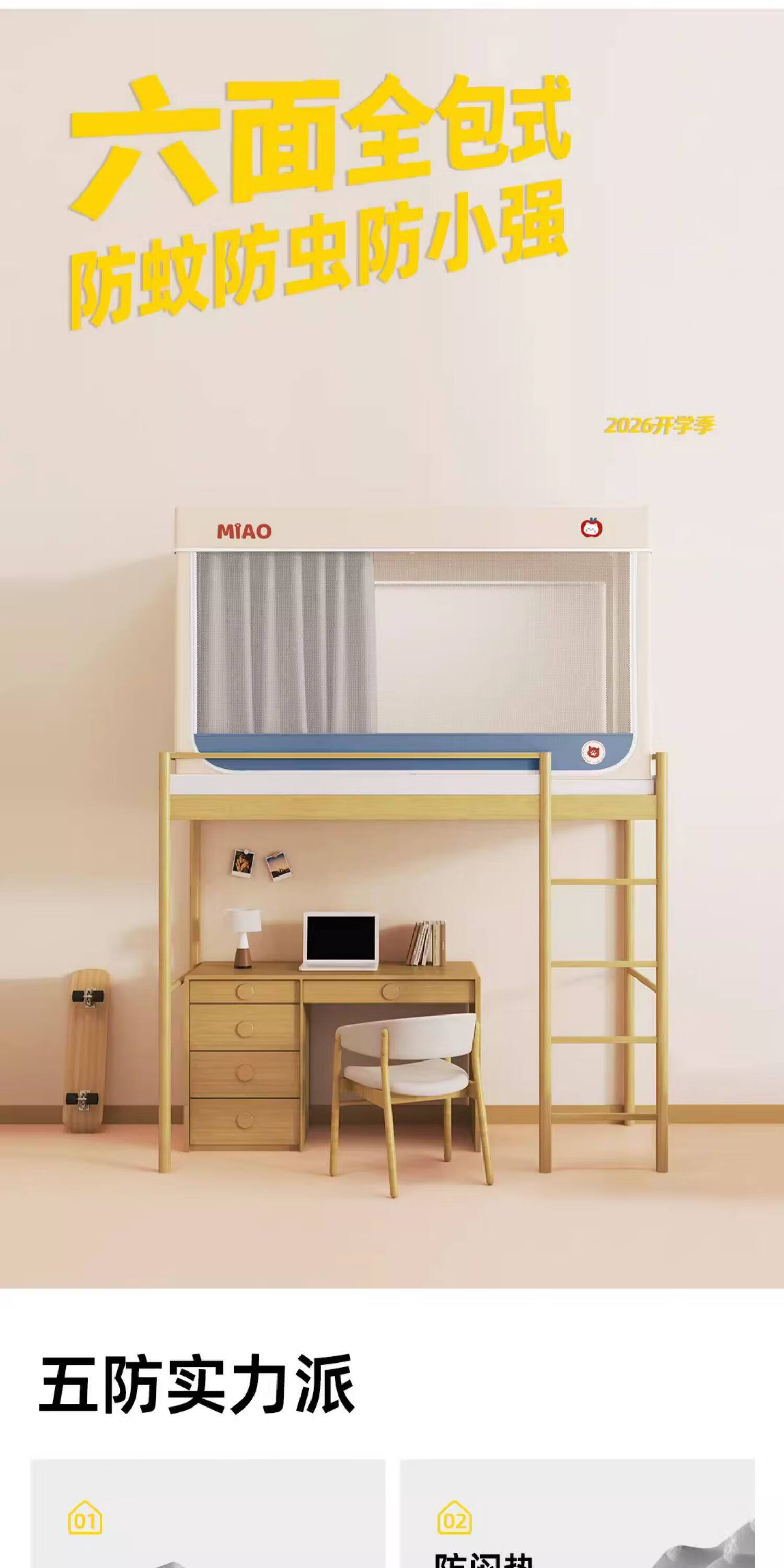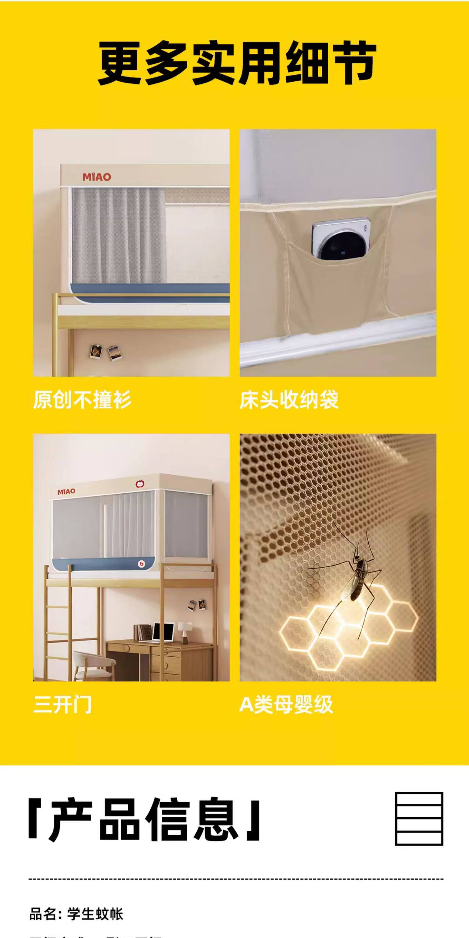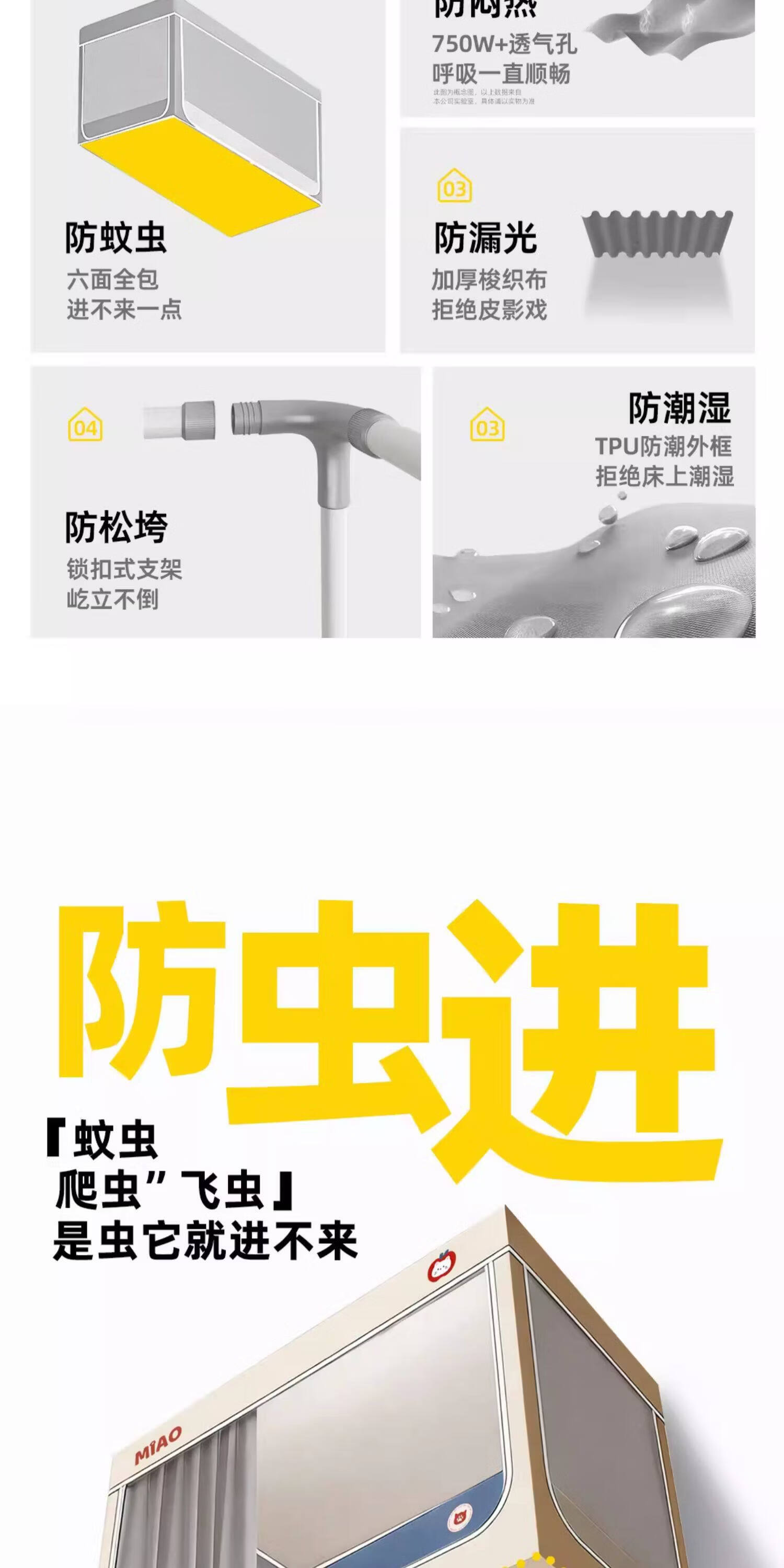 高睿学生床帘蚊帐一体式强遮光宿舍上下铺专用床遮光布下桌遮挡帘梭织 四面遮光-猫爪灰-回底-Pro锁扣支架 【宽90*长190*高120】上铺专用/ 三开门