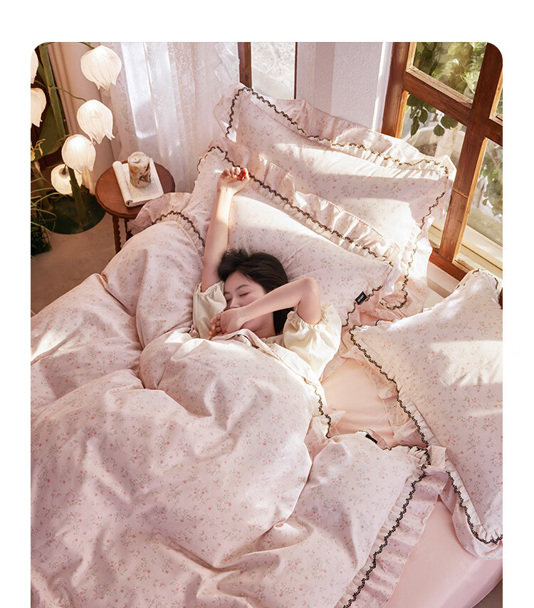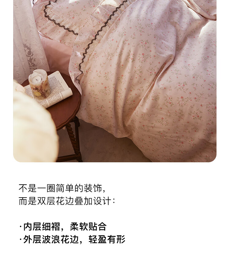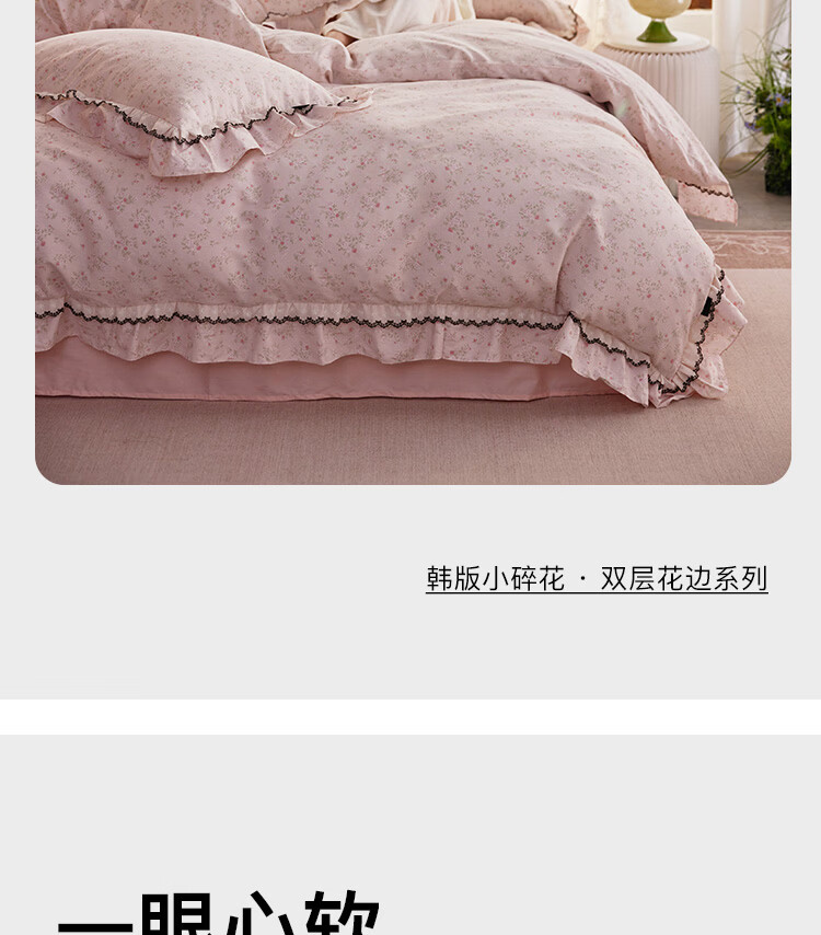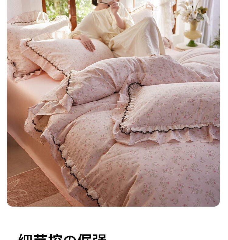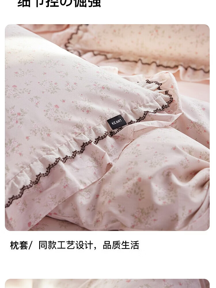 ROLAND LIVE春夏韩版全棉小碎花四件套双层花边被套公主风床单纯棉三件套 KZ 全棉小碎花套件-花镜小诗粉 1.5米床 床单款 【被套200*230cm】