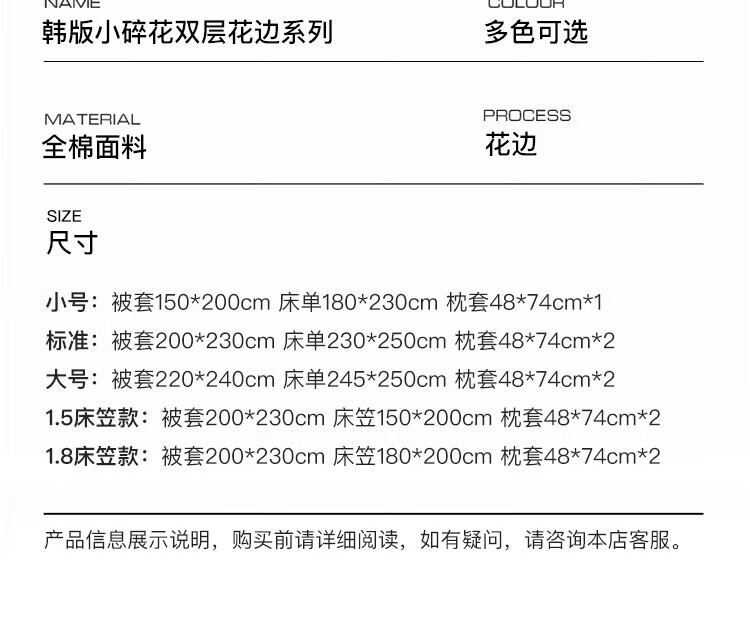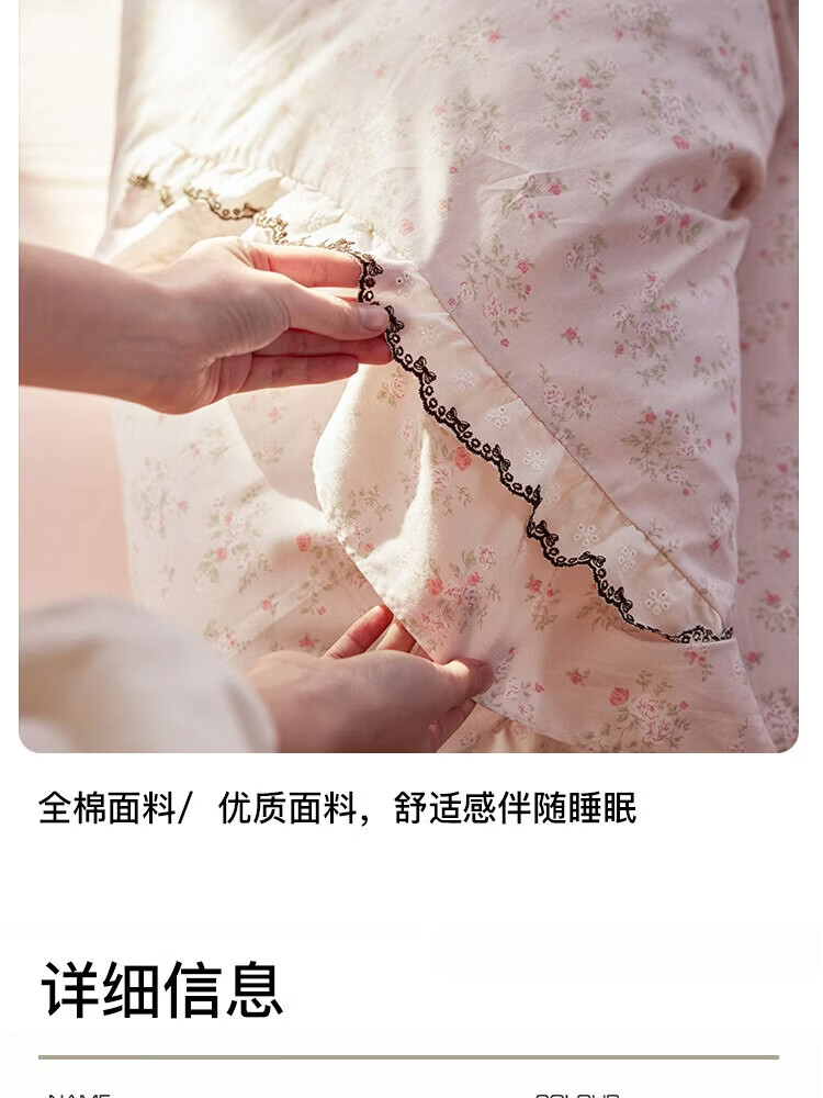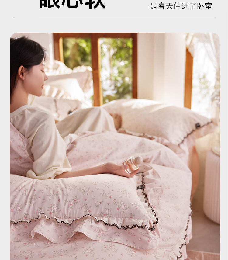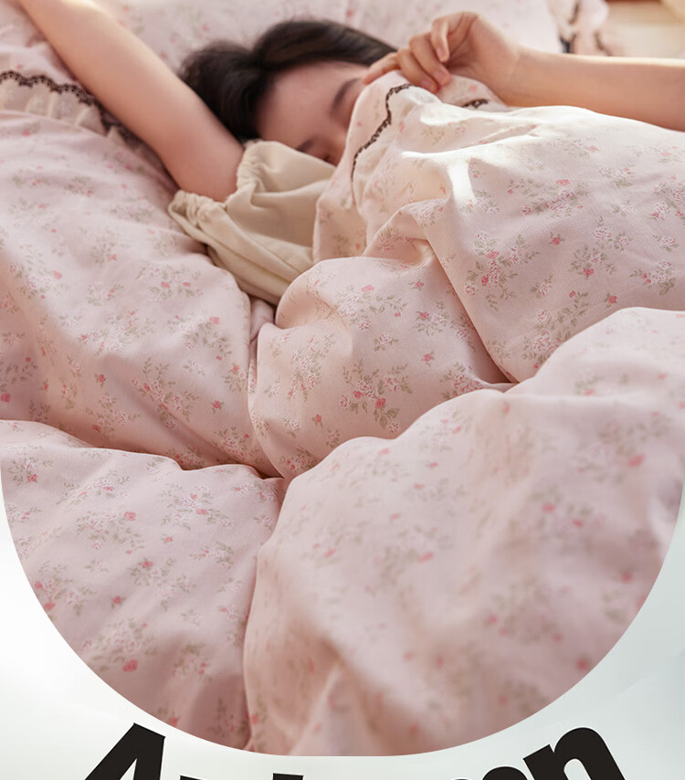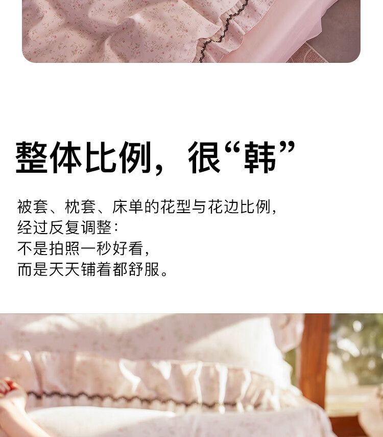 ROLAND LIVE春夏韩版全棉小碎花四件套双层花边被套公主风床单纯棉三件套 KZ 全棉小碎花套件-花镜小诗粉 1.5米床 床单款 【被套200*230cm】