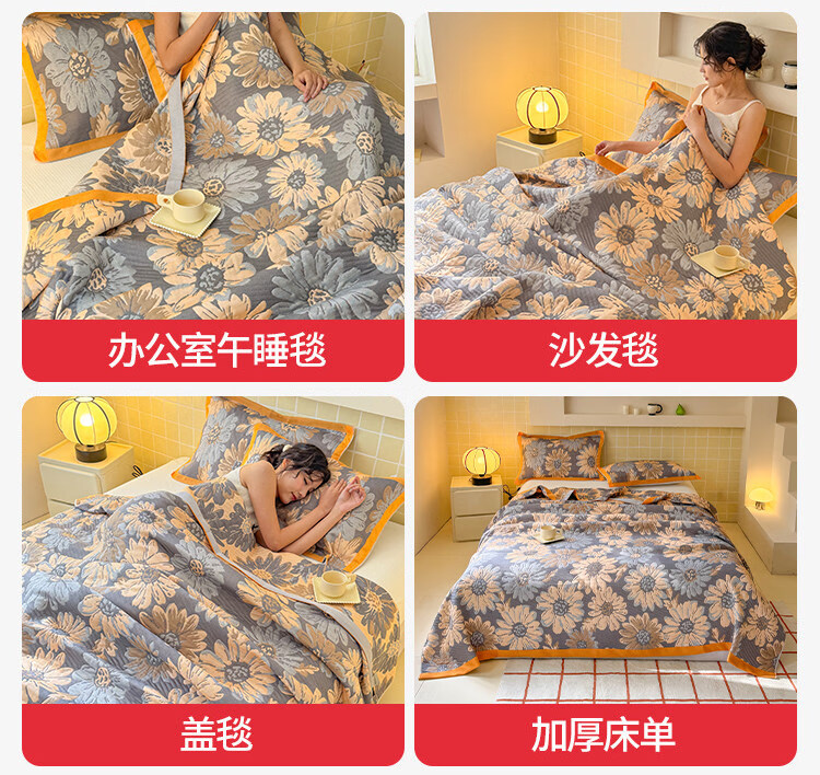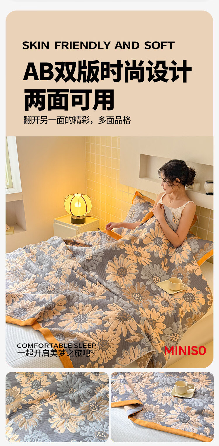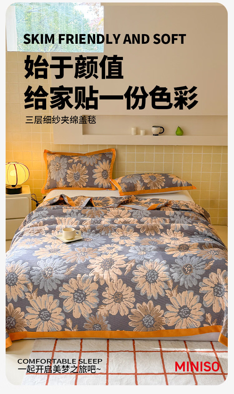 名创优品(MINISO)毯子毛毯被 办公室午睡盖小毯子空调沙发毯加厚航空小毯子 花间令 150*200cm【沙发盖毯四季通用】