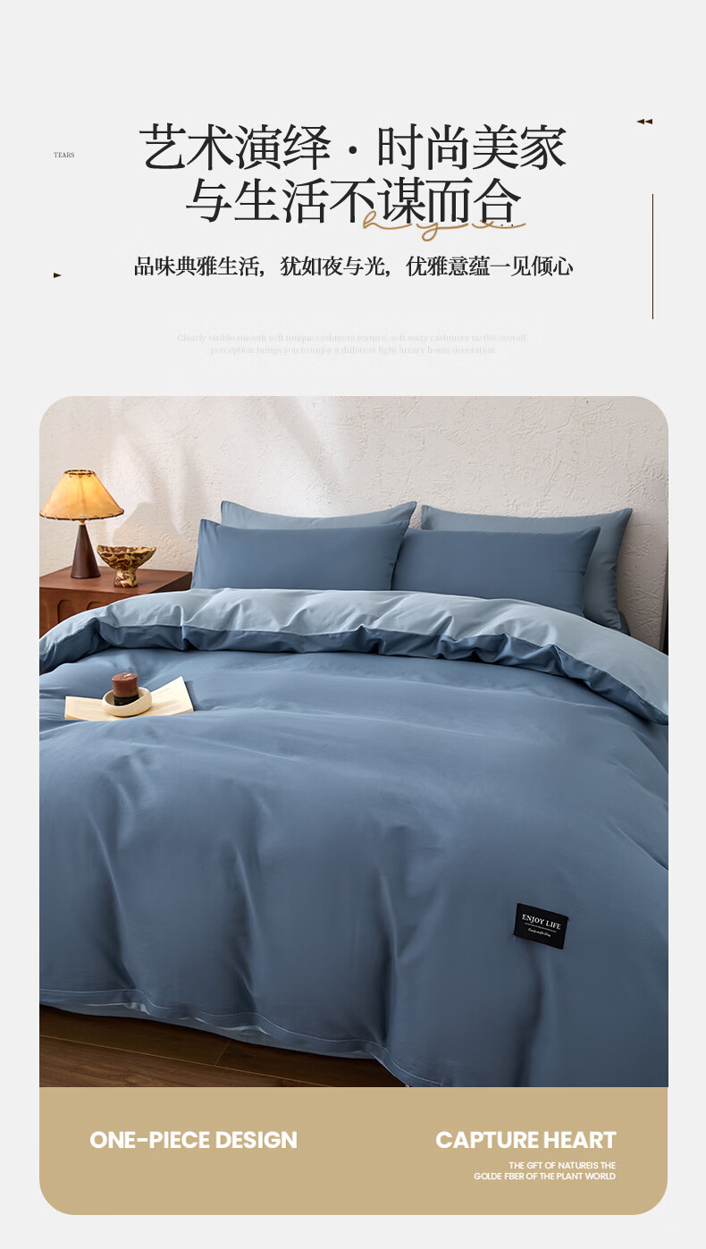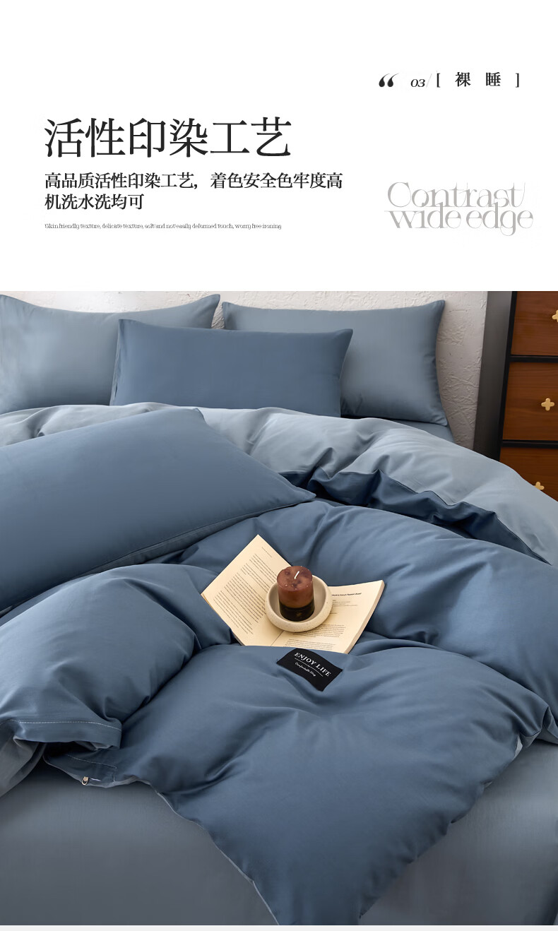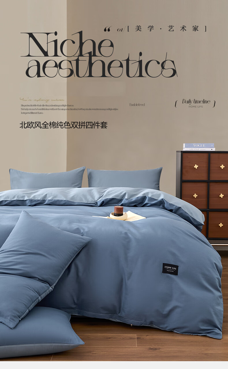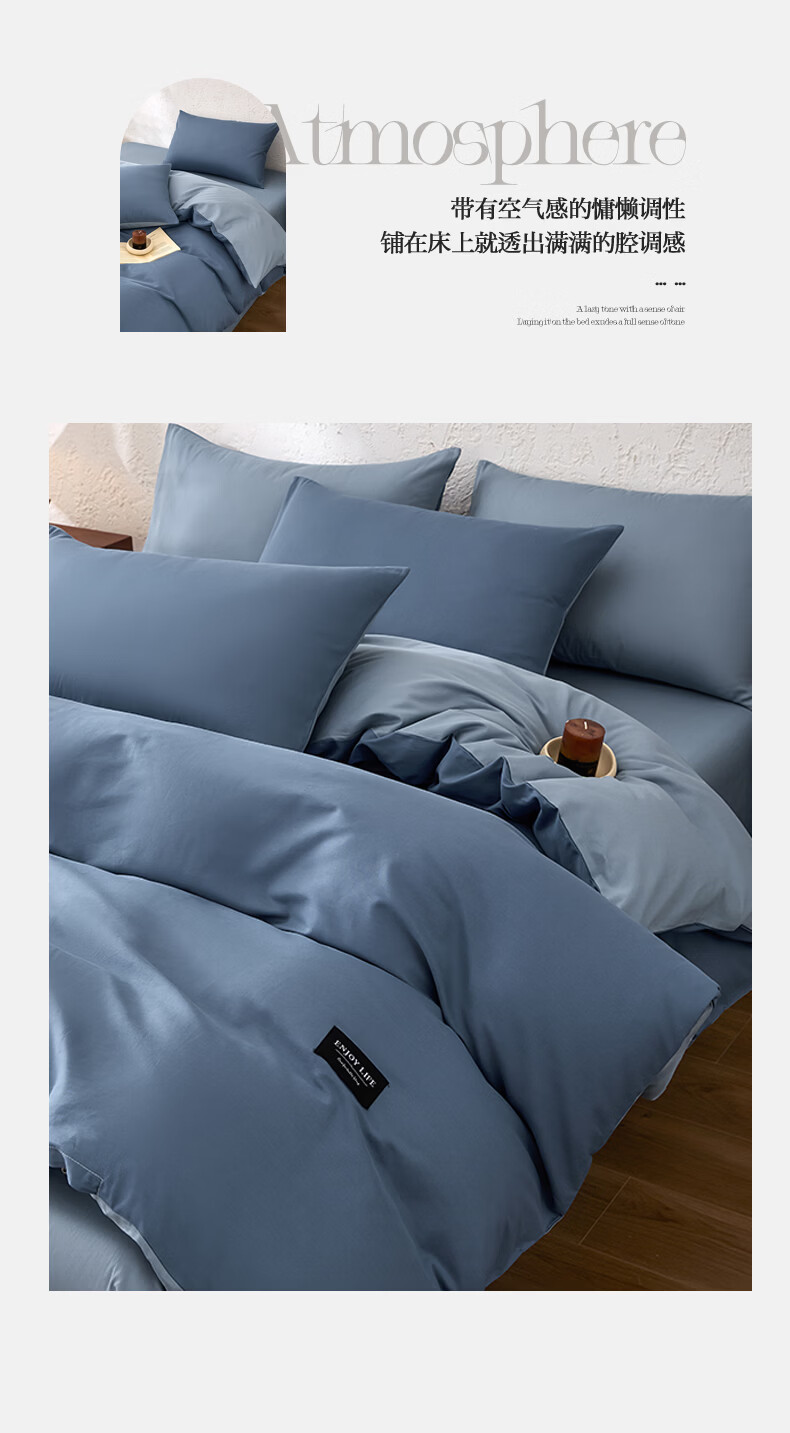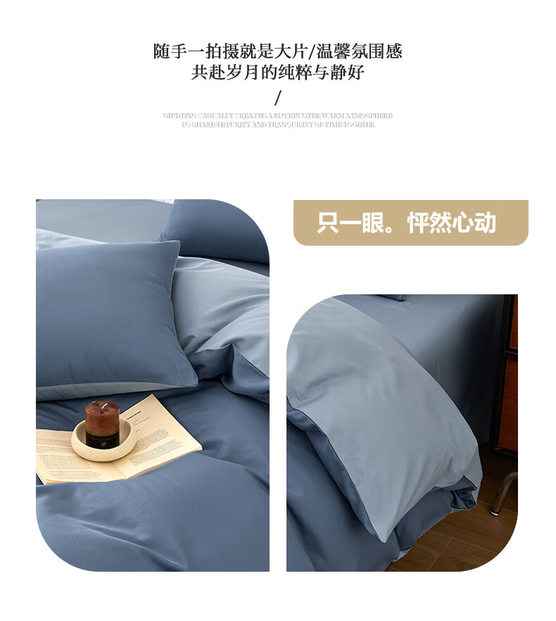 无印良品甄选新疆纯棉单独被套150x200cm全棉单人被罩200x230cm单件四件套 宾利蓝+海青蓝 【亲肤透气 细腻柔软】 180cm*220cm 单被套
