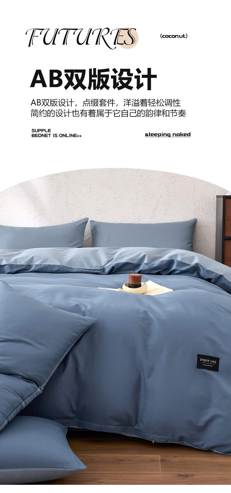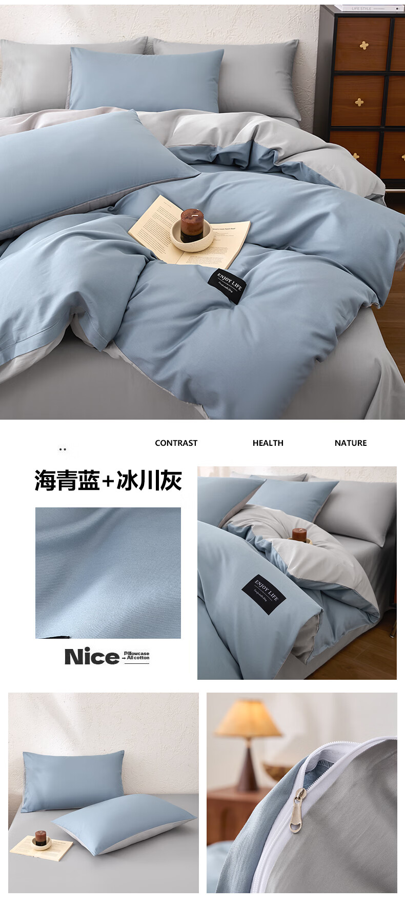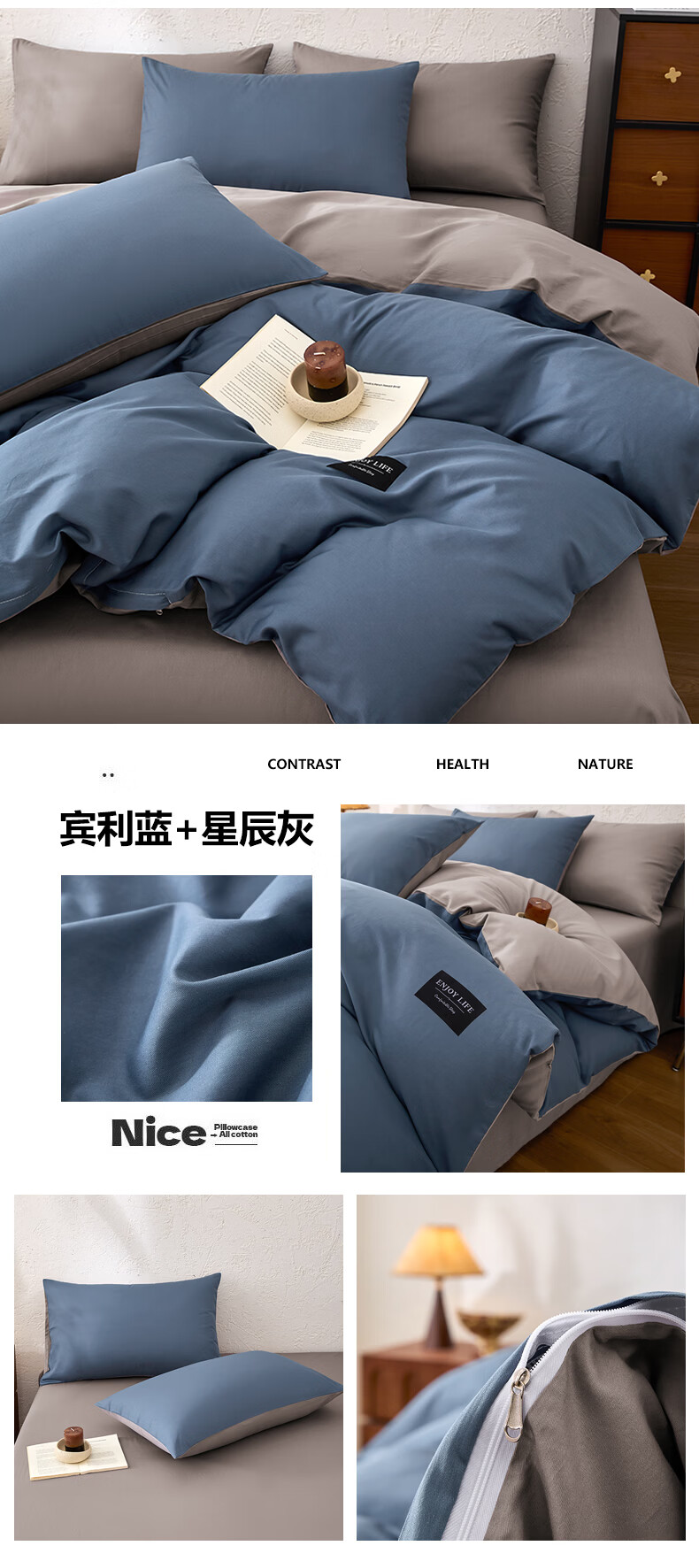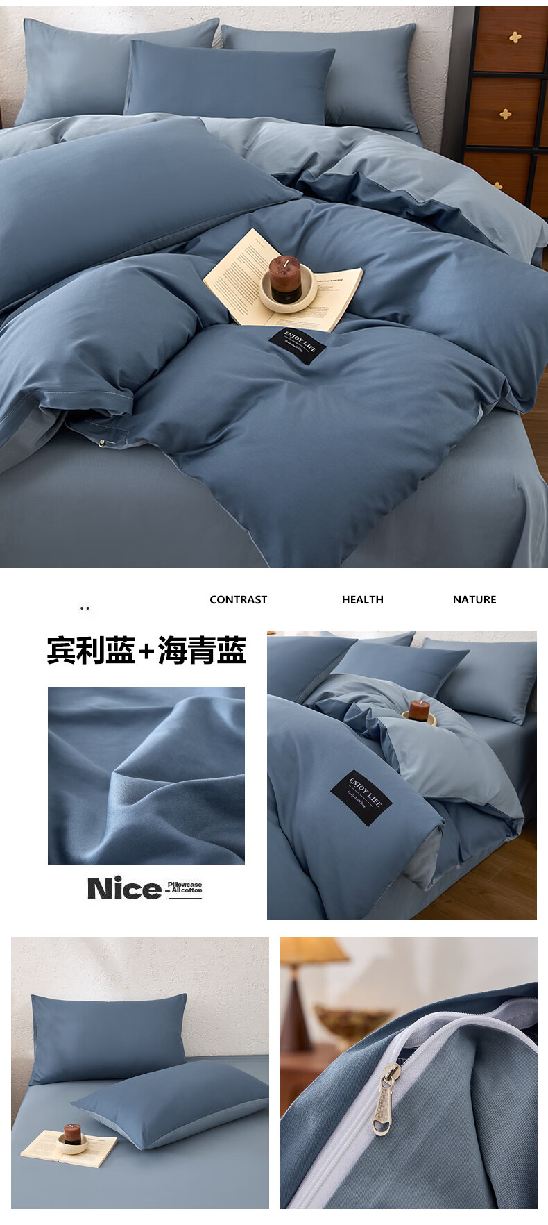 无印良品甄选新疆纯棉单独被套150x200cm全棉单人被罩200x230cm单件四件套 宾利蓝+海青蓝 【亲肤透气 细腻柔软】 180cm*220cm 单被套