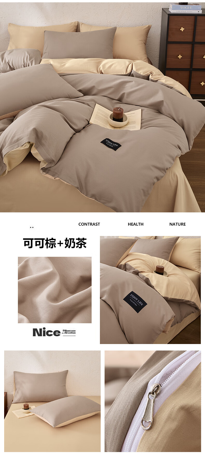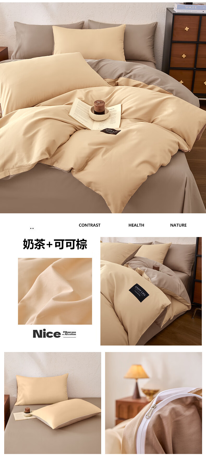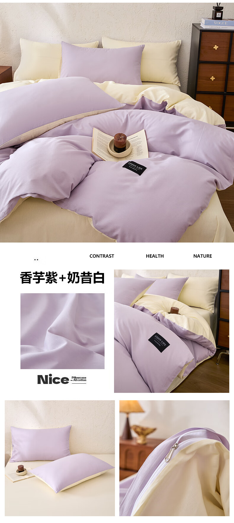 LOVO罗莱家纺100%新疆纯棉三/四件套全棉超柔床上用品单双人床单被套 【极简】超柔新疆全棉-布列塔尼 1.8米 床笠款 -被套220*240cm