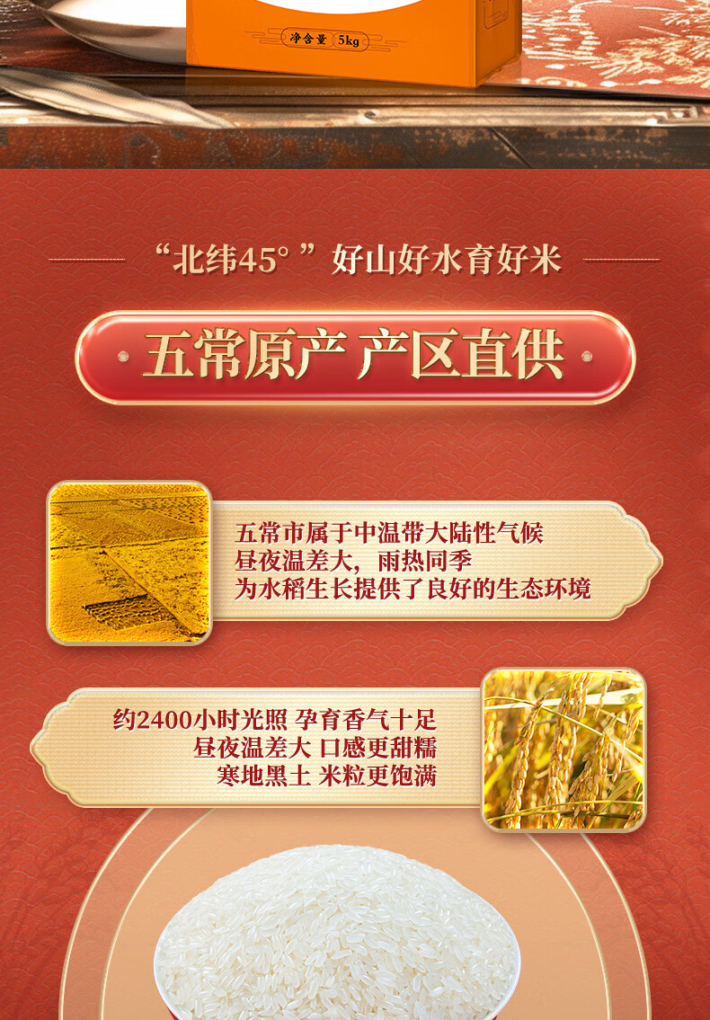 北大荒五常大米50斤箱装 东北大米10斤*5 长粒粳米 2025年新米 自营年货