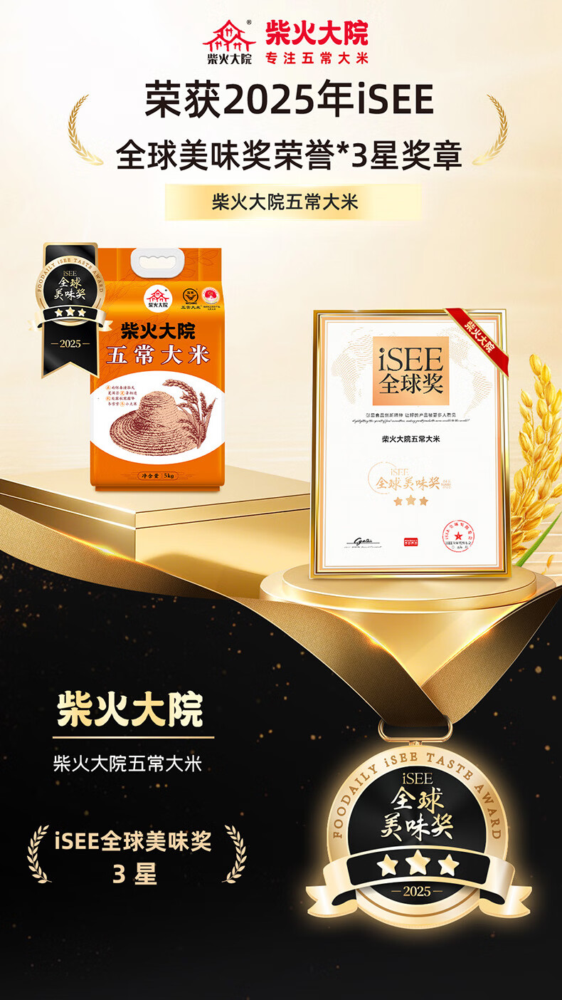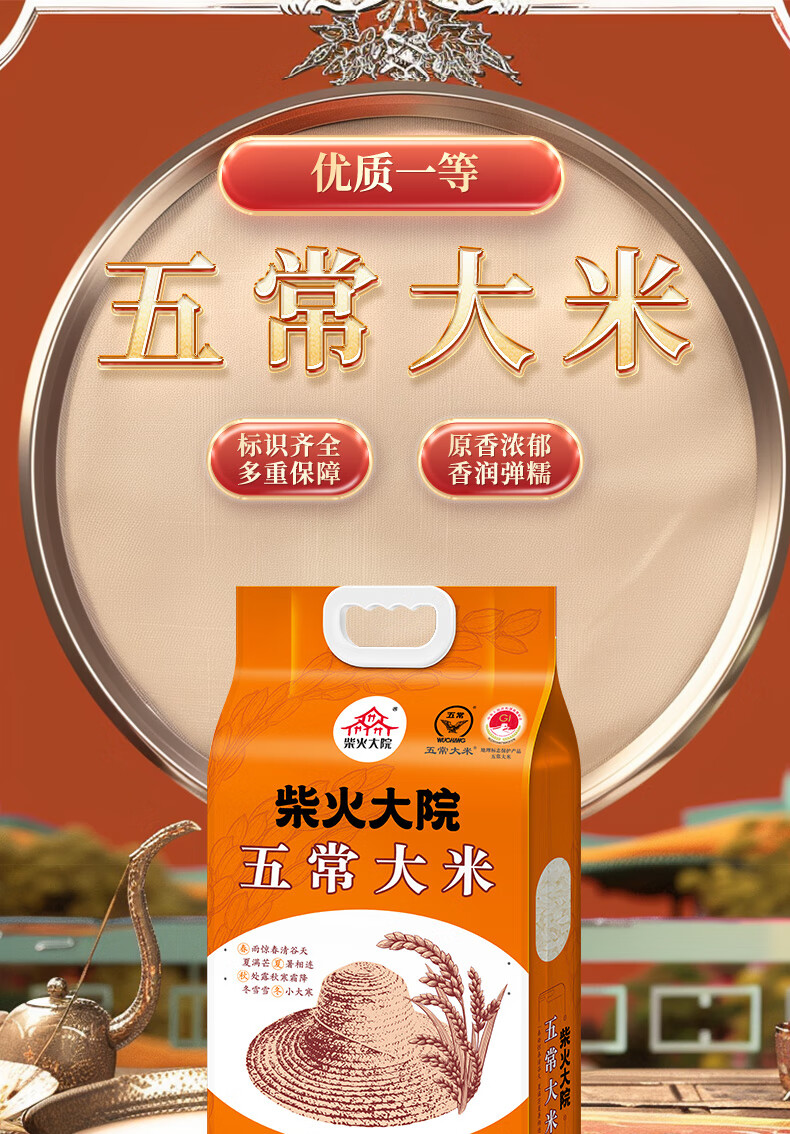 柴火大院 五常大米5kg*2袋 东北大米10公斤20斤家庭装 年货节团购 5kg*2袋