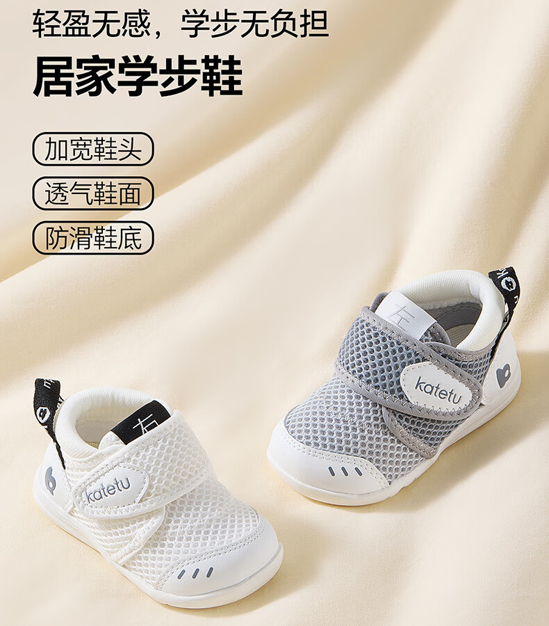 卡特兔童鞋婴儿学步鞋秋季网面机能鞋男女童幼儿园小白鞋宝宝入园室内鞋 蓝黄 21 内长13.0cm 脚长12.0-12.5
